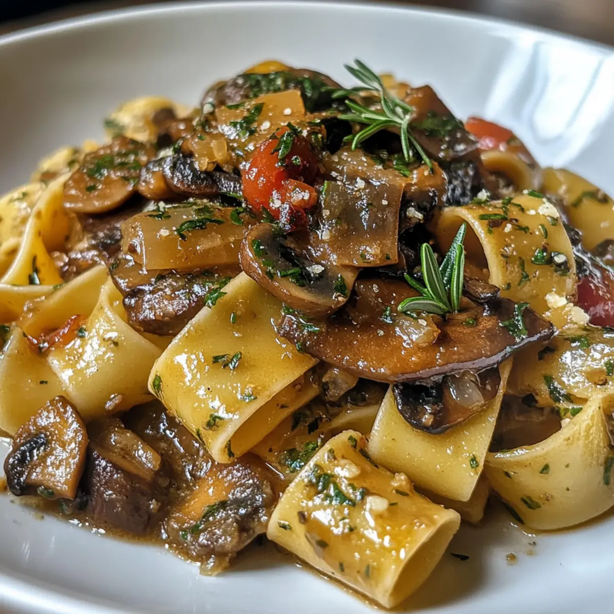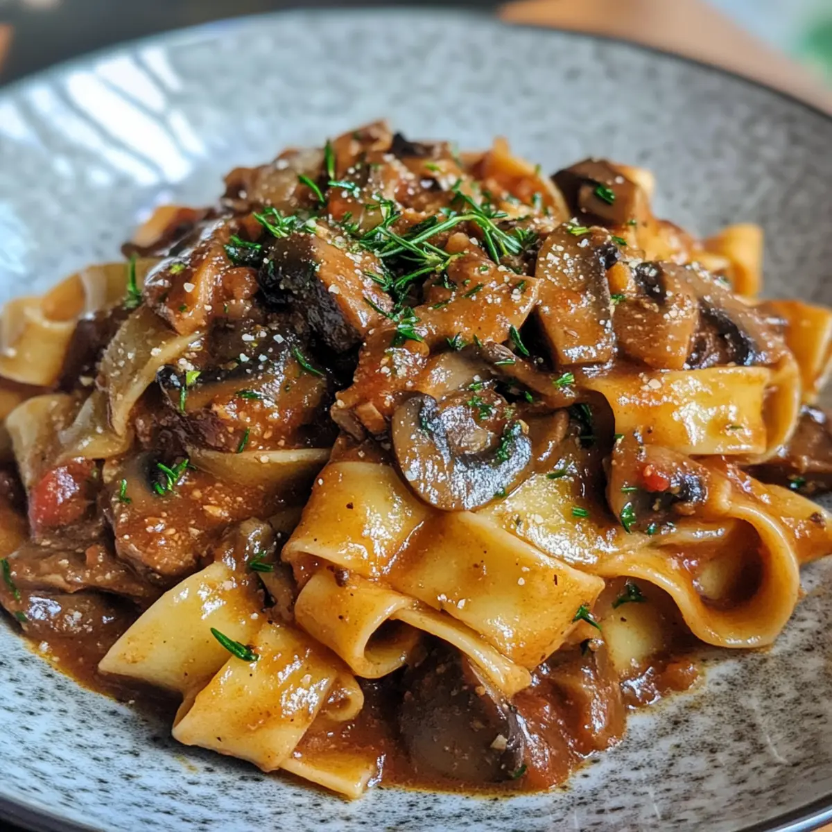 Eine beeindruckende Entdeckung wartete auf mich, als ich nach einem einfachen, aber raffinierten Rezept suchte, das meine Abende beleben könnte. Die Antwort kam in Form von meiner Speedy Portobello-Pilz-Pappardelle. Diese vegetarische Pasta überzeugt nicht nur durch ihre schnelle Zubereitung in nur 30 Minuten, sondern auch durch ihren herzhaften, aromatischen Pilzragout, der die Sinne verführt. Die Kombination aus der robusten Textur der Portobello-Pilze und dem feinen Geschmack von frischem Rosmarin und Knoblauch macht dieses Gericht zu einem echten Genuss. Das Beste daran: Es ist ein perfektes Comfort Food, das sowohl für ein schnelles Wochendinner als auch für entspannte Abendessen mit Freunden geeignet ist. Ich kann es kaum erwarten, dass ihr es ausprobiert! Wer würde sich nicht in diese köstliche Pasta verlieben? Warum ist diese Pasta unverzichtbar? Schnelle Zubereitung: In nur 30 Minuten zaubern Sie eine beeindruckende Mahlzeit, die perfekt in hektische Alltagsabende passt. Herzhafter Geschmack: Das Zusammenspiel von Portobello-Pilzen, frischem Rosmarin und Knoblauch sorgt für ein intensives Geschmackserlebnis. Vielseitig: Diese Portobello-Pilz-Pappardelle lässt sich leicht anpassen, fügen Sie saisonales Gemüse oder Hülsenfrüchte hinzu, um zusätzliche Nährstoffe und Fülle zu integrieren. Perfektes Comfort Food: Ideal für die ganze Familie oder als schnelles Abendessen mit Freunden – diese Pasta kommt immer gut an! Einfache Zutaten: Die meisten Zutaten haben Sie wahrscheinlich bereits zu Hause, was die Zubereitung noch einfacher macht. Gesunde Alternative: Diese vegetarische Option bietet eine leckere Abwechslung zu schweren Fast-Food-Mahlzeiten, ohne auf den Genuss verzichten zu müssen. Portobello-Pilz-Pappardelle Zutaten • Entdecken Sie die köstlichen Zutaten, die Sie für Ihre schnelle, vegetarische Pasta benötigen! Für die Sauce Extra-Virgin Olive Oil – Verleiht einen reichen und luxuriösen Geschmack; kann durch neutrales Öl ersetzt werden. Medium Shallots – Sorgt für Süße und Tiefe; gelbe Zwiebeln sind eine geeignete Alternative. Kosher Salt – Verstärkt den Geschmack des Gerichts; auch Meersalz kann verwendet werden. Portobello Mushroom Caps – Das Haupt-Highlight; bietet eine fleischige Textur und Umami-Geschmack; können durch Cremini-Pilze ersetzt werden. Garlic Clove – Fügt aromatische Tiefe hinzu; bei Bedarf kann auch Knoblauchpulver verwendet werden. Fresh Rosemary Leaves – Bringt ein pinienartiges Aroma ins Spiel; Thymian oder Oregano sind gute Alternativen. Crushed Red Pepper – Sorgt für eine angenehme Schärfe; passen Sie nach Belieben an. Tomato Paste – Verdickt die Sauce und bringt einen reichen Geschmack; kann durch pürierte geröstete Paprika ersetzt werden. Balsamic Vinegar – Fügt Säure und Süße hinzu; Rotweinessig kann ebenfalls verwendet werden. Unsalted Butter – Sorgt für Cremigkeit; Pflanzenmargarine ist eine vegane Option. Für die Pasta Pappardelle Pasta – Perfekt, um die Sauce zu halten; breite Pasta wie Fettuccine ist eine gute Alternative. Zum Servieren Parmigiano Reggiano – Gibt einen salzigen, nussigen Abschluss; Nährhefe ist eine gute milchfreie Alternative. Schritt-für-Schritt-Anleitung für Portobello-Pilz-Pappardelle Schritt 1: Öl erhitzen Erhitzen Sie in einer großen Pfanne bei mittlerer Hitze 3 Esslöffel extra-natives Olivenöl. Fügen Sie 2 gehackte mittlere Schalotten und eine Prise koscheres Salz hinzu. Kochen Sie die Schalotten etwa 3-4 Minuten, bis sie weich sind und ihre Süße entfalten, aber nicht gebräunt werden. Schritt 2: Pilze anbraten Geben Sie 450 g geschnittene Portobello-Pilzkappen in die Pfanne. Braten Sie die Pilze für 5-7 Minuten, bis sie goldbraun und zart sind. Schmecken Sie sie mit einer weiteren Prise Salz ab, damit sich die Aromen gut entfalten. Schritt 3: Wasser kochen Während die Pilze braten, bringen Sie einen großen Topf mit gesalzenem Wasser zum Kochen. Fügen Sie 250 g Pappardelle-Pasta hinzu und kochen Sie sie nach Packungsanleitung für etwa 8-10 Minuten, bis sie al dente sind. Heben Sie danach ¾ Tasse des Nudelwassers auf und lassen Sie die Pasta abtropfen. Schritt 4: Sauce zubereiten Fügen Sie in die Pfanne mit den Pilzen 2 gehackte Knoblauchzehen, 1 Esslöffel frische Rosmarinblätter, ½ Teelöffel zerstoßene rote Pfefferflocken, 2 Esslöffel Tomatenmark, 1 Esslöffel Balsamico-Essig und 2 Esslöffel ungesalzene Butter hinzu. Rühren Sie alles gut um und lassen Sie es 2-3 Minuten köcheln. Geben Sie nach Bedarf etwas vom reservierten Nudelwasser hinzu, um die Sauce geschmeidig zu machen. Schritt 5: Pasta hinzufügen und servieren Fügen Sie die abgetropfte Pappardelle zur Sauce in der Pfanne hinzu. Mischen Sie alles sanft, sodass die Pasta gleichmäßig mit der Sauce umhüllt wird. Wenn die Sauce zu dick ist, fügen Sie nach Bedarf mehr des reservierten Nudelwassers hinzu. Servieren Sie die Portobello-Pilz-Pappardelle sofort mit frisch gehobeltem Parmigiano Reggiano obenauf. Expert Tips für Portobello-Pilz-Pappardelle Pilze richtig anbraten: Achten Sie darauf, die Pilze bei mittlerer Hitze knusprig anzubraten, damit sie ihre Feuchtigkeit verlieren und ein festeres Mundgefühl erhalten. Nudelwasser aufbewahren: Reservieren Sie immer etwas Nudelwasser, bevor Sie die Pasta abgießen. Dies hilft, die Konsistenz der Sauce nach Bedarf anzupassen. Variationen ausprobieren: Fügen Sie beim Kochen saisonales Gemüse hinzu, um zusätzliche Nährstoffe und Farbvielfalt hinzuzufügen. Würze tastings: Probieren Sie die Sauce vor dem Servieren und passen Sie die Gewürze nach Ihrem Geschmack an, insbesondere die zerstoßenen roten Pfefferflocken für die gewünschte Schärfe. Kräuter austauschen: Experimentieren Sie mit anderen Kräutern wie Thymian oder Salbei, um neue Geschmacksrichtungen in Ihre Portobello-Pilz-Pappardelle zu bringen. Lagerungstipps für Portobello-Pilz-Pappardelle Kühlschrank: Bewahren Sie übrig gebliebene Pasta und Sauce in ei