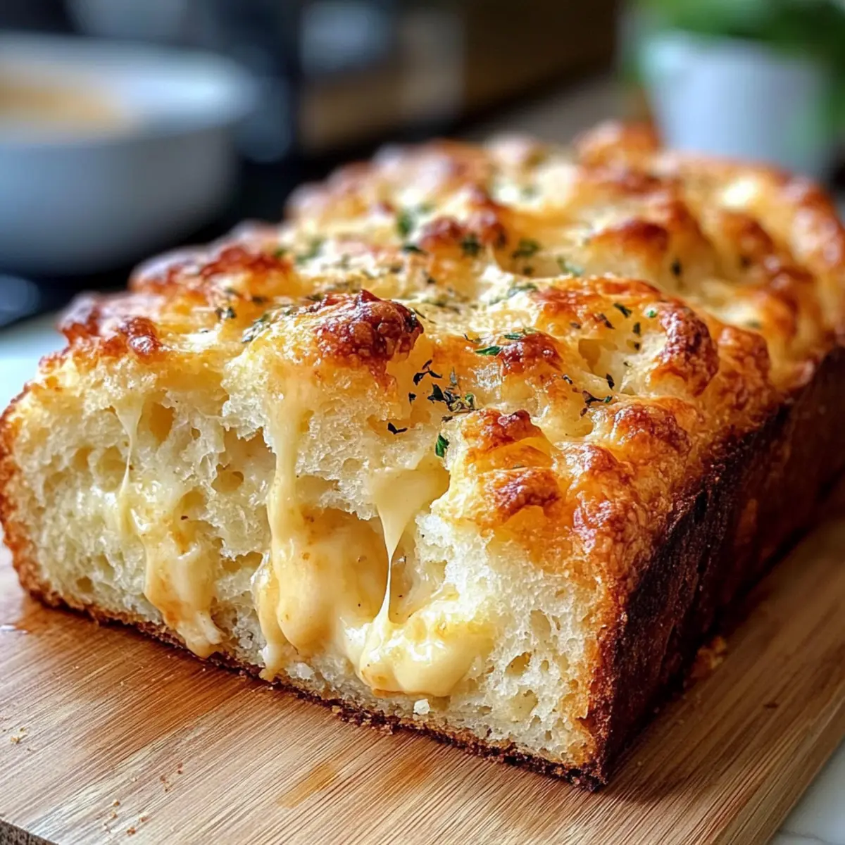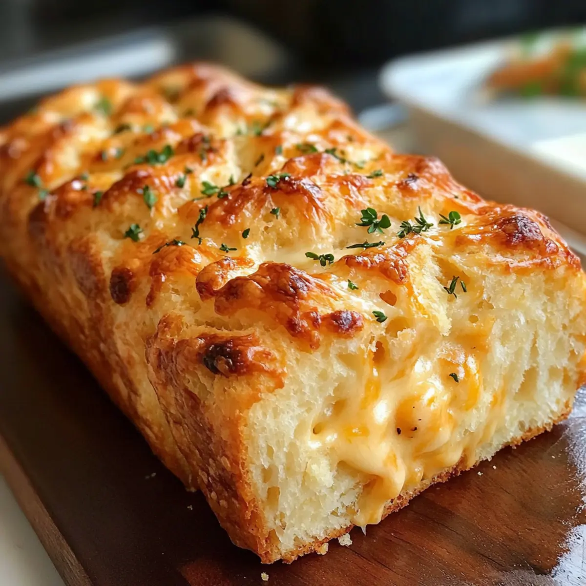 Sobald der Laib aus dem Ofen kommt, bestreiche die Oberseite sofort mit geschmolzener Butter. Dies verleiht dem Laib nicht nur Glanz, sondern auch zusätzlichen Geschmack, der perfekt zu den käsehaltigen Aromen passt.