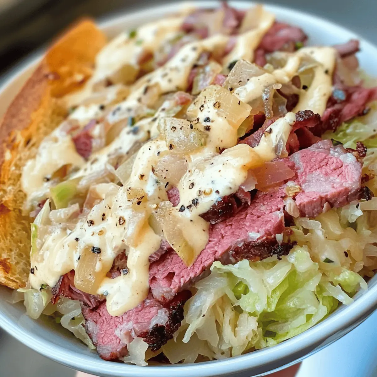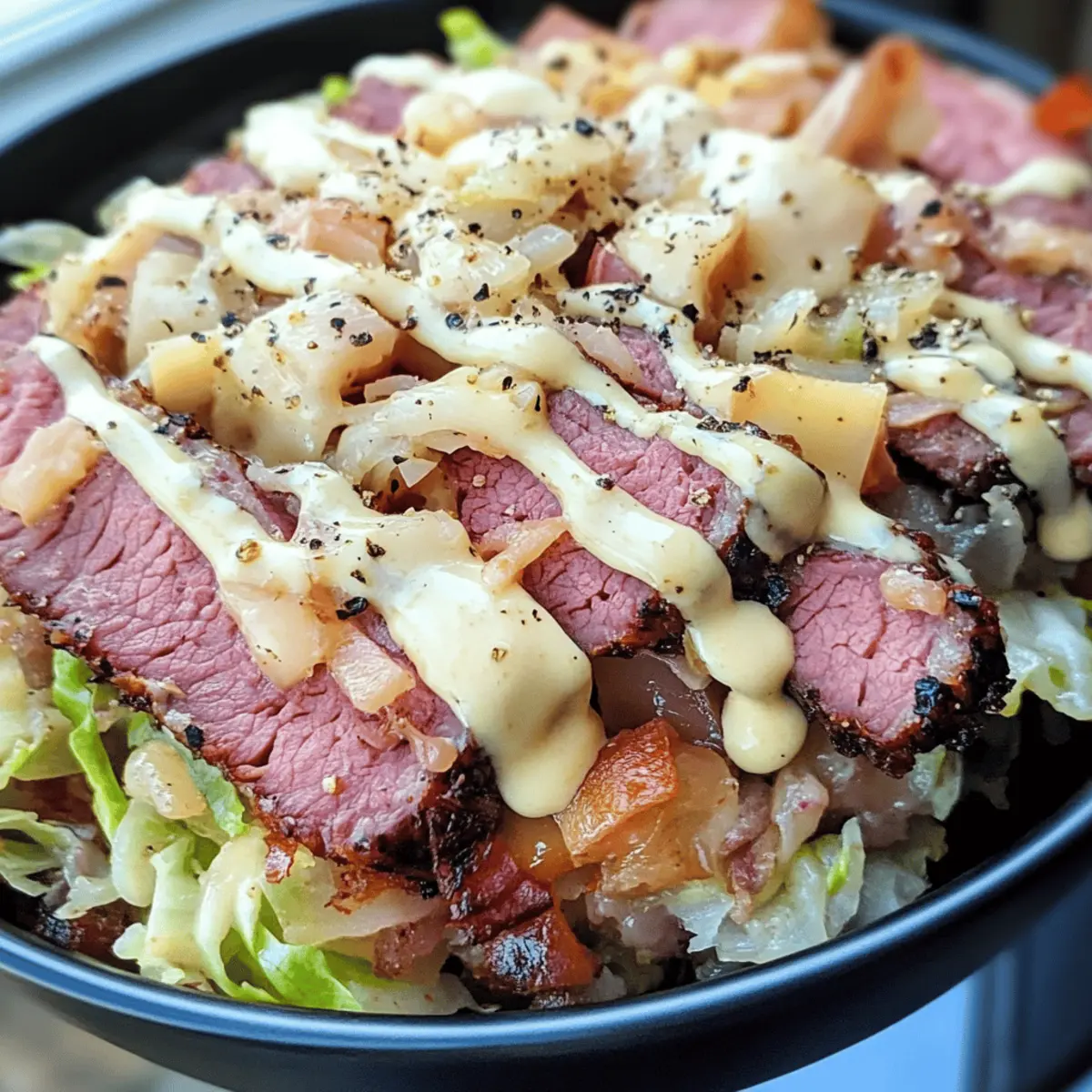 Dieses Rezept für 'Reuben im Schälchen' bietet einen gesunden, kohlenhydratarmen Genuss, der die Aromen eines klassischen Reuben-Sandwiches einfängt.