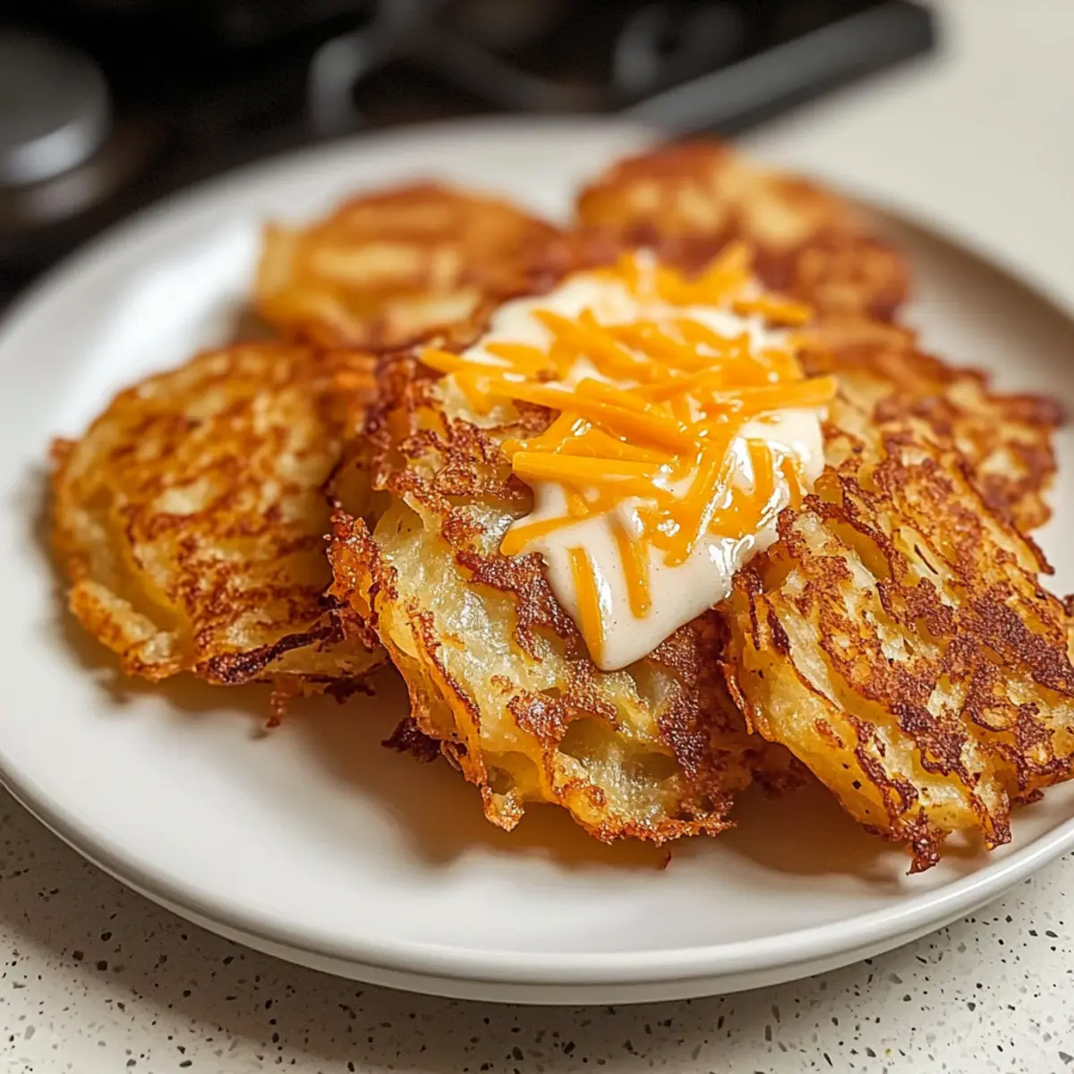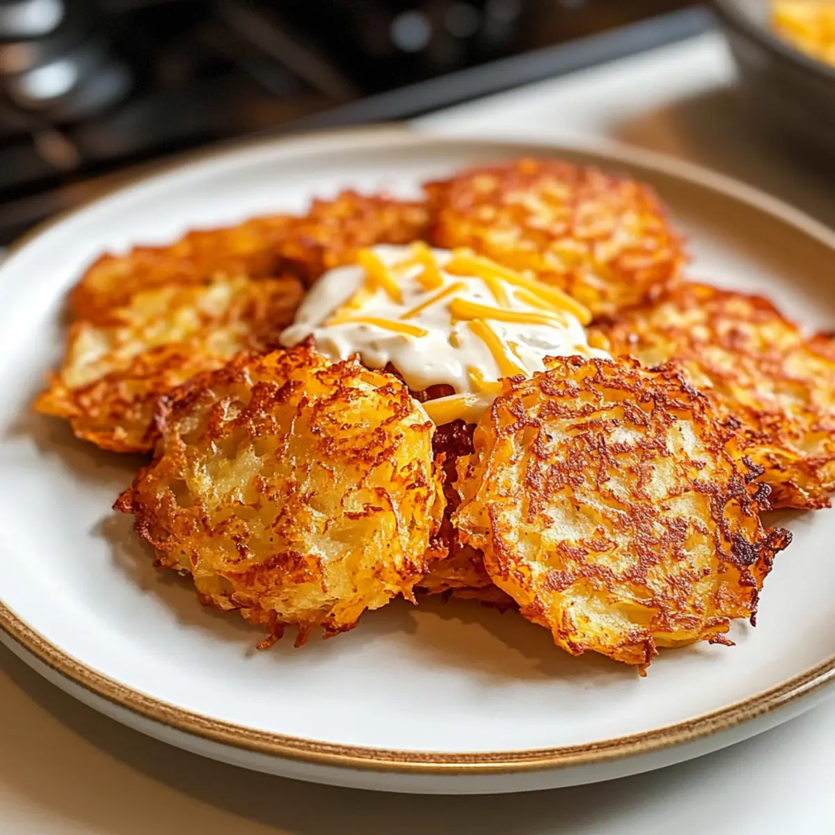 Als ich neulich in der Küche stand und die Zwiebeln schnitt, fiel mir auf, wie sehr der Geruch von frisch geriebenen Kartoffeln uns sofort in die Zeit zurückversetzt, als wir uns gemeinsam um den Frühstückstisch versammelten. Diese knusprigen Rösti sind nicht nur ein wunderbares Frühstücksrezept, sondern auch in weniger als 30 Minuten zubereitet – perfekt für all jene, die mit einem herzhaften, selbstgemachten Gericht in den Tag starten möchten. Das Besondere an dieser einfach nachzumachenden Variante ist die Möglichkeit, sie ganz nach Ihrem Geschmack mit Käse zu verfeinern. Ob pur oder mit schmelzendem Cheddar, diese Frühstücksdelikatesse verbindet schnelle Zubereitung mit wohligem Genuss. Neugierig geworden? Lassen Sie uns gemeinsam an die Pfanne gehen! Warum sollten Sie dieses Rösti-Rezept ausprobieren? Schnelligkeit garantiert: In weniger als 30 Minuten sind Sie bereit, ein köstliches Frühstück zu genießen. Perfekt für hektische Morgen! Crispy Genuss: Die Rösti sind außen schön knusprig und innen zart – eine perfekte Textur, die jeden Bissen zu einem Erlebnis macht. Variationsreich: Verfeinern Sie Ihre Rösti nach Belieben mit Käse oder Gemüse, um noch mehr Geschmack zu erzielen. Probieren Sie Feta oder österreichischen Bergkäse für eine interessante Note! Komfort Food: Diese Rösti bringen Erinnerungen an die gemeinsame Frühstückstafel zurück und sorgen für ein warmes, wohliges Gefühl. Einfach nachzukochen: Mit wenigen Zutaten und ohne große Kochkünste gelingt dieses Rezept jedem! Sie müssen nur frische Kartoffeln und Gewürze bereithalten. Verführerisches Aroma: Der Duft von frisch zubereiteten Rösti lässt garantiert nicht nur Ihnen das Wasser im Mund zusammenlaufen. Ideal, um Familie und Freunde zu beeindrucken! Rösti Zutaten • Entdecken Sie die einfachen Komponenten für diese leckeren Rösti, die schnell zubereitet sind! Für die Rösti Kartoffeln – sind die Grundlage für Ihre Rösti; Yukon Gold oder Russet eignen sich besonders gut, um die perfekte Knusprigkeit zu erreichen. Salz – verbessert den Geschmack; passen Sie die Menge nach Ihrem Geschmack an! Pfeffer – bringt eine milde Schärfe; kann nach Belieben weggelassen werden, wenn Sie es milder mögen. Knoblauchpulver – verleiht den Rösti eine tiefere Geschmacksnote; frisch gehackter Knoblauch ist eine tolle Alternative. Paprika – sorgt für zusätzlichen Geschmack und Farbe; optional und perfekt für die, die es etwas würziger mögen. Butter oder Öl – sorgt für das frittieren und die knusprige Textur; verwenden Sie Olivenöl oder Pflanzenöl für eine gesündere Option oder vegane Alternative. Optional: Käse Geriebener Cheddar – verleiht den Rösti einen herzhaften Geschmack; schmelzen Sie ihn für ein köstliches Finish! Feta oder anderer Käse – bringen Sie Abwechslung ins Spiel, indem Sie Ihren Lieblingskäse verwenden! Dieses Rösti-Rezept ist nicht nur einfach und schnell, sondern auch perfekt für kreative Variationen! Step-by-Step Instructions for Krosse Rösti: Schnelles Rezept für Zuhause Step 1: Kartoffeln vorbereiten Schälen Sie die Kartoffeln und reiben Sie sie grob oder fein, je nach Vorliebe. Wenn Sie es wünschen, können Sie die Schale für mehr Textur dranlassen. Lassen Sie die geriebenen Kartoffeln für einen Moment ruhen, während Sie die nächste Vorbereitungen treffen. Step 2: Kartoffeln auswaschen und trocknen Spülen Sie die geriebenen Kartoffeln unter kaltem Wasser ab, um die Stärke zu entfernen, die die Knusprigkeit beeinträchtigen könnte. Anschließend geben Sie die Kartoffeln in ein sauberes Küchentuch und drücken Sie sie gründlich aus. Dieser Schritt ist entscheidend für knusprige Rösti, da überschüssige Feuchtigkeit vermieden werden muss. Step 3: Kartoffeln würzen Geben Sie die getrockneten Kartoffeln in eine große Schüssel und würzen Sie sie mit Salz, Pfeffer, Knoblauchpulver und optional Paprika. Mischen Sie die Zutaten gut, sodass jede Kartoffel gleichmäßig gewürzt ist. Diese Würzmischung bringt den vollen Geschmack der krossen Rösti zum Vorschein. Step 4: Öl erhitzen Erhitzen Sie in einer großen Pfanne bei mittelhoher Hitze einen Esslöffel Butter oder Öl. Um sicherzustellen, dass das Fett die richtige Temperatur hat, geben Sie ein paar geriebene Kartoffelstücke hinein; diese sollten sofort zu brutzeln beginnen. Step 5: Rösti braten Verteilen Sie die gewürzten Kartoffeln gleichmäßig in der Pfanne zu einer einzigen Schicht. Achten Sie darauf, die Pfanne nicht zu überladen, da dies das Frittieren beeinträchtigen kann. Lassen Sie die Rösti für etwa 4-5 Minuten ungestört braten, bis die Unterseite goldbraun und knusprig ist. Step 6: Rösti wenden Wenden Sie die Rösti vorsichtig mit einem Spatel und braten Sie die andere Seite für weitere 3-4 Minuten, bis sie ebenfalls goldbraun und knusprig ist. Der Umkehrprozess sorgt dafür, dass beide Seiten die perfekte Textur erreichen und die Rösti schön gleichmäßig gegart ist. Step 7: Optionalen Käse hinzufügen Wenn Sie es wünschen, streuen Sie nach dem Wenden der Rösti den geriebenen Cheddar oder einen anderen Käse Ihrer Wahl darüber. Lassen Sie den Käse kurz schmelzen, während die Rösti weiterbraten. Dies verleiht der Mischung einen zusätzlich herzhaften Geschmack. Step 8: Servieren Servieren Sie die krossen Rösti sofort, zusammen mit klassischen Frühstücksleckereien wie Eiern und Toast. Diese köstlichen Rösti sind der perfekte Genuss für einen energiereichen Start in den Tag. Vorbereiten für die Krossen Rösti: Zeit sparen im Alltag Diese krossen Rösti sind ideal für alle, die vorab planen möchten! Sie können die Kartoffeln bis 24 Stunden im Voraus schälen, reiben und in kaltem Wasser lagern, um das Braunen zu verhindern. Danach einfach gründlich ausdrücken und zusammen mit den Gewürzen bis zu 3 Tagen im Kühlschrank aufbewahren. Wenn Sie bereit sind, die Rösti zu braten, erhitzen Sie die Pfanne wie gewohnt und fügen Sie 