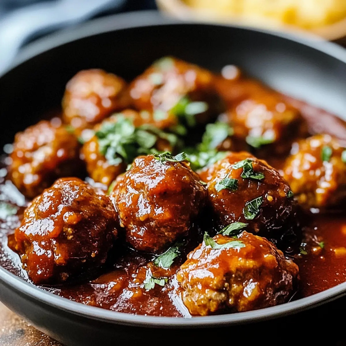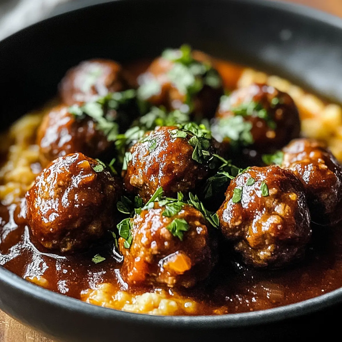 Als ich diese Woche in der Küche stand und die ersten Aromen von Rotwein in der Luft schwebten, wusste ich, dass etwas ganz Besonderes im Anmarsch war. Die Rotwein geschmorten Fleischbällchen sind nicht nur ein Fest für die Sinne, sondern auch eine herzliche Umarmung auf dem Teller. Mit ihrer Kombination aus saftigem Fleisch und einer reichhaltigen Soße bringen sie die italienische Gemütlichkeit direkt zu dir nach Hause. Dieses Rezept ist nicht nur einfach vorzubereiten, sondern eignet sich auch hervorragend für gesellige Abende mit Freunden oder der Familie. Wer möchte nicht einen klassischen Genuss erleben, der gleich zwei Fliegen mit einer Klappe schlägt: eine köstliche Mahlzeit und die Möglichkeit, im Voraus zu planen? Neugierig, wie du die perfekten Fleischbällchen zubereitest? Lass uns gemeinsam eintauchen! Warum sind diese Fleischbällchen besonders? Genuss garantiert! Die Rotwein geschmorten Fleischbällchen sind nicht nur lecker, sondern auch eine wahre Umarmung für die Seele. Einfache Zubereitung: Auch Anfänger können diese herzhaften Leckerbissen ohne Schwierigkeiten meistern. Zeitloser Geschmack: Die Kombination von Rotwein und frischen Kräutern bringt italienische Aromen direkt in deine Küche. Für jede Gelegenheit: Ob für ein gemütliches Familienessen oder ein Dinner mit Freunden – diese Fleischbällchen kommen immer gut an! Und wenn du einen Blick auf unsere Tipps zum Vorbereiten wirfst, wirst du sehen, wie einfach das Planen deiner nächsten Feier sein kann. Rotwein geschmorte Fleischbällchen Zutaten Für die Fleischbällchen: Rinderhackfleisch – Achte auf eine Mischung von 80/20 für optimale Saftigkeit. Frische Petersilie – Bringt Frische und Farbe in die Fleischbällchen. Zwiebel – Verleiht durch ihre natürliche Süße zusätzlichen Geschmack. Knoblauch – Sorgt für ein aromatisches Geschmackserlebnis. Für die Soße: Rotwein – Verwende einen fruchtigen Wein wie Merlot oder Cabernet Sauvignon für mehr Tiefe im Geschmack. Gehackte Tomaten – Bevorzuge pürierte Tomaten für eine glatte, haftende Soße. Rinderbrühe – Eine natriumarme Variante bringt Geschmack, ohne zu salzig zu sein. Die Rotwein geschmorten Fleischbällchen sind ein Fest für die Sinne und eine hervorragende Wahl für jede Gelegenheit! Step-by-Step Instructions für Rotwein geschmorte Fleischbällchen Step 1: Zutaten vorbereiten Beginne damit, die Zwiebel und den Knoblauch fein zu hacken. Schalte den Herd auf mittlere Hitze und stelle eine große Schüssel bereit. Die Vorbereitung dieser Zutaten ist der erste Schritt, um sicherzustellen, dass deine Rotwein geschmorten Fleischbällchen von Anfang an voller Geschmack sind. Step 2: Zutaten vermischen Gib das Rinderhackfleisch, die gehackte Petersilie, die Zwiebel, den Knoblauch sowie Salz und Pfeffer in die Schüssel. Mische alles gründlich mit deinen Händen, bis die Zutaten gut miteinander verbunden sind. Dies sollte etwa 2-3 Minuten dauern. So erhältst du eine perfekt gewürzte Basis für deine Fleischbällchen. Step 3: Fleischbällchen formen Nun forme aus der Mischung kleine Fleischbällchen, etwa in der Größe von Golfbällen. Sie sollten gleichmäßig geformt sein, damit sie gleichmäßig garen. Lege die geformten Fleischbällchen auf einen Teller und bereite dich darauf vor, sie in der nächsten Phase anzubraten. Step 4: Fleischbällchen anbraten Erhitze etwas Olivenöl in einer großen Pfanne bei mittlerer Hitze. Brate die Fleischbällchen für etwa 5-7 Minuten an, bis sie von allen Seiten goldbraun sind. Achte darauf, sie regelmäßig zu wenden, um ein gleichmäßiges Bräunen zu gewährleisten. Dies schließt das Aroma und die Saftigkeit der Rotwein geschmorten Fleischbällchen ein. Step 5: Soße zubereiten Nach dem Anbraten nimm die Fleischbällchen aus der Pfanne und stelle sie beiseite. Füge nun den Rotwein in die heiße Pfanne hinzu, um den Bratensatz zu lösen und die Aromen aufzunehmen. Lass den Wein für etwa 2 Minuten köcheln, bevor du die gehackten Tomaten und die Rinderbrühe hinzufügst. Rühre alles gut um, bis es eine gleichmäßige Soße ergibt. Step 6: Fleischbällchen schmoren Lege die gebräunten Fleischbällchen zurück in die Pfanne und bringe die Soße zum Köcheln. Decke die Pfanne ab und lasse alles bei niedriger Hitze für etwa 30 Minuten köcheln. Die Fleischbällchen sollten nun durchgegart und voller Geschmack sein, während sie in der herzhaften Soße ziehen. Step 7: Servieren und genießen Überprüfe die Fleischbällchen nach 30 Minuten: Sie sollten zart und saftig sein. Serviere die Rotwein geschmorten Fleischbällchen heiß über Pasta oder mit einer Scheibe knusprigem Brot. Diese Kombination sorgt für ein gemütliches und herzhaftes Essen, das jeder lieben wird. Was passt zu Rotwein geschmorten Fleischbällchen? Runde dein Abendessen mit köstlichen Beilagen ab, die die Aromen der Rotwein geschmorten Fleischbällchen perfekt ergänzen. Pasta in Olivenöl: Ein einfaches, al dente gekochtes Spaghetti oder Tagliatelle mit etwas Olivenöl und Parmesan bringt die italienische Note der Fleischbällchen zur Geltung. Die Textur der Pasta harmoniert ideal mit der reichhaltigen Soße. Knuspriges Baguette: Ein frisches Baguette bietet nicht nur einen perfekten Begleiter, um die köstliche Soße aufzutunken, sondern verleiht auch einen elementaren Crunch, der eine angenehme Abwechslung zu den zarten Fleischbällchen bietet. Gemischter Salat: Ein leichter, knackiger Salat mit Rucola, Cherry-Tomaten und einer Balsamico-Vinaigrette bringt Frische und Balance zu dem herzhaften Gericht. Die Süße der Tomaten kontrastiert wunderbar mit der intensiven Soße. Rotwein: Genieße die gleiche Sorte Rotwein, die du für die Fleischbällchen verwendet hast, um die Aromen zu intensivieren und den Genuss-Heilgen Moment zu vervollständigen. Ein Schluck davon rundet jedes Gericht ab! Gebackene Kartoffeln: Knusprige gebackene Kartoffeln oder Kartoffelspalten im Ofen gesetzt, sorgen für eine goldene, 