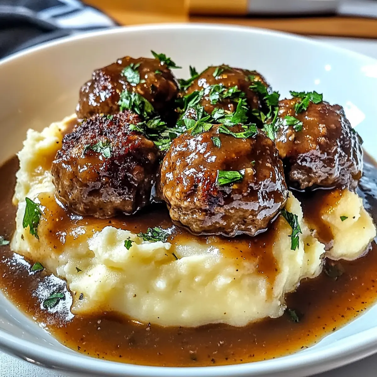 Salisbury Steak Fleischbällchen mit cremigen Kartoffeln