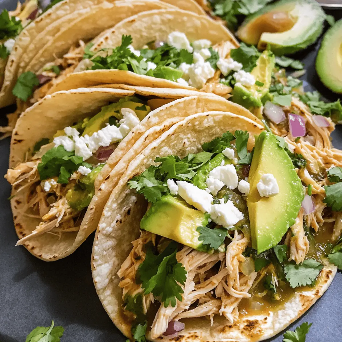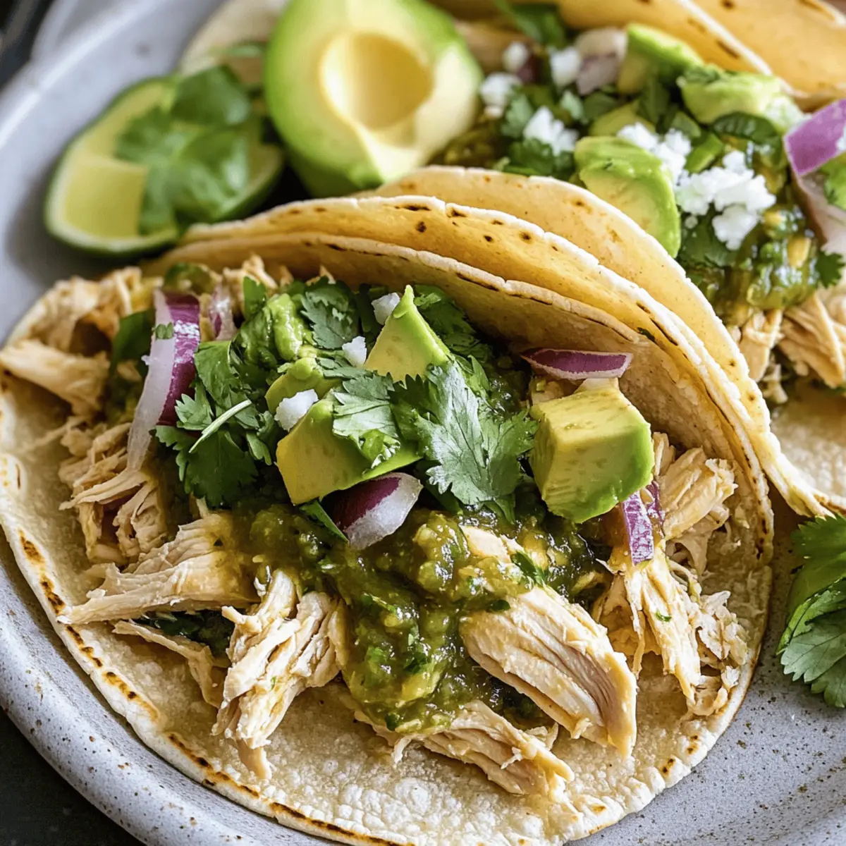 Das Knistern der Tortillas in der Pfanne und der köstliche Duft von Salsa Verde, der durch die Küche strömt – genau das macht für mich den perfekten Abend aus. Mein Rezept für Salsa Verde Chicken ist nicht nur ein Genuss für die Sinne, sondern auch unglaublich einfach zuzubereiten. Ideal für ein schnelles Abendessen unter der Woche, benötigt dieses Gericht kaum Vorbereitungszeit und verwendet entweder den Slow Cooker oder den Instant Pot. So zauberst du im Handumdrehen zartes, saftiges Hähnchen, das sich hervorragend für Tacos, Burritos und mehr eignet. Und das Beste daran? Du kannst die Zutaten ganz nach deinem Geschmack anpassen! Bist du bereit, deinen nächsten Taco-Abend aufzupeppen? Warum wirst du dieses Rezept lieben? Simplicity pur: Die Zubereitung ist kinderleicht und erfordert nur grundlegende Kochkenntnisse, sodass du in kürzester Zeit ein köstliches Gericht zaubern kannst. Vielseitig und anpassbar: Ob für Tacos, Burritos oder auf einem Salat – dieses Salsa Verde Hühnchen passt immer und lässt sich nach Lust und Laune abwandeln. Saftig und aromatisch: Das Hähnchen bleibt durch die langsame Garzeit im Slow Cooker oder Instant Pot unglaublich saftig und entfaltet seinen vollen Geschmack. Perfekt für die Familie: Ein Gericht, das alle lieben werden! Egal, ob es ein schnelles Abendessen unter der Woche oder ein Taco-Abend mit Freunden ist. Schnell zubereitet: Mit minimaler Vorbereitungszeit und der Hilfe von Küchengeräten ist es der ideale Begleiter für geschäftige Tage. Wenn du nach weiteren schnellen Rezepten suchst, schau dir auch mein Hahnchen Ramen Einfach und Teriyaki Nudeln Schnelles an! Zutaten für Salsa Verde Hühnchen • Entdecke, wie du mit diesen einfachen Zutaten ein köstliches Gericht zauberst! 2 lbs Hähnchenbrust (ohne Knochen, ohne Haut): Hauptprotein. Du kannst auch Hähnchenschenkel verwenden, um mehr Geschmack und Saftigkeit zu erhalten. Salz und Pfeffer: Verleiht dem Gericht Fülle. Verwende Meersalz für eine besondere Geschmacksnote. 3/4 tsp gemahlener Kreuzkümmel: Fügt Wärme und Tiefe hinzu. Kann durch Taco-Gewürz ersetzt werden, um einen anderen Geschmack zu erzielen. 1 Knoblauchzehe, gehackt (1 tsp): Aromatische Basis. Verwende Knoblauchpulver, falls kein frischer Knoblauch zur Verfügung steht. 1 (4 oz) Dose milde grüne Chilis, abgetropft: Bietet eine sanfte Schärfe. Diced Jalapeños sorgen für mehr Würze, wenn gewünscht. 1/2 Tasse gehackte, entkernte Anaheim-Paprika: Bringt Frische und subtile Wärme. Paprika sind eine milde Option, wenn du es lieber sanfter magst. 1 (16 oz) Glas Salsa Verde (empfohlen: Pace-Marke): Geschmackvolle Sauce. Für ein frischeres Erlebnis kannst du auch hausgemachte Salsa Verde verwenden. 2 EL frischer Koriander, gehackt: Fügt Helligkeit hinzu. Lass ihn weg, wenn du Koriander nicht magst. 12 (15 cm) Maistortillas: Zum Servieren. Alternativ kannst du Tortillas aus Weizen oder Salatblätter verwenden. Oliven- oder Pflanzenöl (optional): Zum Braten der Tortillas. Verwende Kochspray für eine leichtere Option. 2 Tassen gehackter Römersalat: Knuspriger Belag. Jedes Salatmischung funktioniert hier. 1 1/4 Tassen geriebener Monterey Jack Käse: Cremige Textur. Ersetze ihn durch Cheddar oder eine mexikanische Käsemischung. 1 große Avocado, in Scheiben geschnitten: Cremiger Belag. Guacamole ist eine praktische Alternative. Sauerrahm, gehackte rote Zwiebel und Limettenviertel (optional): Ergänzungen für den Genuss. Limetten können durch Zitronensaft ersetzt werden, wenn sie nicht verfügbar sind. Schritt-für-Schritt-Anleitung für Salsa Verde Hühnchen Step 1: Hähnchen vorbereiten Lege die Hähnchenbrust in einen Slow Cooker. Würze das Fleisch großzügig mit Salz, Pfeffer, Kreuzkümmel und gehacktem Knoblauch. Füge dann die Salsa Verde und die grünen Chilis hinzu. Diese Kombination bringt die Aromen zur Geltung und sorgt für einen köstlichen Geschmack. Step 2: Hähnchen garen Slow Cooker: Decke den Slow Cooker ab und koche das Hähnchen bei niedriger Temperatur für 4-5 Stunden oder bei hoher Temperatur für 2,5-3 Stunden, bis es zart ist und leicht auseinanderfällt. Instant Pot: Gib 1/2 Tasse Salsa zusammen mit dem gewürzten Hähnchen in den Instant Pot. Decke ihn zu, stelle die Einstellungen auf “Geflügel” und koche für 13 Minuten. Lass dann den Schnellverschluss vorsichtig ablösen. Step 3: Hähnchen zerkleinern Lass das Hähnchen nach dem Garen für etwa 5 Minuten ruhen, damit der Saft sich setzen kann. Verwende zwei Gabeln, um das Fleisch in zarte Stücke zu zerkleinern. Für zusätzlichen Geschmack kannst du optional etwas Salsa aus dem Slow Cooker oder Instant Pot abtropfen lassen und das Hähnchen zurückgeben. Step 4: Tortillas erwärmen Erhitze etwas Oliven- oder Pflanzenöl in einer großen Pfanne bei mittlerer Hitze. Lege die Maistortillas in die Pfanne und brate sie für 30 Sekunden pro Seite, bis sie goldbraun und leicht knusprig sind. Achte darauf, die Tortillas nicht zu lange zu braten, damit sie nicht zu trocken werden. Step 5: Tacos zusammenstellen Nehme die warmen Tortillas und fülle sie mit dem zerkleinerten Salsa Verde Hühnchen. Füge nach Belieben Römersalat, geriebenen Monterey Jack Käse, Avocadoscheiben und andere gewünschte Toppings hinzu. Serviere die Tacos sofort, gerne mit Limettenvierteln, die das Ganze abrunden. Vorbereitung für Salsa Verde Hühnchen Die Vorbereitung für dein Salsa Verde Hühnchen ist kinderleicht und spart dir wertvolle Zeit in der Küche! Du kannst das Hähnchen bereits bis zu 24 Stunden im Voraus würzen und im Kühlschrank marinieren, damit es die Aromen optimal aufnehmen kann. Die Salsa und die Chilis können ebenfalls im Voraus gemischt und in einem luftdichten Behälter für 3 Tage aufbewahrt werden, ohne an Geschmack zu verlieren. Am Tag der Zubereitung einfach alles in den Slow Cooker oder Instant Pot geben, nach den entsprechenden Garzeiten kochen und das zarte Hähnchen zerkleinern. So hast du im Handumdrehen ein 