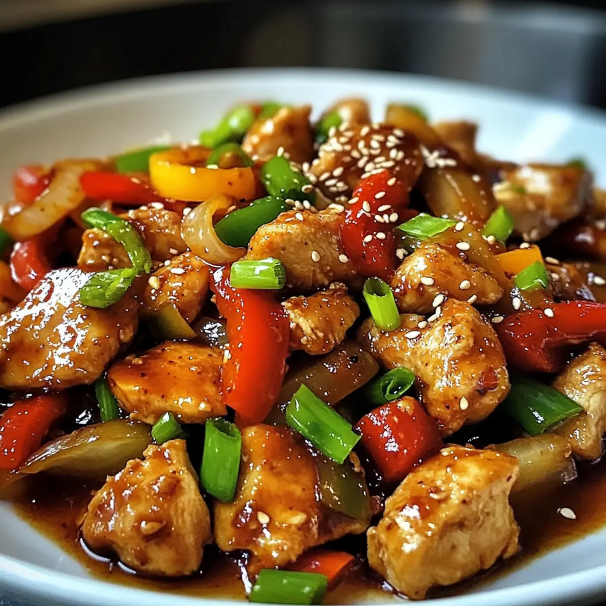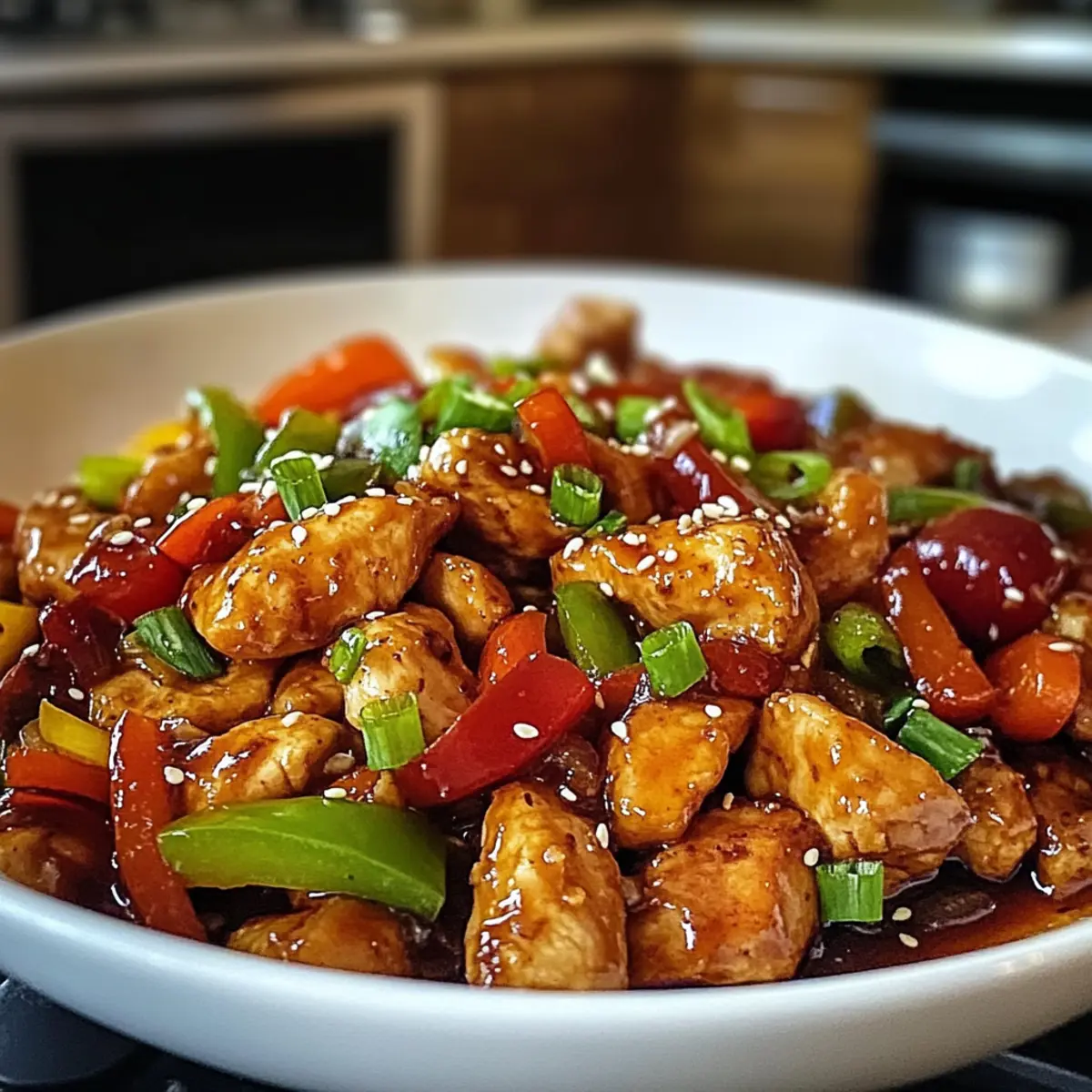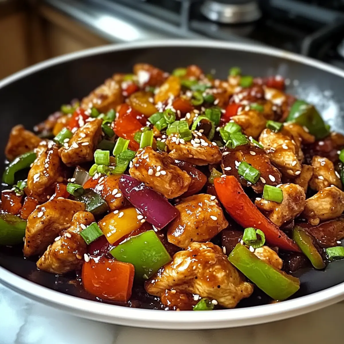 Wenn ich an eine magische Zeitreise in die Küche denke, fühle ich mich sofort in die lebhaften Straßen Koreas versetzt, wo köstliche Aromen in der Luft liegen. Diese scharfe Hähnchen-Pfanne bringt die Essenz dieser kulinarischen Entdeckung direkt auf deinen Tisch! In nur 30 Minuten hast du ein schnelles, vollmundiges Abendessen zubereitet, das nicht nur gesund ist, sondern auch voller Geschmack steckt. Das zarte Hähnchen, kombiniert mit buntem Gemüse und der aufregenden Schärfe von Gochujang, macht dieses Gericht zum perfekten Erlebnis für jede Woche, selbst an geschäftigen Tagen. Zudem ist es einfach anpassbar – füge gerne deine Lieblingsgemüse hinzu und kreiere so dein persönliches Meisterwerk! Hast du schon Lust auf eine kulinarische Abenteuerreise? Lass uns gemeinsam in die Welt der Aromen eintauchen! Warum wirst du dieses Rezept lieben? Einzigartige Aromen: Die Kombination aus zartem Hähnchen und würzigem Gochujang bringt lebhafte Geschmackserlebnisse auf deinen Tisch. Schnell zubereitet: In nur 30 Minuten steht das ganze Gericht fertig auf dem Tisch – ideal für stressige Wochentage! Vielseitig: Du kannst das Gemüse nach Belieben anpassen und zum Beispiel Karotten oder Brokkoli hinzufügen. Gesund und nahrhaft: Diese scharfe Hähnchen-Pfanne ist vollgepackt mit Protein und Vitaminen, sodass du dir ein köstliches und gesundes Abendessen gönnen kannst. Crowd-Pleaser: Egal, ob für die Familie oder Freunde, dieses Gericht wird jeden begeistern! Bereite es mit einem aromatischen Reis oder Nudeln zu, um das Erlebnis zu vervollständigen. Scharfe Hähnchen-Pfanne Zutaten • Die perfekte Grundlage für dein schnelles Abendessen! Für das Hähnchen Hähnchenbrust – der Hauptproteingehalt, zart und absorbiert die Aromen hervorragend. Gemüse nach Wahl – füge deine Lieblingssorten hinzu, um das Gericht individuell zu gestalten. Für die Soße Gochujang – die koreanische Chili-Paste, die Wärme und Tiefe verleiht; ersetze es im Notfall mit einer anderen Chili-Paste. Sojasoße – verstärkt den Umami-Geschmack; für glutenfreie Optionen kannst du Tamari verwenden. Honig – balanciert die Schärfe mit einer süßen Note; für Veganer ist auch Ahornsirup eine gute Wahl. Sesamöl – sorgt für ein nussiges Aroma. Für das Gemüse Paprika – bringt Süße und Farbe; jede Sorte ist willkommen! Zwiebel – verstärkt den Geschmack; wähle je nach Vorliebe gelbe oder rote Zwiebeln. Knoblauch – sorgt für wunderbare Aromen; am besten frisch und gehackt verwenden. Ingwer – bringt Wärme und Würze; frisch ideal, aber gemahlener Ingwer kann auch verwendet werden. Für das Braten Pflanzenöl – eignet sich hervorragend zum Anbraten; andere neutrale Öle wie Raps- oder Erdnussöl funktionieren auch gut. Für die Garnitur Sesamkörner – geben eine knusprige Textur. Frühlingszwiebeln – für einen frischen Biss; optional kannst du auch Kimchi dazu servieren. Schritt-für-Schritt-Anleitung für die Scharfe Hähnchen-Pfanne Step 1: Öl erhitzen Erhitze 2 Esslöffel Pflanzenöl in einer großen Pfanne bei mittlerer bis hoher Hitze, bis es schön glänzt und sich kleine Bläschen bilden. Achte darauf, dass das Öl nicht raucht, um eine angenehme Brattemperatur zu gewährleisten. Step 2: Hähnchen braten Füge 450 g in Scheiben geschnittene Hähnchenbrust in die heiße Pfanne hinzu und brate es für 5-7 Minuten. Rühre gelegentlich um, bis das Hähnchen goldbraun ist und durchgegart (kein Rosa mehr in der Mitte) erscheint. Step 3: Knoblauch und Ingwer hinzufügen Gib 2 zusammengepresste Knoblauchzehen und 1 Esslöffel frisch gehackten Ingwer zu dem Hähnchen in die Pfanne. Sauté für etwa 1 Minute, bis sie aromatisch sind und herrlich duften. Achte darauf, dass sie nicht anbrennen. Step 4: Gemüse anbraten Jetzt ist es Zeit, das Gemüse hinzuzufügen! Gib 1 in Streifen geschnittene Paprika und 1 gehackte Zwiebel in die Pfanne. Brate alles 3-4 Minuten lang, bis das Gemüse zart, aber noch knackig ist. Es sollte lebendige Farben zeigen und etwas weich werden. Step 5: Sauce zubereiten Mische in einer kleinen Schüssel 3 Esslöffel Gochujang, 2 Esslöffel Sojasauce, 1 Esslöffel Sesamöl und 1 Esslöffel Honig. Rühre gut um, bis alle Zutaten gut vermischt sind. Diese Sauce wird der Scharfe Hähnchen-Pfanne den einzigartigen Geschmack verleihen. Step 6: Sauce hinzufügen Gieße die vorbereitete Sauce über das Hähnchen und Gemüse in der Pfanne. Lasse alles für weitere 2-3 Minuten einkochen, bis die Sauce leicht eindickt und die Zutaten gut umschließt. Rühre zwischendurch um, damit sich die Aromen gut vermischen. Step 7: Garnitur und Servieren Nehme die Pfanne vom Herd und garniere die Scharfe Hähnchen-Pfanne mit Sesamkörnern und frisch gehackten Frühlingszwiebeln. Serviere das Gericht heiß über Reis oder Nudeln, um den vollen Genuss der Aromen zu erleben. Expert Tips für die Scharfe Hähnchen-Pfanne Richtige Temperatur: Achte darauf, dass das Öl gut erhitzt ist, bevor du das Hähnchen hinzufügst. Dies sorgt für eine perfekte Bräunung und verhindert das Ankleben. Anpassbare Schärfe: Wenn du es milder magst, reduziere die Menge von Gochujang. Du kannst die Schärfe nach deinem Geschmack anpassen. Vorbereitung ist alles: Bereite alle Zutaten im Voraus vor, so wird das Kochen zum Kinderspiel und du kannst alles zügig in die Pfanne geben. Nicht überfüllen: Überfülle die Pfanne nicht, damit das Hähnchen und das Gemüse gleichmäßig braten und die perfekte Textur erreichen. Gemüseschicht: Wähle Gemüse, das gut zusammenpasst und gerne knusprig bleibt, wie Brokkoli oder Zucchini, um die Aromen der scharfen Hähnchen-Pfanne zu unterstützen. Wärmen und Servieren: Wenn du Reste hast, erhitze sie gut durch und serviere sie am besten mit frischen Beilagen für ein zweites leckeres Abendessen. Scharfe Hähnchen-Pfanne Variationen Lass deiner Kreativität freien Lauf und passe dieses Rezept genau nach deinem Geschmack an! Glutenfrei: Verwende Tamari anstelle vo