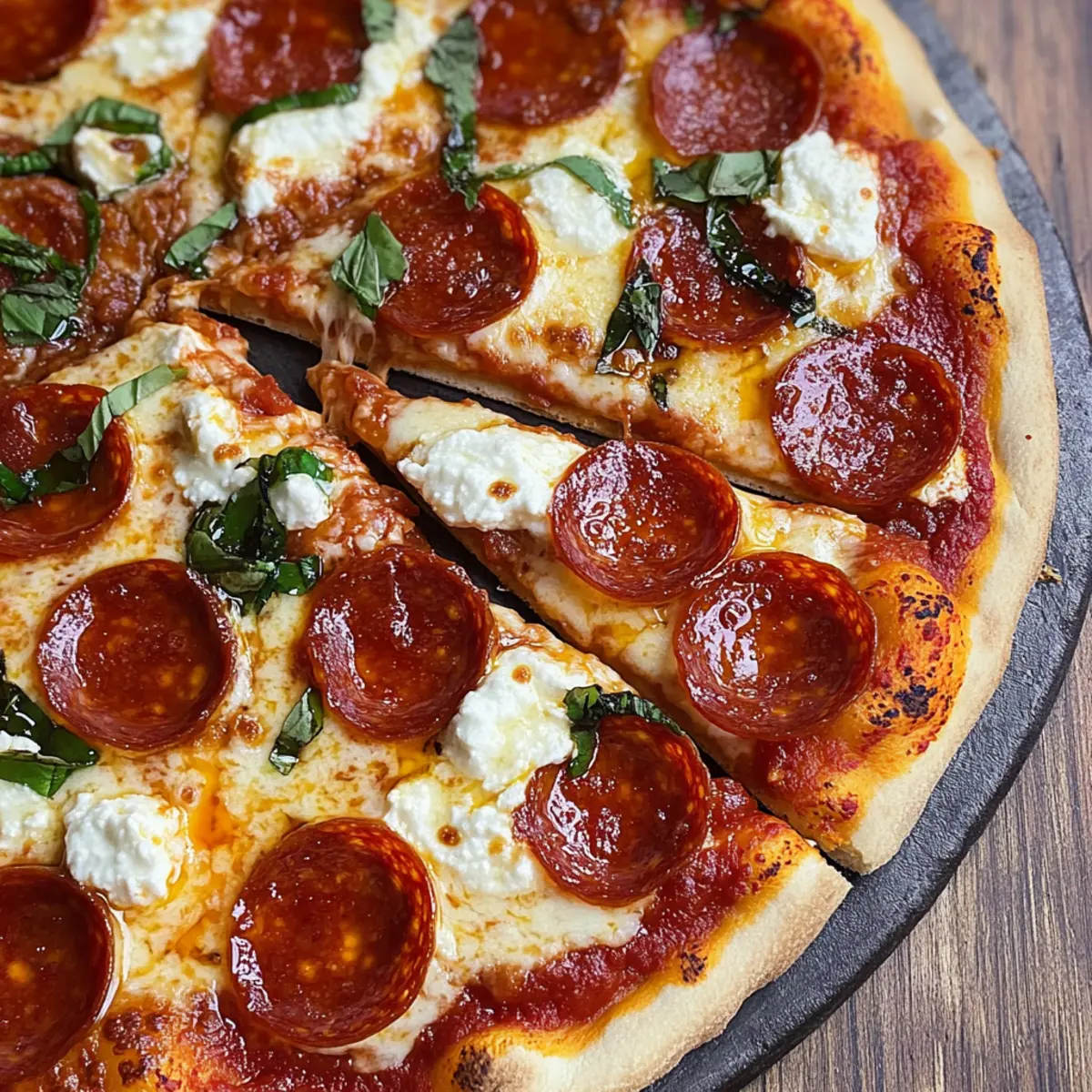 Als ich das erste Mal die Kombination aus süßem Honig und würziger Pepperoni auf einer Pizza entdeckte, wusste ich, dass ich etwas Einzigartiges kreiert hatte. Die Scharfe Honig-Pepperoni-Pizza mit Ricotta ist nicht nur ein Gaumenschmaus, sondern bringt auch eine aufregende Wendung in Ihr Abendessen. Mit einem knackigen Rand und geschmolzenem Käse ist diese Pizza der perfekte Weg, um Ihre Geschmacksnerven zu kitzeln und gleichzeitig schnellen, ungesunden Snacks ein schnelles Ende zu setzen. Egal, ob Sie ein leidenschaftlicher Hobbykoch sind oder einfach nur nach einer neuen Rezeptidee suchen, diese Kreation bietet einfache Schritte und garantiert Erfolg. Wer könnte da widerstehen? Schauen wir uns gemeinsam an, wie Sie diese köstliche Pizza zu Hause zubereiten können! Warum werden Sie dieses Pizza-Rezept lieben? Einzigartige Kombination: Die süße Note des Honigs harmoniert perfekt mit der würzigen Pepperoni und sorgt so für ein Geschmackserlebnis der Extraklasse. Einfachheit: Mit wenigen, gut ausgewählten Zutaten können Sie dieses Rezept mühelos zu Hause zubereiten. Vielfalt: Sie können das Rezept nach Ihrem Geschmack anpassen, sei es glutenfrei oder vegetarisch! Perfekte Texturen: Knuspriger Rand trifft auf cremigen Ricotta und schmelzenden Käse – ein Genuss für alle Sinne. Crowd-Pleaser: Diese Pizza wird garantiert Ihre Familie und Freunde begeistern und ist perfekt für gesellige Abende. Schnell zubereitet: In kürzester Zeit verwandeln Sie Ihre Küche in eine Pizzeria! Genießen Sie dazu unseren Griechischen Krautsalat Gesund für eine erfrischende Note. Scharfe Honig-Pepperoni-Pizza Zutaten • Für Ihre Pizza-Zutaten: Warmwasser (¾ Tasse) – aktiviert die Hefe für den Teig, dabei darauf achten, dass es 105°F hat für optimale Ergebnisse. Brotmehl (1½ Tassen) – sorgt für Struktur und Zähigkeit des Pizzateigs; Allzweckmehl kann verwendet werden, ändert jedoch leicht die Textur. Aktive Trockenhefe (1 Päckchen, 0,125 oz) – Hebemittel für den Teig; darauf achten, dass das Haltbarkeitsdatum passt. Zucker (¾ Teelöffel) – nährt die Hefe während der Fermentation. Salz (¾ Teelöffel) – verstärkt den Geschmack und stärkt den Teig. Olivenöl (1 Esslöffel + ½ Teelöffel) – verleiht dem Teig eine reichhaltige Note und verhindert das Ankleben beim Aufgehen. Pizzasauce (½ Tasse) – die Basis für den Pizzageschmack; eine low-acid Sauce wählen, um das Gleichgewicht mit dem scharfen Honig zu verbessern. Mozzarella-Käse (4 oz) – schmilzt gut und sorgt für das klassische Pizzagefühl; niedrige Feuchtigkeit ist empfohlen für beste Ergebnisse. Pepperoni (1 oz) – verleiht einen herzhaften, würzigen Geschmack; kann durch scharfe italienische Wurst oder Prosciutto ersetzt werden. Parmesan-Käse (1 Teelöffel) – fügt einen salzigen Abschluss und Geschmacksvertiefung hinzu. Meersalz (Prise) – hebt die Geschmäcker aller Zutaten gleichmäßig hervor. Sahniger Ricotta (3 oz) – sorgt für Cremigkeit und balanciert die Schärfe des Honigs; gut abtropfen lassen, um Soggen zu vermeiden. Scharfer Honig (½-1 Teelöffel) – der Star der Zutaten, fügt eine süß-würzige Geschmacksnote hinzu; kann mit roten Pfefferflocken für zusätzliche Schärfe infundiert werden. Frisches Basilikum (2-3 Blätter, fein gehackt) – belebt das Gericht mit seinem aromatischen Geschmack; frisch empfohlen. Erleben Sie die Scharfe Honig-Pepperoni-Pizza mit Ricotta! Schritt-für-Schritt-Anleitung für die Scharfe Honig-Pepperoni-Pizza mit Ricotta Step 1: Hefe-Mischung vorbereiten Die Zubereitung der Scharfen Honig-Pepperoni-Pizza beginnt damit, warmes Wasser, Zucker und aktive Trockenhefe in einer Schüssel zu kombinieren. Lassen Sie die Mischung 5-10 Minuten ruhen, bis sie schäumt. Achten Sie darauf, dass das Wasser etwa 40°C warm ist, um die Hefe optimal zu aktivieren. Step 2: Teig herstellen Mischen Sie in einer großen Schüssel das Brotmehl und das Salz, und machen Sie eine Mulde in der Mitte. Gießen Sie die Hefe-Mischung und das Olivenöl in die Mulde, und rühren Sie alles kräftig um, bis ein grober Teig entsteht. Das Ziel ist es, alle Zutaten gut zu vereinen, bevor wir in den nächsten Schritt übergehen. Step 3: Teig kneten Geben Sie den Teig auf eine bemehlte Fläche und kneten Sie ihn 8-10 Minuten lang, bis er glatt und elastisch ist. Achten Sie darauf, ausreichend Mehl zu verwenden, damit der Teig nicht klebt. Ihr guter Knetteig sollte nach dem Kneten eine glatte Oberfläche haben und nicht mehr an Ihren Händen haften. Step 4: Teig gehen lassen Legen Sie den gekneteten Teig in eine leicht geölte Schüssel, decken Sie ihn mit einem feuchten Tuch ab und lassen Sie ihn 1 Stunde an einem warmen Ort ruhen. Nach dieser Zeit sollte sich das Volumen des Teigs verdoppeln, was zeigt, dass die Hefe wirkt und den Teig aufgehen lässt. Step 5: Ofen vorheizen Heizen Sie Ihren Ofen auf 245°C vor und stellen Sie gegebenenfalls einen Pizzastein hinein. Der heiße Stein trägt dazu bei, dass die Scharfe Honig-Pepperoni-Pizza eine knusprige Unterseite erhält. Warten Sie, bis der Ofen vollständig aufgeheizt ist, bevor Sie mit dem nächsten Schritt fortfahren. Step 6: Pizza formen Schlagen Sie den aufgegangenen Teig in der Schüssel leicht zusammen und geben Sie ihn auf eine bemehlte Arbeitsfläche. Rollen Sie den Teig mit einem Nudelholz auf, bis er einen Durchmesser von etwa 30 cm hat. Die Ränder sollten etwas dicker bleiben, um ein perfektes Pizzabodenbild zu schaffen. Step 7: Beläge hinzufügen Übertragen Sie den ausgerollten Teig auf ein Backpapier oder ein leicht bemehltes Backblech. Verteilen Sie die Pizzasauce gleichmäßig auf dem Teig, gefolgt von einem gleichmäßigen Bezug aus Mozzarella-Käse und Pfefferoni. Setzen Sie kleine Kleckse Sahniger Ricotta auf die Pizza, und bestreuen Sie sie mit einer Prise Meersalz und Parmesan. Step 8: Pizza backen Schieben Sie die Scharfe Honig-Pepperoni-Pizza mit Ricotta in den heißen Ofen und backen Sie sie für 12-15 Mi