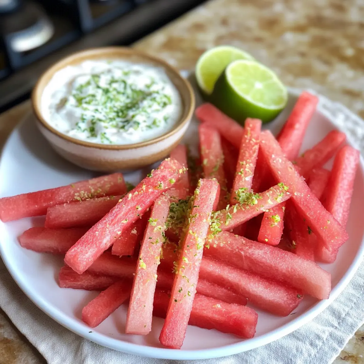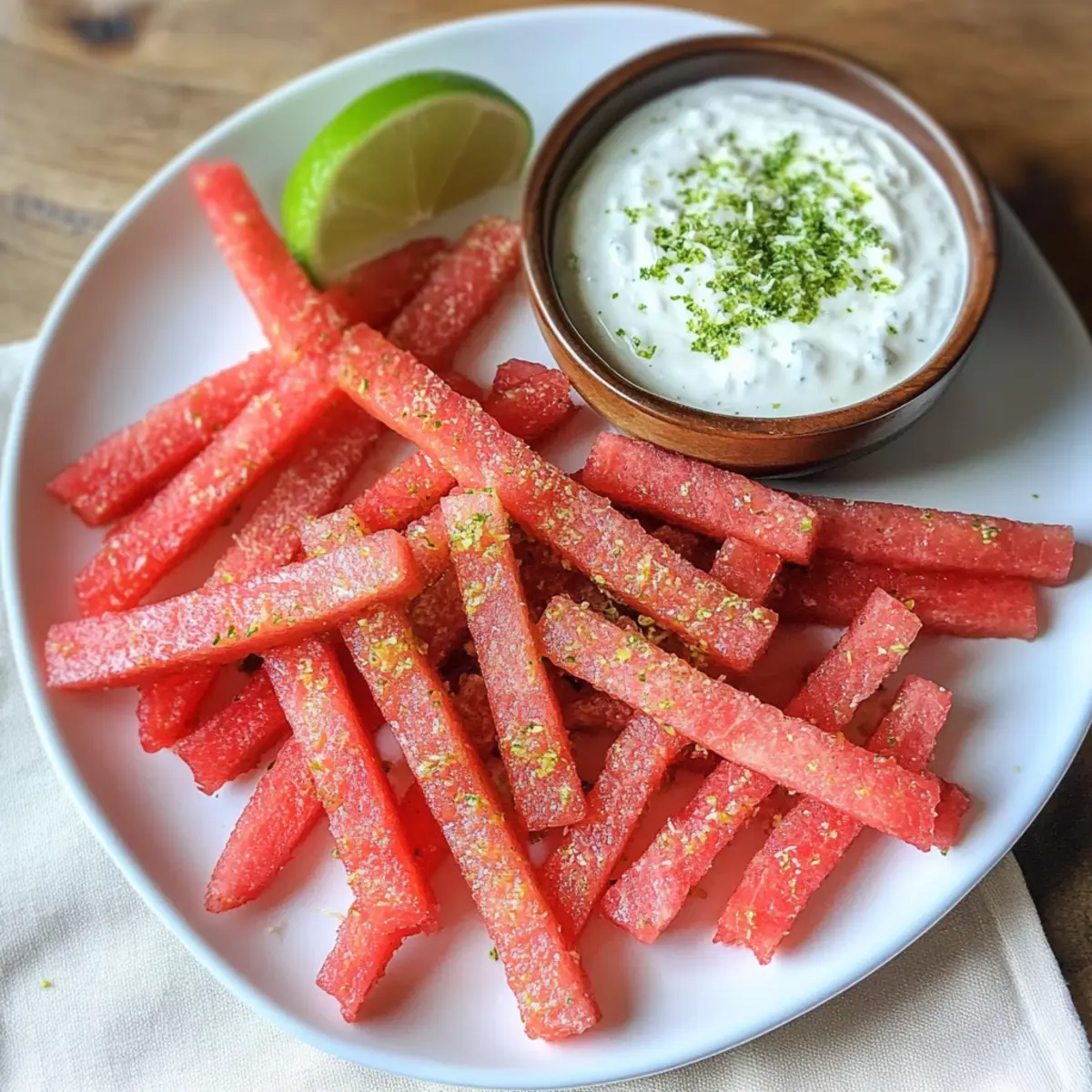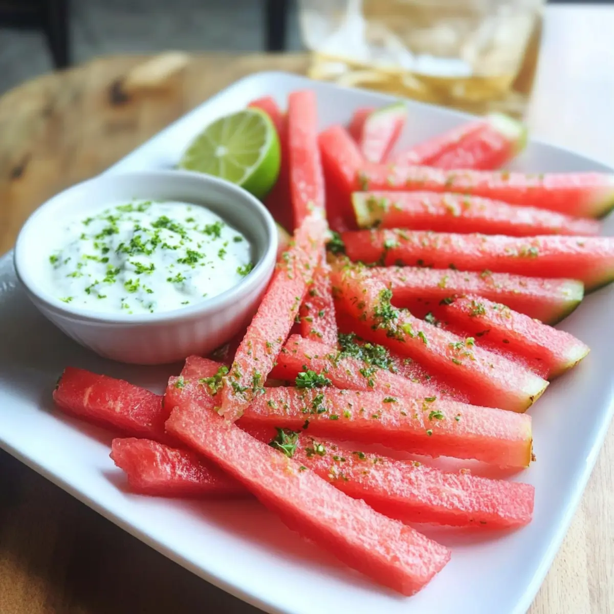Stell dir vor, ein heißer Sommertag neigt sich dem Ende zu und du stehst vor dem Kühlschrank, auf der Suche nach etwas Erfrischendem. Hier kommen die Scharfen Wassermelonen-Pommes mit Kokos-Limetten-Dip ins Spiel! Diese innovative Kombination aus saftigen Melonen und einem cremigen, veganen Dip ist nicht nur glutenfrei, sondern auch ein wahrer Hingucker auf jedem Grillfest oder Pool-Party. Die Zubereitung ist kinderleicht und das Beste daran: Du benötigst kaum Zeit, um dieses gesunde Snack-Highlight zu kreieren! Wer könnte da widerstehen? Lass uns gemeinsam dieses erfrischende Rezept entdecken und herausfinden, wie fröhlich ein einfacher Snack sein kann! Warum sind Wassermelonen-Pommes ein Must-Have? Erfrischende Kombination: Diese Scharfen Wassermelonen-Pommes sind eine perfekte Mischung aus süßer, saftiger Wassermelone und dem würzigen Kick von Tajin. Einfache Zubereitung: Du benötigst nur wenige Zutaten und wenig Zeit – ideal für spontane Snack-Momente! Vegan und glutenfrei: Sie sind nicht nur lecker, sondern passen auch in verschiedene Ernährungsweisen, was sie zu einem stilvollen Snack für alle macht. Kreative Variation: Experimentiere mit verschiedenen Gewürzen oder Dips, um dieses Rezept an deinen Geschmack anzupassen. Familienfreundlich: Kinder werden die fruchtige und knusprige Textur lieben, während Erwachsene den gesunden Aspekt genießen. Perfekt für Anlässe: Diese Pommes sind der Hit auf jeder Party und der gesunde Ersatz für herkömmliche Snacks. Verpasse nicht die Chance, zu beeindrucken! Scharfe Wassermelonen-Pommes Zutaten Für die Wassermelonen-Pommes • Wassermelone – Die Hauptzutat, die Süße und Erfrischung bringt; achten, die Schale zu entfernen und in Pommes-ähnliche Stücke zu schneiden. • Tajin Classic Gewürz – Verleiht den Pommes einen pikanten Kick; kann bei Bedarf durch eine Mischung aus ½ TL Salz, ¼ TL Chilipulver und Limettenzeste ersetzt werden. Für den Kokos-Limetten-Dip • Kokosjoghurt – Die Basis für den Dip, macht ihn cremig und hält ihn vegan; alternativ kann auch normaler Kokosjoghurt verwendet werden. • Limette – Sorgt für eine frische, säuerliche Note; frisch ausgepresster Limettensaft verstärkt den Geschmack. • Kokoszucker – Fügt dem Dip eine süße Note hinzu; dies ist optional, insbesondere wenn die Wassermelone bereits süß ist. Die scharfen Wassermelonen-Pommes sind nicht nur attraktiv, sondern auch gesund und schnell zubereitet – ein perfekter Snack für jede Gelegenheit! Schritt-für-Schritt-Anleitung für Scharfe Wassermelonen-Pommes Step 1: Dip vorbereiten In einer mittelgroßen Schüssel Kokosjoghurt, frisch ausgepressten Limettensaft und Limettenzeste gut vermengen. Füge optional Kokoszucker hinzu, um die Süße des Dips zu verstärken. Rühre alles gründlich um, bis eine cremige Konsistenz entsteht. Lasse den Dip abgedeckt im Kühlschrank ruhen, während du die Wassermelonen-Pommes zubereitest, damit die Aromen sich entfalten können. Step 2: Wassermelone schneiden Die Wassermelone auf ein stabiles Schneidebrett legen und die Schale vorsichtig mit einem scharfen Messer entfernen. Anschließend die Frucht in etwa 1 cm dicke Streifen schneiden, um die Pommes-ähnliche Form zu erhalten. Achte darauf, gleichmäßige Stücke zu schneiden, damit sie gleichmäßig frisch und saftig bleiben. Halte die geschnittenen Wassermelonen-Pommes bereit auf einem großen, flachen Teller. Step 3: Pommes würzen Die vorbereiteten Wassermelonen-Pommes gleichmäßig auf dem Servierteller anrichten. Streue das Tajin Classic Gewürz großzügig über die Pommes, sodass jede einzelne einen würzigen Geschmack erhält. Achte darauf, dass jede Pommes gut mit dem Gewürz bedeckt ist; es sorgt für einen tollen Kontrast zur Süße der Wassermelone. Dies ist der perfekte Moment, um Farbe und Geschmack in die Scharfen Wassermelonen-Pommes zu bringen. Step 4: Servieren Die Scharfen Wassermelonen-Pommes zusammen mit dem Kokos-Limetten-Dip servieren. Stelle den Dip in die Mitte des Tellers oder in eine separate Schüssel, sodass deine Gäste beim Genießen der Pommes dippen können. Ideal ist es, diese erfrischenden Snacks sofort zu servieren, während sie frisch und kühl sind. Lass dich von den fruchtigen Aromen und der knusprigen Textur verführen! Vorbereitungen für die Scharfen Wassermelonen-Pommes Die Scharfen Wassermelonen-Pommes sind nicht nur einfach zuzubereiten, sondern auch ideal für die Essensplanung! Du kannst die Wassermelone bis zu 3 Tage im Voraus in pommesartige Stücke schneiden und in einem luftdichten Behälter im Kühlschrank aufbewahren, um ihre Frische zu bewahren. Achte darauf, die Wassermelonen-Pommes erst kurz vor dem Servieren mit Tajin zu würzen, damit sie ihre knusprige Textur behalten. Der Kokos-Limetten-Dip kann ebenso bis zu 24 Stunden vorher vorbereitet werden; einfach im Kühlschrank aufbewahren, um die Aromen zu intensivieren. Wenn du bereit bist, die Snacks zu servieren, arrangiere die Pommes auf einem Teller und serviere den Dip dazu – so genießt du erfrischende, gesunde Snacks mit minimalem Aufwand! Lagerungstipps für Scharfe Wassermelonen-Pommes Raumtemperatur: Scharfe Wassermelonen-Pommes sollten nicht bei Raumtemperatur gelagert werden, da sie schnell an Frische verlieren. Ideal ist es, sie sofort nach der Zubereitung zu genießen. Kühlschrank: Du kannst geschnittene Wassermelonen-Pommes in einem luftdichten Behälter bis zu 5 Tage im Kühlschrank aufbewahren. Um die Textur zu erhalten, füge das Tajin-Gewürz erst kurz vor dem Servieren hinzu. Gefrierer: Das Einfrieren von Wassermelonen-Pommes wird nicht empfohlen, da sie durch das Gefrieren ihre knusprige Textur verlieren. Frisch zubereitet sind sie einfach am leckersten! Wiedererwärmung: Wenn du die Pommes aufbewahrst, kannst du sie nicht erneut aufwärmen, da sie ihre Frische und den tollen Geschmack verlieren. Serviere sie am besten frisch zubereitet mit dem Kokos-Limetten-Dip. Tipps für die besten Scharfen Wasse