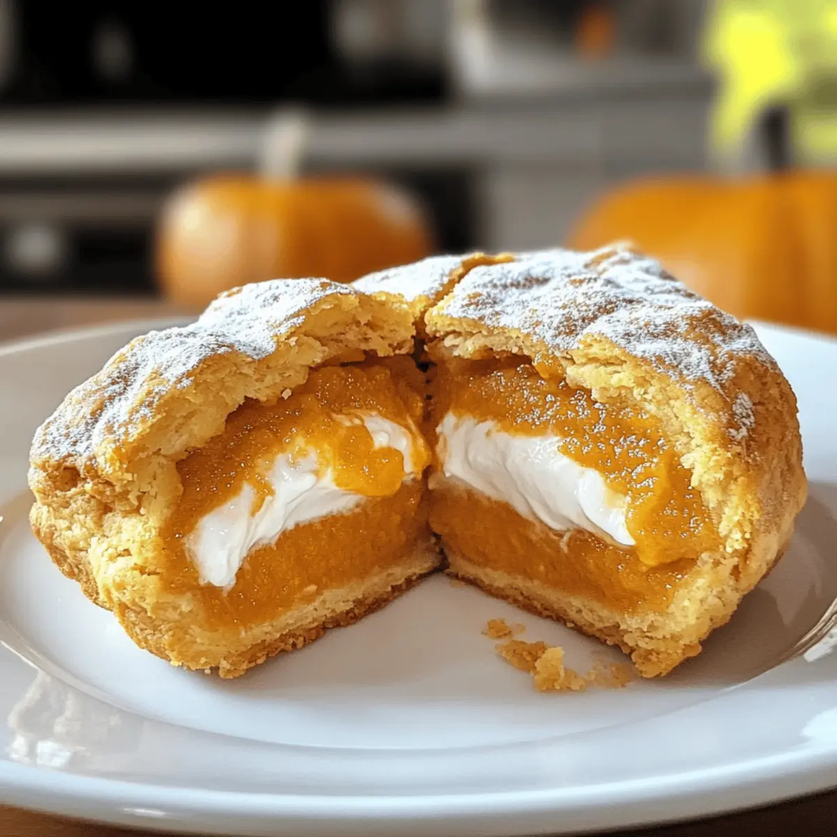 Die goldene Farbe dieser kleinen Köstlichkeiten erinnert an die schönsten Tage des Herbstes. Meine schnellen Pumpkin Pie Bombs sind nicht nur ein Eye-Catcher, sie bringen auch die traditionelle Liebe zu Kürbiskuchen in einen alltäglichen Snack. Diese schnelles Rezept vereint fluffige, buttrige Außenhülle mit einer cremigen Füllung, die Kinder und Erwachsene gleichermaßen begeistert – und das alles in nur 30 Minuten! Perfekt für geschäftige Morgen oder festliche Zusammenkünfte, lassen sich diese Bomben auch wunderbar als Dessert oder süße Überraschung anbieten. Lass uns gemeinsam diese köstlichen Snacks zaubern, die nicht nur den Gaumen erfreuen, sondern auch wunderbar variabel sind. Neugierig auf das Rezept? Warum wirst du dieses Rezept lieben? Einfachheit: Das Rezept ist unkompliziert und benötigt nur grundlegende Kochfähigkeiten, wodurch es für jeden zugänglich ist. Würziger Geschmack: Eine perfekte Kombination aus Kürbis und Gewürzen sorgt für ein echtes Herbstgefühl. Vielseitigkeit: Du kannst die Füllung ganz leicht anpassen, z.B. mit Apfel Pie Bomben. Schnelle Zubereitung: Die Bomben sind in nur 30 Minuten fertig – ideal für stressige Tage! Familienfreundlich: Diese kleinen Leckereien sind der Hit bei Groß und Klein und zaubern ein Lächeln auf jedes Gesicht. Perfekte Textur: Fluffiger Teig außen, cremige Füllung innen – ein Genuss, den du nicht verpassen möchtest! Kürbiskuchen Bomben Zutaten Für den Teig • Pillsbury Homestyle Butter Tastin’™ Kühlschrank-Teig – Sorgt für eine fluffige, buttrige Außenhülle. Empfehlenswert für beste Ergebnisse. • Milch – Reguliert die Konsistenz des cremigen Drizzles; Mandelmilch oder andere pflanzliche Alternativen können verwendet werden. Für die Füllung • Cremiger Frischkäse – Fügt der Füllung Cremigkeit hinzu. Kann durch Mascarpone ersetzt werden, wenn du einen milden Geschmack wünschst. • Kürbispüree aus der Dose – Essentiell für den geliebten Kürbishauch; achte auf hochwertige Dosenoptionen. • Eier – Dient als Bindemittel in der Füllung; für ein eifreies Rezept kann ein Flax-Ei verwendet werden. • Vanilleextrakt – Optional, aber empfohlen, um die Geschmackswärme zu verstärken. • Zucker – Süßt die Füllung und balanciert die Aromen; brauner Zucker kann durch normalen Zucker ersetzt werden. • Lichtbrauner Zucker – Steigert die Geschmacksintensität; kann weggelassen oder durch normalen Zucker ersetzt werden, falls nötig. • Kürbiskuchengewürz – Bietet die typischen Herbstgewürze; kann mit einer Mischung aus Zimt und Muskatnuss ersetzt werden. Für das Topping • Zimt & Zucker – Kreiert eine süße Kruste für zusätzlichen Geschmack; Muskatnuss kann für mehr Würze hinzugefügt werden. • Ungesalzene Butter – Bringt Reichhaltigkeit und Feuchtigkeit; Margarine kann ebenfalls verwendet werden. Diese portionierten Kürbiskuchen Bomben sind nicht nur ein Genuss für den Gaumen, sondern auch ein visuelles Highlight. Lass uns gemeinsam diese Köstlichkeiten zubereiten! Schritt-für-Schritt-Anleitung für schnelle Kürbiskuchen Bomben Schritt 1: Ofen vorheizen Heize deinen Ofen auf 190 °C (375 °F) vor und fettiere eine 10-Zoll gusseiserne Pfanne mit ungesalzener Butter. Achte darauf, die gesamte Fläche gleichmäßig zu bestreichen, damit die Kürbiskuchen Bomben später nicht daran kleben bleiben. Während der Ofen vorheizt, kannst du die anderen Schritte vorbereiten. Schritt 2: Füllung zubereiten Schlage in einer Rührschüssel den Frischkäse, den weißen Zucker und den lichtbraunen Zucker für etwa 2-3 Minuten cremig. Achte darauf, dass keine Klümpchen mehr vorhanden sind. Diese cremige Basis wird das Herz der schnellen Kürbiskuchen Bomben sein. Schritt 3: Kürbisfülle mischen Füge das Kürbispüree, das Ei, den Vanilleextrakt und das Kürbiskuchengewürz zur Mischung hinzu und rühre alles gut um, bis die Füllung schön glatt und gleichmäßig ist. Dies sorgt für den vollen, würzigen Geschmack, den du bei Kürbiskuchen Bomben erwartest. Schritt 4: Teig vorbereiten Nimm jeden Kühlschrank-Teig und forme ihn vorsichtig auf einer bemehlten Fläche zu runden Scheiben mit einem Durchmesser von 10 cm. Stelle sicher, dass die Dicke gleichmäßig ist, damit die Bomben beim Backen gleichmäßig aufgehen. Schritt 5: Füllung einfüllen Platziere 2 Esslöffel der köstlichen Kürbisfülle in der Mitte jeder Runde. Achte darauf, die Ränder gut zu verschließen, um ein Auslaufen während des Backens zu vermeiden. Das sorgfältige Versiegeln sorgt dafür, dass die Füllung perfekt bleibt und nicht ausläuft. Schritt 6: Butter und Zucker hinzufügen Träufle die geschmolzene Butter über die gefüllten Bomben und mische Zucker mit Zimt. Streue diese Mischung großzügig über die Oberseite der Bomben, um eine schöne, süße Kruste zu erzeugen und den zusätzlichen Geschmack zu verstärken. Schritt 7: Backen Backe die Kürbiskuchen Bomben 16-18 Minuten lang, bis sie goldbraun und aufgebläht sind. Du weißt, dass sie fertig sind, wenn sie schön glänzen und eine goldene Farbe angenommen haben. Achte darauf, sie nicht zu lange zu backen, damit sie innen schön weich bleiben. Schritt 8: Auskühlen lassen Lass die Bomben nach dem Backen 5 Minuten ruhen, damit sich die Füllung setzen kann. Dieser Schritt ist wichtig, um die perfekte Textur zu erzielen und den Geschmack noch zu intensivieren. Schritt 9: Drizzle vorbereiten Bereite die Drizzle vor, indem du Frischkäse, Puderzucker, Vanilleextrakt und Milch in einer Schüssel vermischst, bis alles schön cremig ist. Diese Zutat wird deine schnellen Kürbiskuchen Bomben abrunden und den letzten Schliff verleihen. Schritt 10: Servieren Träufle die cremige Mischung über die warmen Bomben, bevor du sie servierst. Diese finalen Schritte machen sie zum perfekten süßen Snack, der jedem schmeichelt und das Herz erwärmt. Hilfreiche Tipps für Kürbiskuchen Bomben Teig gleichmäßig ausrollen: Achte dara