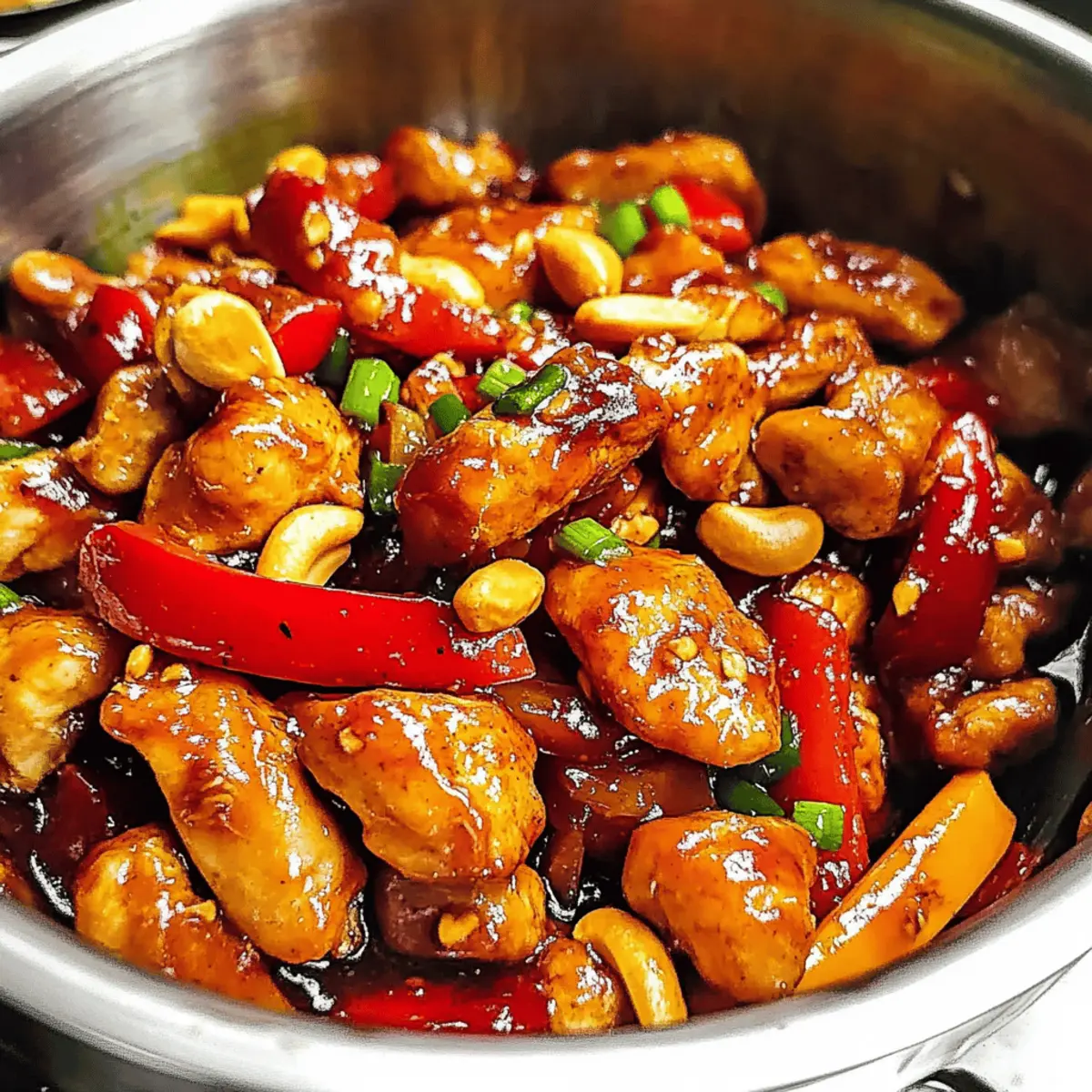 Der Duft von gebratenem Hühnerfleisch und würzigen Aromen zieht mich jedes Mal in die Küche, wenn ich an mein Lieblingsgericht, das Szechuan Huhn, denke. Dieses Rezept vereint zarte Hähnchenstücke mit einer feurigen, aromatischen Sauce, die das Geschmacksfeuerwerk in meinem Mund entfacht. Am besten ist, dass es so schnell zubereitet ist, dass ich nicht auf den Lieferservice warten muss – perfekt für alle, die eine schnelle, aber köstliche Mahlzeit suchen. Mit der Möglichkeit, die Schärfe ganz nach meinem Geschmack zu variieren und eventuell glutenfreie Alternativen zu nutzen, zeigt sich dieses Gericht als vielseitig und anpassbar. Bereit, den Kochlöffel zu schwingen und etwas Aufregung auf den Teller zu bringen? Dann lasst uns gemeinsam in die Welt der Aromen eintauchen! Warum wird dieses Rezept Sie begeistern? Einfache Zubereitung: In nur 30 Minuten haben Sie ein fantastisches Gericht auf dem Tisch, ideal für geschäftige Wochentage. Vielseitige Anpassbarkeit: Passen Sie die Schärfe nach Ihrem Geschmack an und experimentieren Sie mit verschiedenen Gemüsesorten für unendliche Variationen. Reiche Aromen: Die Kombination aus Szechuan-Pfeffer und einer Vielzahl von Gewürzen sorgt für ein unvergleichliches Geschmackserlebnis. Besser als der Lieferservice: Genießen Sie ein authentisches Szechuan-Gericht, das leichter und gesünder ist als Essen zur Mitnahme. Probieren Sie auch zart geschmorte Rinderkurzbraten mit Karamellsauce für eine Ergänzung, die das Kochen zu einem Fest macht! Szechuan-Hühnchen Zutaten • Die perfekten Zutaten für ein köstliches Gericht! Für das Hühnchen Hühnchen (1,5 lbs, Schenkel oder Brust) – Das Hauptprotein; Schenkel sind saftiger und bevorzugt für ihre Zartheit. Reduzierte Natrium-Sojasauce (4 EL) – Fügt herzhaften Geschmack hinzu; reduziert den Salzgehalt für ein besseres Essgefühl. Maisstärke (insgesamt 3,5 EL) – Bindet den Geschmack und zartet das Hühnchen während der Marinierung. Japanischer Reiswein (2 EL oder trockener Sherry) – Verleiht Süße und geschmackliche Tiefe; nicht durch Reisessig ersetzen. Geröstetes Sesamöl (2 EL) – Fügt einen nussigen Geschmack hinzu; unbedingt geröstetes Sesamöl verwenden. Austernsauce (3 EL) – Steigert den Umami-Geschmack; verwenden Sie hochqualitative Marken für besseren Geschmack. Für die Sauce Hühnerbrühe (1/3 Tasse) – Verbessert den Geschmack; am besten mit niedrigerem Natriumgehalt. Brauner Zucker (2 EL) – Balanciert die Schärfe mit Süße; nach Geschmack anpassen. Gemahlener Szechuan-Pfeffer (1,5 TL) – Schafft eine einzigartige, betäubende Schärfe; vorsichtig dosieren. Chinesische 5-Gewürz-Pulver (1/2 TL) – Bringt eine komplexe Aromenvielfalt ein. Für das Gemüse Zwiebel (1, in Scheiben geschnitten) – Bietet aromatische Basis und Süße. Paprika (1 rote, 1 gelbe, in Scheiben geschnitten) – Sorgt für Farbe und Süße; je nach Vorliebe austauschbar. Thai getrocknete rote Chilis (15 ganze, optionale Samen für extra Schärfe) – Fügt Wärme hinzu; Menge nach Schärfetoleranz anpassen. Ingwer (1 EL, gehackt) – Bringt Wärme und Geschmack. Knoblauch (4 Zehen, gehackt) – Verbessert den Gesamtgeschmack und das Aroma. Für den Crunch Erdnüsse (1/3 Tasse, geröstet) – Fügt Knusprigkeit und Reichhaltigkeit hinzu; bei Allergien weglassen. Schritt-für-Schritt-Anleitung für Schnelles Szechuan-Hühnchen Step 1: Hühnchen marinieren In einer Schüssel die Maisstärke, Backpulver, Sojasauce, den Japanischen Reiswein und das geröstete Sesamöl vermengen. Das Hähnchen hinzufügen und gleichmäßig mit der Marinade bestreichen. Die Schüssel abdecken und das Hühnchen 15 Minuten ruhen lassen, damit die Aromen gut einziehen und das Fleisch zart wird. Step 2: Szechuan-Sauce zubereiten In einer separaten Schüssel die Austernsauce, Sojasauce, Hühnerbrühe, Reiswein, Sesamöl, Maisstärke, braunen Zucker, gemahlenen Szechuan-Pfeffer und das chinesische 5-Gewürz-Pulver gut vermischen. Diese Sauce stellt die aromatische Grundlage für das Szechuan-Hühnchen dar. Sobald alles gut verrührt ist, zur Seite stellen. Step 3: Erdnüsse rösten Erhitzen Sie eine Pfanne bei mittlerer Hitze und geben Sie die Erdnüsse hinein. Unter gelegentlichem Rühren rösten, bis sie goldbraun und knusprig sind (etwa 3-5 Minuten). Achten Sie darauf, dass sie nicht anbrennen. Nach dem Rösten die Erdnüsse aus der Pfanne nehmen und beiseitelegen. Step 4: Hühnchen anbraten In der gleichen Pfanne etwas Öl erhitzen und das marinierte Hühnchen in einer einzigen Schicht hinzufügen. Das Hühnchen 2-4 Minuten anbraten, bis es auf beiden Seiten goldbraun ist. Das Hähnchen muss nicht vollständig durchgegart sein, da es später weiter kocht. Nach dem Braten das Hühnchen aus der Pfanne nehmen und beiseite stellen. Step 5: Gemüse anbraten Fügen Sie bei Bedarf etwas mehr Öl in die Pfanne hinzu und geben Sie die Zwiebeln hinein. 2 Minuten bei mittlerer Hitze anbraten, bis sie weich und durchscheinend sind. Anschließend die Paprika, den Ingwer, den Knoblauch und die Thai Chilis hinzufügen und alles für weitere 1-2 Minuten braten, bis das Gemüse leicht weich ist. Step 6: Zutaten kombinieren Das Hühnchen zurück in die Pfanne geben und die zuvor zubereitete Szechuan-Sauce hinzufügen. Gut umrühren und etwa 1-2 Minuten weiterkochen, bis die Sauce eindickt und das Hähnchen durchgegart ist. Achten Sie darauf, dass die Sauce gleichmäßig das Hühnchen und das Gemüse umhüllt. Lagerungstipps für Szechuan-Hühnchen Kühlschrank: Bewahren Sie übrig gebliebenes Szechuan-Hühnchen in einem luftdichten Behälter auf. So bleibt es bis zu 5 Tage frisch und schmackhaft. Gefrierschrank: Für längere Lagerung können Sie das Szechuan-Hühnchen ohne Paprika bis zu 3 Monate einfrieren. Stellen Sie sicher, dass es gut verpackt ist, um Gefrierbrand zu vermeiden. Auftauen: Lassen Sie gefrorenes Hühnchen über Nacht im Kühlschrank auftauen, um die beste Textur und den besten Geschmack zu gewä