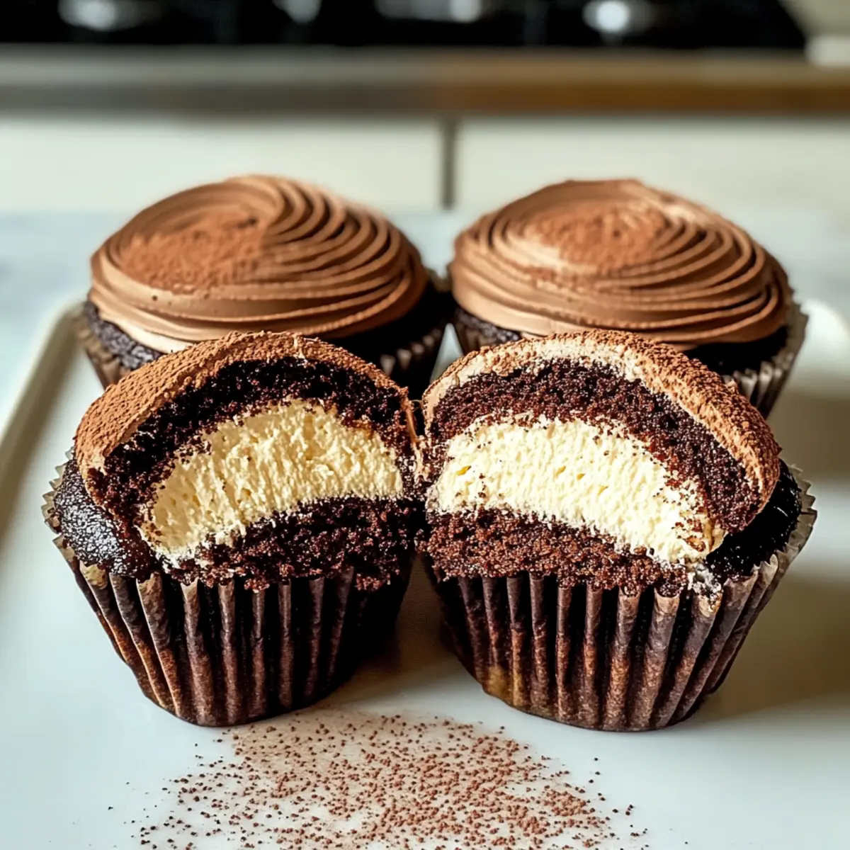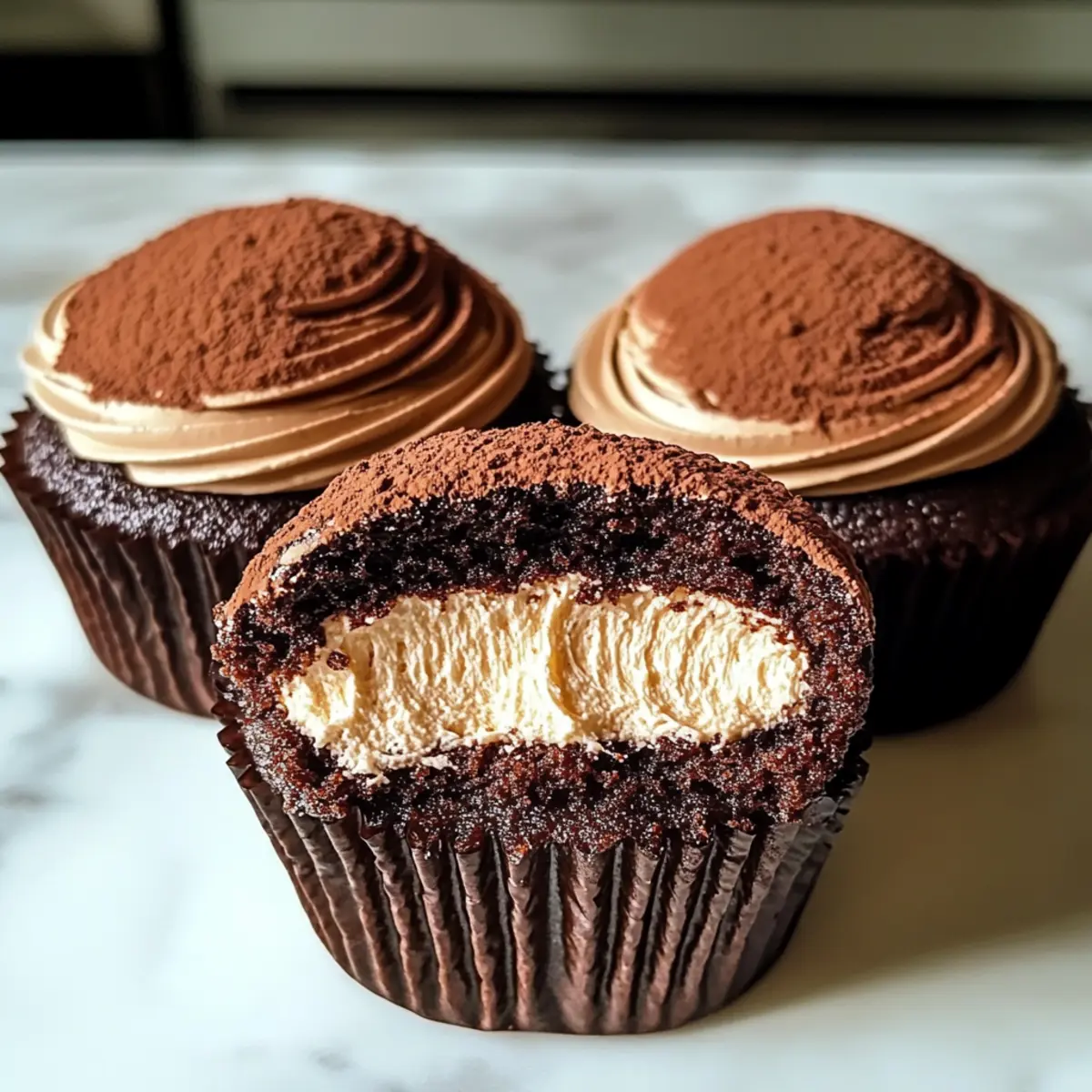 Genieße diese köstlichen Schokoladen-Tiramisu-Cupcakes, die Aromen von Schokolade und Kaffee vereinen. Perfekt für jeden Anlass und einfach zuzubereiten.