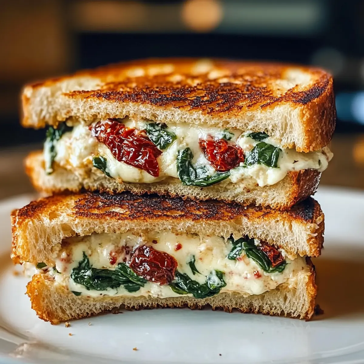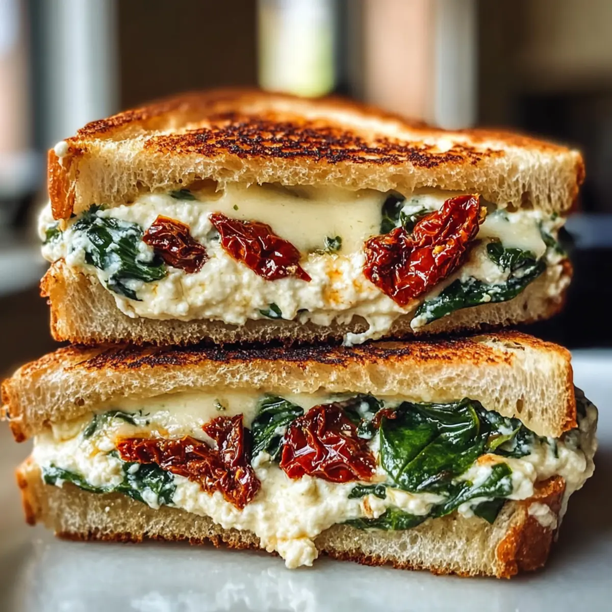 Die Zubereitung dieses Sonnentrockene Tomate Spinat Ricotta Grillkäse ist ideal für geschäftige Wochentage, denn viele Komponenten können leicht im Voraus vorbereitet werden. Die Ricotta-Füllung mit sonngetrockneten Tomaten und Spinat könnt ihr bis zu 3 Tage im Voraus zubereiten und im Kühlschrank aufbewahren – stellt sicher, dass ihr die Mischung luftdicht verpackt, um die Frische zu bewahren. Am Tag des Servierens müsst ihr lediglich die Sandwiches zusammenstellen und sie direkt in der Pfanne braten, bis sie goldbraun sind; das dauert nur etwa 6-8 Minuten. So spart ihr nicht nur Zeit, sondern könnt auch sicherstellen, dass euer Grillkäse immer genauso köstlich und frisch bleibt!