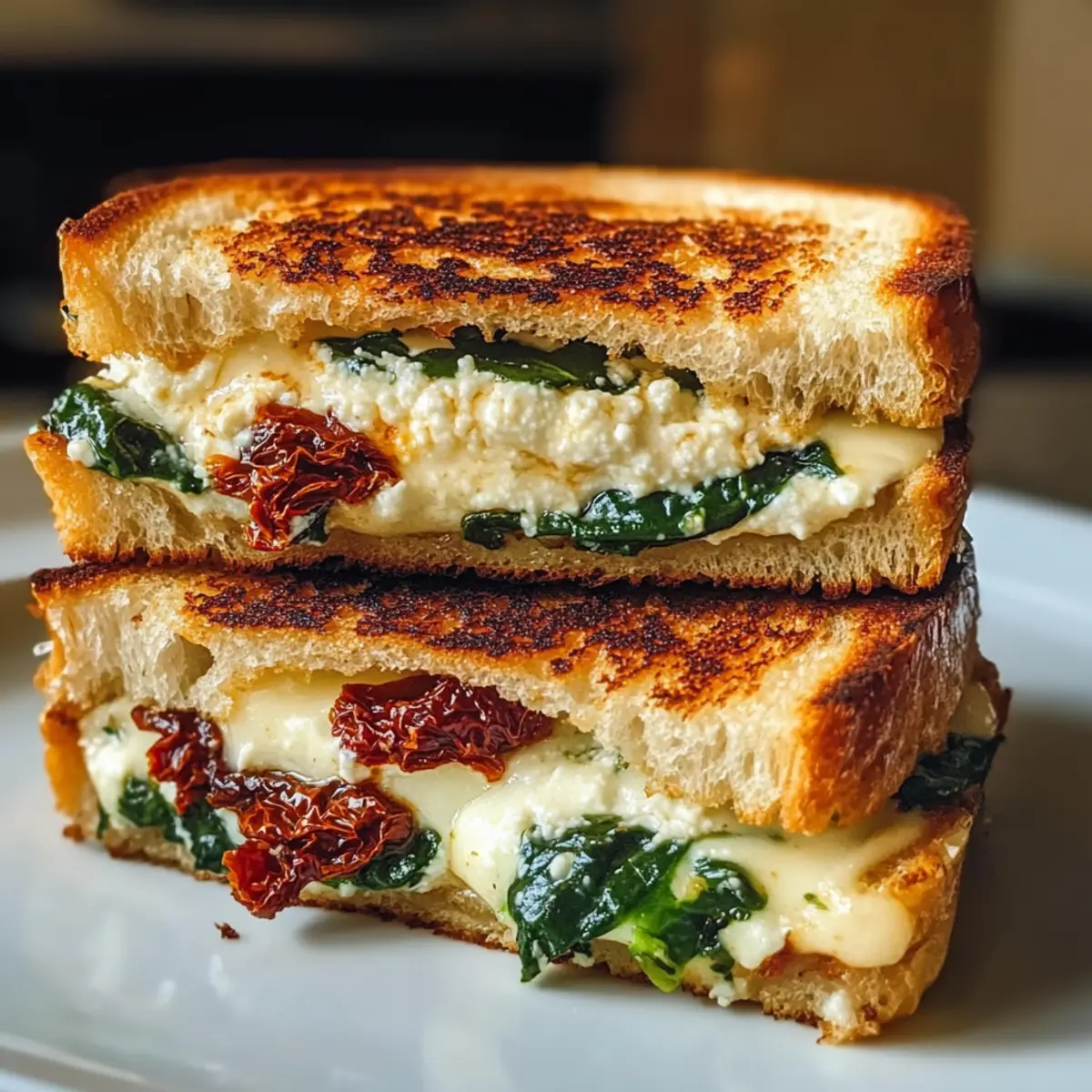 Genießen Sie diesen köstlichen Sonnentrockene Tomate Spinat Ricotta Grillkäse, eine kreative Abwandlung des klassischen Grillkäses.