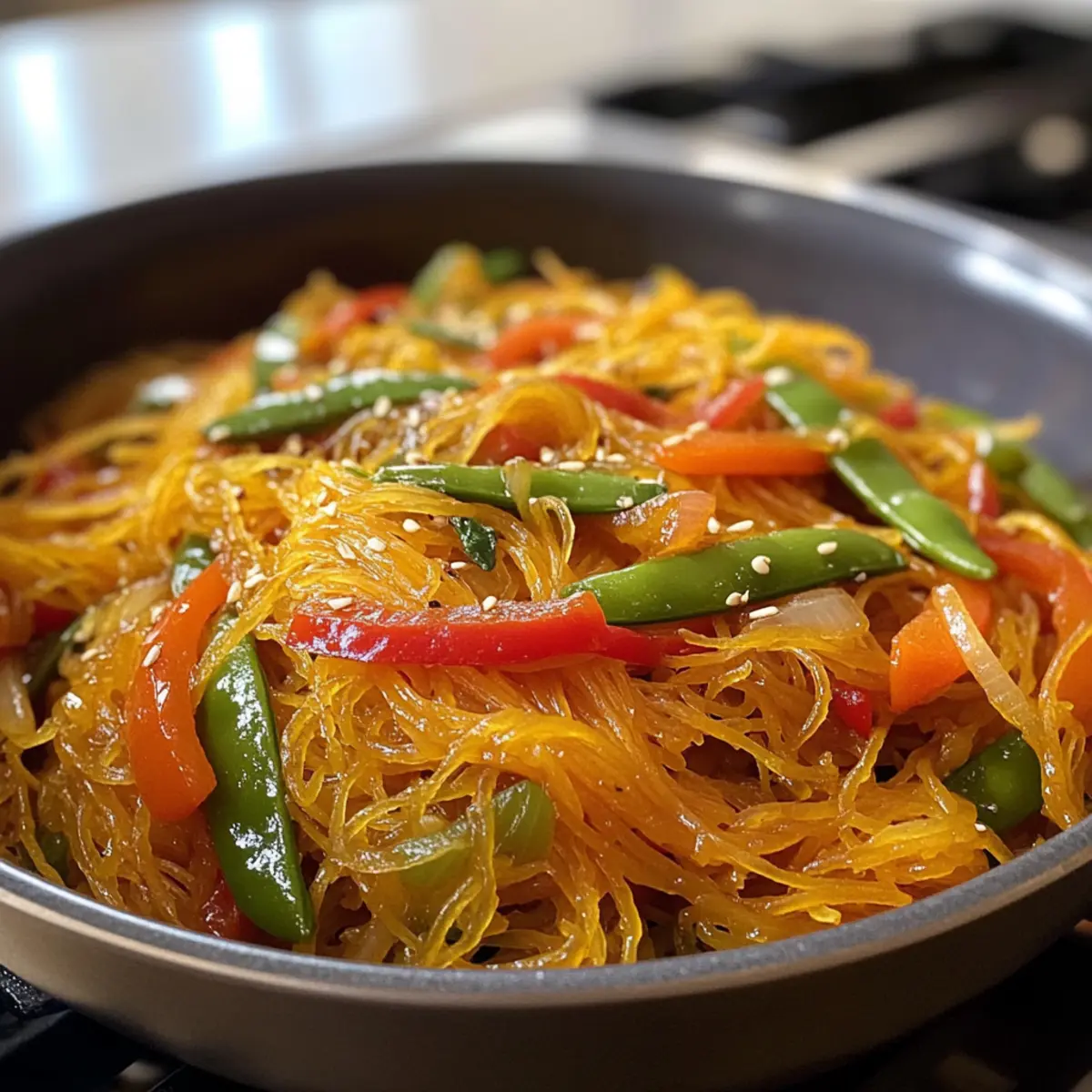 Es gibt wohl kaum etwas Schöneres, als den Duft von frisch gekochtem Essen, der durch die Küche zieht. Heute lade ich euch ein, die köstliche Welt des Healthy Low-Carb Spaghetti-Kürbis Chow Mein zu entdecken. Diese vielschichtige Variante eines klassischen Lieblings vereint die zarten Stränge von Spaghetti-Kürbis mit knackigem Gemüse und einem aufregenden, würzigen Saucenmix. Besonders verlockend ist der Vorteil, dass dieser Genuss nicht nur gesund, sondern auch glutenfrei ist – perfekt für alle, die auf der Suche nach einer leckeren und guilt-free Alternative zu ihrem schnellen Takeaway-Favoriten sind. Glaubt mir, dieses Gericht wird auch eure Familie oder Gäste begeistern! Seid ihr bereit, mehr über diese kreative Rezeptoption zu erfahren? Warum ist dieses Rezept besonders? Vielfalt in jedem Bissen: Mit Spaghetti-Kürbis als Hauptzutat bietet dieses Gericht eine einzigartige Alternative zu traditionellen Nudeln, ideal für alle, die auf Kohlenhydrate verzichten möchten. Schnell und einfach: In nur 45 Minuten zaubert ihr ein köstliches und nahrhaftes Gericht, das eure Abende bereichert. Gesunde Zutaten: Gemüse wie Paprika und Schneebohnen sorgen nicht nur für eine bunte Optik, sondern auch für zusätzliche Vitamine. Anpassbar: Fühlt euch frei, eigenes Protein wie Tofu oder Garnelen hinzuzufügen, um es euren Vorlieben anzupassen. Beliebter Genuss: Ideal für Familien oder Freunde – jeder wird den köstlichen Geschmack und die Leichtigkeit schätzen! Zögert nicht, auch das Kaese Spaghetti Rezept auszuprobieren, wenn euch diese gesunde Küche gefällt! Spaghetti-Kürbis Chow Mein Zutaten Für den Spaghetti-Kürbis • Spaghetti-Kürbis – Der Hauptbestandteil, der als kohlenhydratarmer Nudelersatz dient. Wählt einen mittelgroßen Kürbis für die beste Textur. Für das Gemüse • Olivenöl – Zum Anbraten und zum Verstärken der Aromen. Kann durch Sesamöl für einen nussigen Geschmack ersetzt werden. • Zwiebel – Fügt Tiefe und Süße hinzu. Verwendet eine gelbe Zwiebel für einen milderen Geschmack. • Knoblauch – Verbessert das Aroma und den Geschmack. Frischer Knoblauch ist ideal, aber Knoblauchpulver funktioniert auch in der Kürze. • Paprika – Sorgt für Farbe und Knackigkeit. Rote oder gelbe Varianten bieten Süße; grüne können Bitterkeit einführen. • Karotten – Für zusätzliche Süße und Knackigkeit. Alternativ könnt ihr Zucchini verwenden für eine andere Textur. • Schneebohnen – Tragen zur Knackigkeit bei. Kann durch Zuckerschoten oder grüne Bohnen ersetzt werden, falls nicht verfügbar. Für die Sauce • Sojasauce – Liefert umami Geschmack; nutzt Tamari für glutenfrei. • Reisessig – Fügt Frische hinzu; kann durch Apfelessig für einen ähnlichen Geschmack ersetzt werden. • Austernsauce oder Hoisin-Sauce – Sorgt für einen süßen und herzhaften Geschmack. Hoisin-Sauce ist eine vegetarische Alternative. Für die Garnitur • Frischer Koriander – Für Garnitur und Frische. Minze kann für ein anderes Geschmacksprofil verwendet werden. • Chili Knoblauch Sauce – Optional für Schärfe. Chili-Sauce kann ersetzt werden, wenn gewünscht. Step-by-Step Instructions for Spaghetti-Kürbis Chow Mein Step 1: Backofen vorheizen Heize den Ofen auf 190°C (375°F) vor und lege ein Backblech mit etwas Öl aus. Dies sorgt dafür, dass der Spaghetti-Kürbis beim Rösten nicht anklebt. Mit einem scharfen Messer bereitest du das Gemüse vor und stellst sicher, dass alles griffbereit ist, bevor du mit der Zubereitung beginnst. Step 2: Spaghetti-Kürbis zubereiten Halbiere den Spaghetti-Kürbis vorsichtig der Länge nach und entferne die Kerne mit einem Löffel. Lege die Kürbishälften mit der Schnittfläche nach unten auf das Backblech. Backe sie für ca. 45 Minuten, bis sie zart sind und eine Gabel leicht in die Faser eindringt, wodurch die typischen “Nudeln” entstehen. Step 3: Sauce anrühren In einer kleinen Schüssel vermischst du die Sojasauce, den Reisessig und die Austernsauce oder Hoisinsauce. Rühre die Zutaten gut durch, bis sie vollständig kombiniert sind. Diese Mischung verleiht deinem Spaghetti-Kürbis Chow Mein den herzhaften und süßen Geschmack, den du liebst. Step 4: Gemüse anbraten Erhitze in einer großen Pfanne bei mittlerer bis hoher Hitze etwas Olivenöl. Füge die Zwiebeln und den Knoblauch hinzu und brate sie etwa 1 Minute lang, bis sie aromatisch sind. Diese Basis sorgt für einen köstlichen Duft, der deine Geschmacksknospen hervorhebt. Step 5: Weitere Zutaten hinzufügen Gib die Paprika, Schneebohnen und Karotten in die Pfanne. Sauté die Mischung für ca. 2 Minuten, um das Gemüse knackig zu halten. Achte darauf, die Farben optimal zu erhalten, so dass das Gemüse frisch und einladend aussieht. Step 6: Kürbis und Sauce kombinieren Sobald der Spaghetti-Kürbis fertig gebacken ist, kratze vorsichtig die Stränge mit einer Gabel heraus und füge sie direkt in die Pfanne hinzu. Gieße die vorbereitete Sauce darüber und vermische alles vorsichtig, sodass die Kürbisstränge gleichmäßig mit der Sauce überzogen sind. Erhitze alles für etwa 1 Minute. Step 7: Abschmecken und servieren Schmecke das Spaghetti-Kürbis Chow Mein nach Belieben ab und füge bei Bedarf mehr Sojasauce oder Gewürze hinzu. Serviere das Gericht umgehend, garniert mit frischem Koriander und gegebenenfalls einem Spritzer Chili-Knoblauch-Sauce für extra Pepp. Experten-Tipps für Spaghetti-Kürbis Chow Mein Richtige Garzeit: Überprüfe den Spaghetti-Kürbis auf Zartheit, indem du mit einer Gabel hinein stichst – er sollte leicht durchstochen werden können, um die perfekte Konsistenz zu erreichen. Gemüse knackig halten: Vermeide, das Gemüse zu lange zu braten, um seinen Biss zu bewahren. Kurz anbraten sorgt für die besten Ergebnisse in deinem Spaghetti-Kürbis Chow Mein. Küchenwerkzeuge nutzen: Verwende ein scharfes Kochmesser, um den Spaghetti-Kürbis einfacher zu schneiden. Wenn der Kürbis sehr hart ist, lege ihn 2 