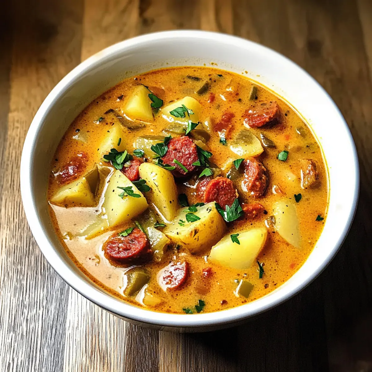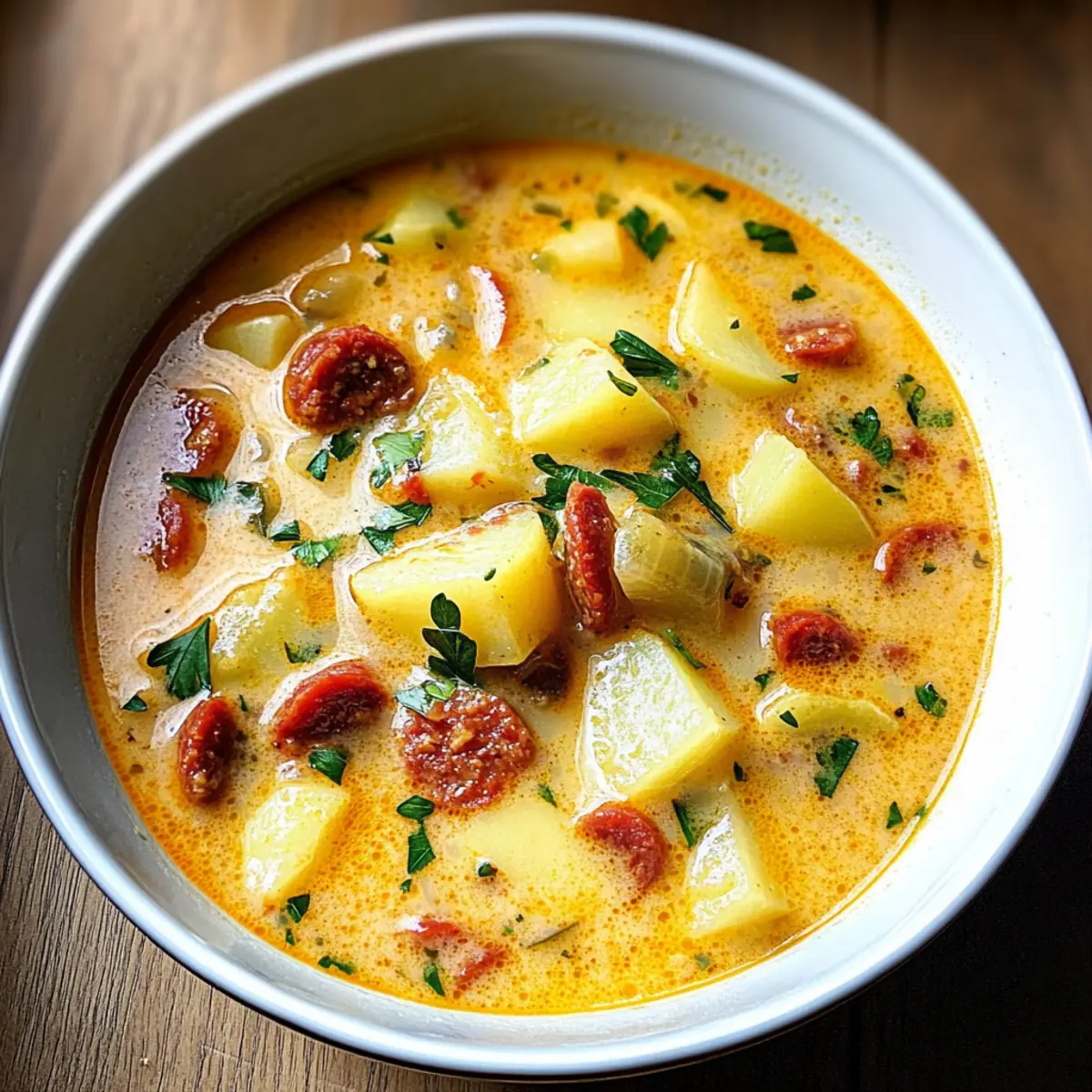 Die kalte Jahreszeit bringt nicht nur frostige Temperaturen, sondern auch den Wunsch nach wärmendem Komfortessen. Diese Spanische Kartoffelsuppe mit Chorizo ist genau das, was man braucht, um Körper und Seele zu erwärmen. Sie vereint zarte, cremige Kartoffeln, süßen Paprika und würzige Chorizo zu einem herzhaften Gericht, das nicht nur schnell zubereitet ist, sondern auch jeden Gaumen erfreut. Mit ihrer reichen Geschmacksvielfalt und der Sättigung, die sie bietet, ist diese Suppe der ideale Begleiter für gemütliche Abende und der perfekte Grund, sich von der Fast-Food-Kultur zu verabschieden. Wollen Sie wissen, wie einfach es ist, dieses köstliche Gericht zuzubereiten? Warum werden Sie diese Suppe lieben? Wärmendes Komfortessen: Diese Spanische Kartoffelsuppe mit Chorizo ist der Inbegriff von Gemütlichkeit und eignet sich perfekt für kalte Abende. Reiche Aromen: Die Kombination aus würziger Chorizo und cremigen Kartoffeln verleiht der Suppe einen unverwechselbaren Geschmack, der jedem gefallen wird. Einfach und schnell: Mit nur wenigen Zutaten ist dieses Rezept schnell zubereitet und benötigt keine besonderen Kochkünste. Vielfältige Variationen: Ob mit zusätzlichen Gemüse oder einer veganen Variante – dieses Gericht bietet viel Raum für Kreativität. Köstlicher Genuss: Servieren Sie die Suppe mit knusprigem Brot für eine vollendete Mahlzeit, die alle begeistern wird! Versuchen Sie auch unser Rezept für Asiatisches Rinderhackfleisch Mit für einen weiteren herzhaften Genuss oder wählen Sie unseren Zart Geschmorte Rinderkurzbraten für ein festliches Abendessen! Zutaten für die Spanische Kartoffelsuppe mit Chorizo • Entdecken Sie die köstlichen Zutaten, die dieses Rezept unvergesslich machen! Für die Suppe Olivenöl – dient als Kochmedium; verwenden Sie extra natives Olivenöl für mehr Geschmack. Spanische Chorizo – der Hauptgeschmacksträger; mild oder scharf je nach Vorliebe wählbar. Grüne Paprika – sorgt für Süße und Farbe; ersetzen Sie sie durch rote Paprika für einen süßeren Geschmack. Gelbe Zwiebel – bringt Tiefe ins Gericht; süße Zwiebeln sind auch eine köstliche Alternative. Knoblauch – frisch für Aroma und Geschmack; je nach Vorliebe 4-6 Zehen verwenden. Karotte – fügt Süße und Textur hinzu; mehr Karotten oder zusätzliche Gemüse können hinzugefügt werden. Getrockneter Oregano – verleiht der Suppe eine erdige Note. Gemahlenen Kreuzkümmel – bringt einen warmen, aromatischen Geschmack. Süßpaprika – verstärkt die Farbe und den Geschmack; für eine andere Geschmacksrichtung kann geräucherter Paprika verwendet werden. Salz und schwarzer Pfeffer – grundlegende Gewürze für den Geschmack. Cayennepfeffer – bringt Schärfe; nach Geschmack anpassen. Tomatenmark – intensiviert den umami Geschmack; für eine leichtere Variante kann es weggelassen werden. Mehl – dient zum Dickeinigen der Suppe; für eine glutenfreie Version verwenden Sie Maisstärke. Wachsartige Kartoffeln – Hauptzutat für eine cremige Konsistenz; Yukon Gold oder rote Kartoffeln eignen sich gut. Hühnerbrühe – gibt der Suppe einen geschmackvollen Grundstock; ersetzen Sie sie durch Gemüsebrühe für eine vegetarische Option. Sahne – sorgt für Reichhaltigkeit und Cremigkeit; kann weggelassen oder durch eine pflanzliche Alternative ersetzt werden für eine leichtere Suppe. Gehackte Petersilie – frischer Garnitur, der das Gericht aufhellt. Diese Zutaten machen die Spanische Kartoffelsuppe mit Chorizo nicht nur zu einem wärmenden Gericht, sondern auch zu einem köstlichen Erlebnis, das sich perfekt für eine gemütliche Zusammenkunft eignet! Schritt-für-Schritt-Anleitung für die Spanische Kartoffelsuppe mit Chorizo Step 1: Zutaten vorbereiten Beginnen Sie damit, die Kartoffeln, Paprika, Karotte, Zwiebel und Knoblauch zu schälen und in kleine Stücke zu schneiden, damit sie gleichmäßig garen. Stellen Sie sicher, dass alles gut gewaschen und vorbereitet ist, bevor Sie mit dem Kochen beginnen. Diese Vorbereitung ist entscheidend für die köstliche Spanische Kartoffelsuppe mit Chorizo. Step 2: Chorizo anbraten Erhitzen Sie in einem großen Topf bei mittlerer bis hoher Hitze einen Esslöffel Olivenöl. Geben Sie die gewürfelte Chorizo hinzu und braten Sie diese für etwa 3 Minuten, bis sie schön gebräunt ist und ihr köstliches Aroma entfaltet. Achten Sie darauf, die Chorizo regelmäßig umzurühren, damit sie gleichmäßig gart und nicht anbrennt. Step 3: Gemüse hinzufügen Fügen Sie nun die gewürfelte grüne Paprika in den Topf hinzu und kochen Sie diese für 2 Minuten. Geben Sie dann die Zwiebelwürfel und den gehackten Knoblauch dazu und garen Sie alles für weitere 2 Minuten, bis das Gemüse weich wird und die Aromen sich entfalten. Diese Schritte sind wichtig für eine geschmackvolle Basis der Suppe. Step 4: Gewürze und Karotten hinzufügen Streuen Sie die Karottenwürfel zusammen mit Salz, Pfeffer, Kreuzkümmel, Oregano, Paprika und Cayennepfeffer in den Topf. Rühren Sie alles gut durch und lassen Sie es für etwa 2 Minuten unter gelegentlichem Rühren anbraten, bis die Gewürze ihre Aromen freigeben und das Gemüse leicht weich wird. Step 5: Tomatenmark und Mehl einrühren Jetzt ist es an der Zeit, das Tomatenmark und das Mehl hinzuzufügen. Rühren Sie alles sorgfältig um, bis sich die Zutaten gleichmäßig vermischen und das Mehl die Flüssigkeiten aufnimmt. Dies geschieht schnell, also behalten Sie die Konsistenz im Auge, um Klumpen zu vermeiden. Step 6: Brühe und Kartoffeln einfüllen Geben Sie nun die gewürfelten Kartoffeln in den Topf und gießen Sie die Hühnerbrühe darüber. Erhöhen Sie die Hitze und bringen Sie die Mischung zum Kochen. Sobald die Suppe kocht, decken Sie den Topf ab, reduzieren Sie die Hitze und lassen Sie sie für etwa 15 Minuten köcheln, bis die Kartoffeln weich sind und gut durchgezogen haben. Step 7: Sahne und Petersilie hinzufügen Rühren Sie nach 15 Minuten die Sahne und die gehackte 