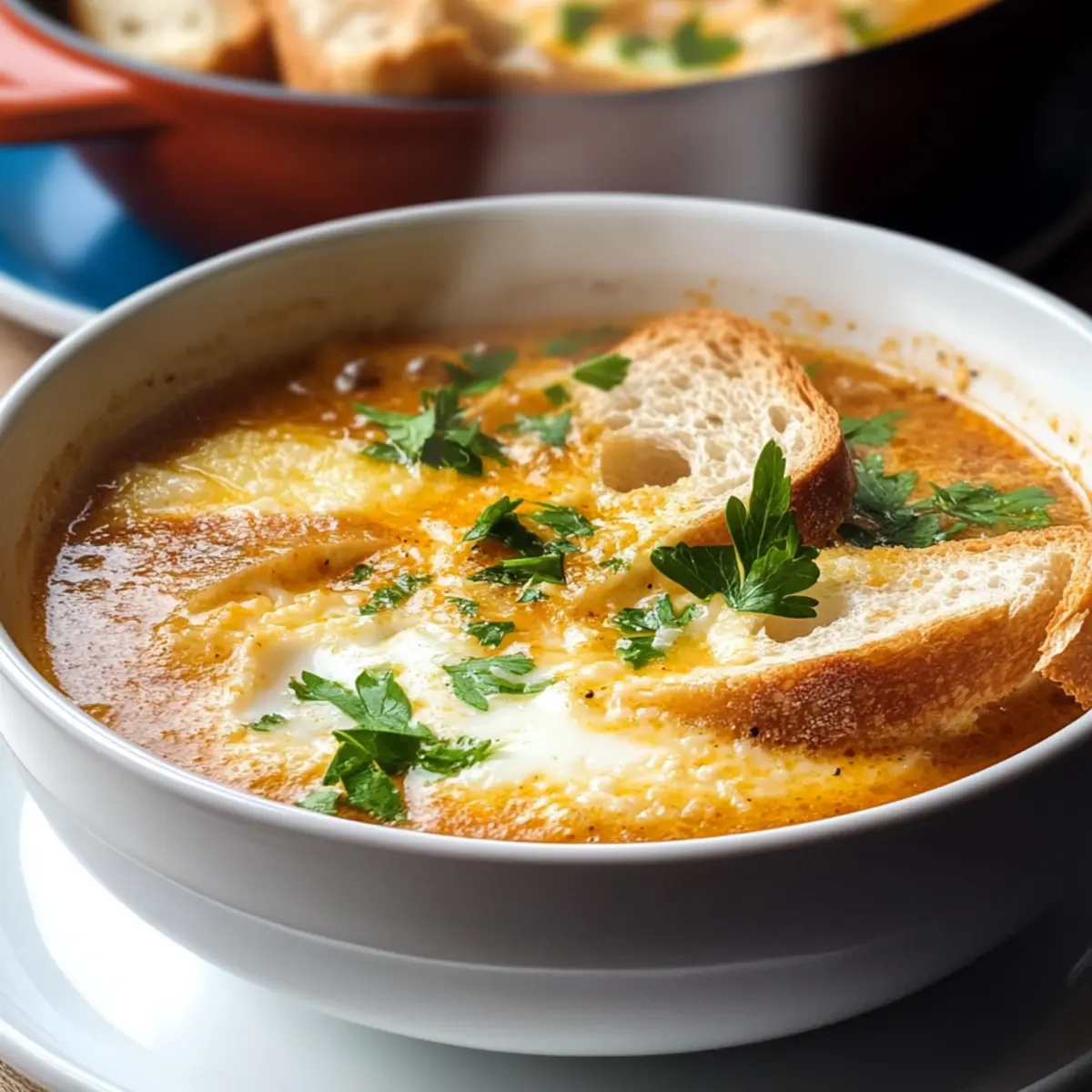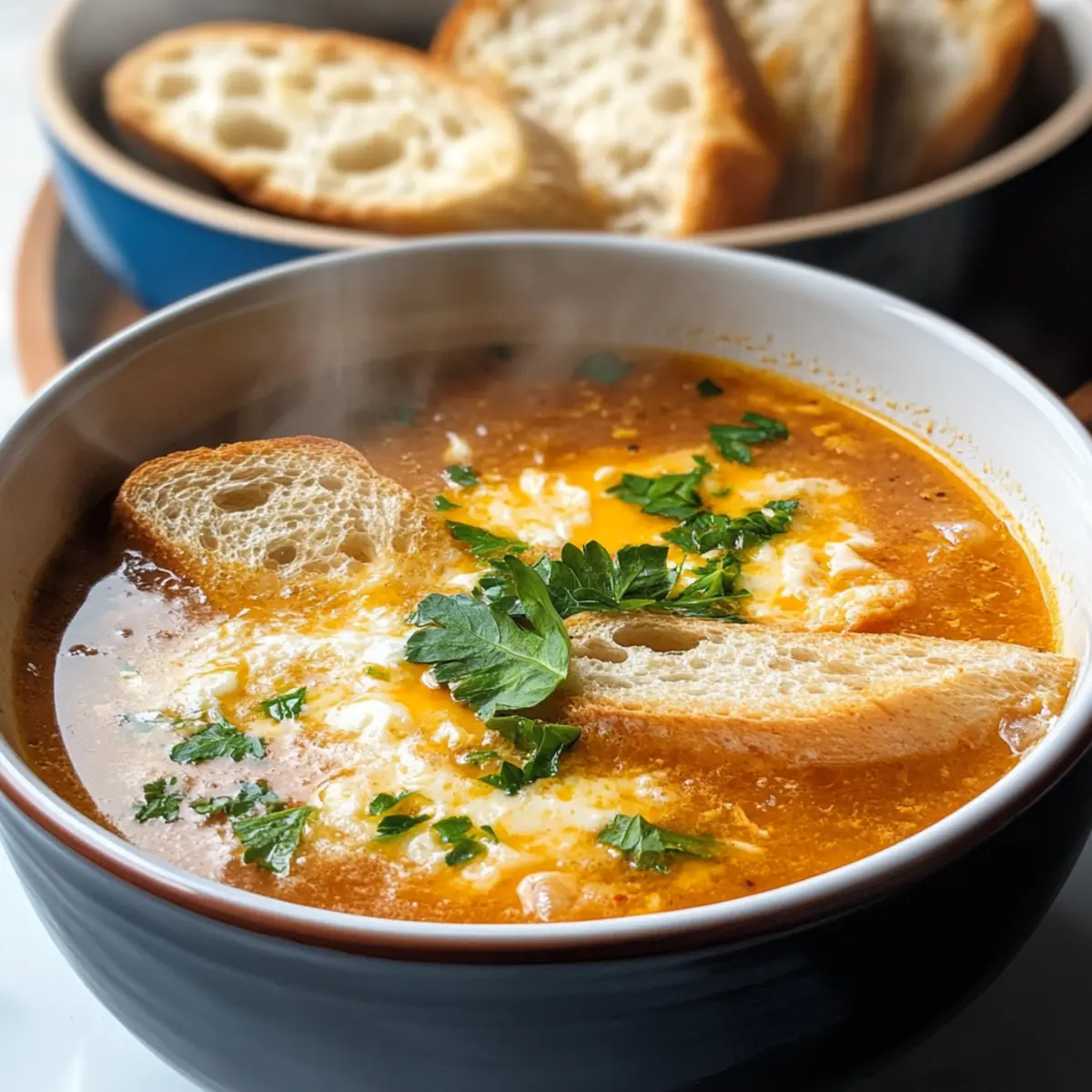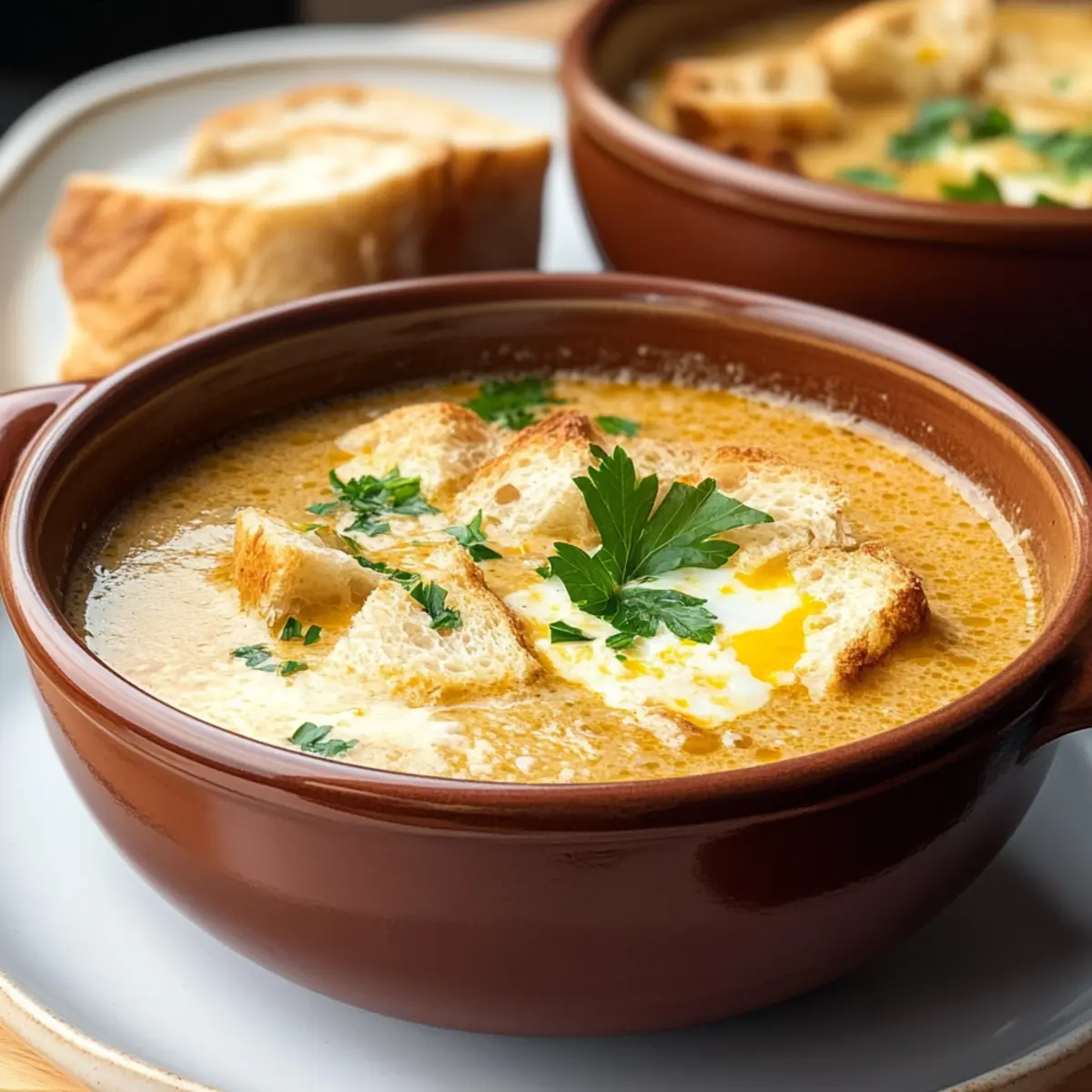 Serviere die Suppe sofort, da das Brot und die Eier beim Abkühlen ihre Konsistenz verlieren können.