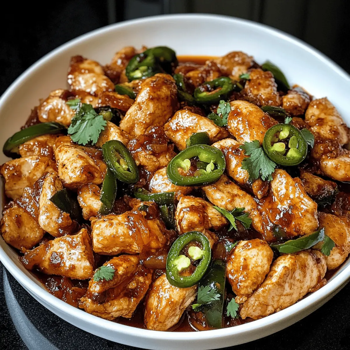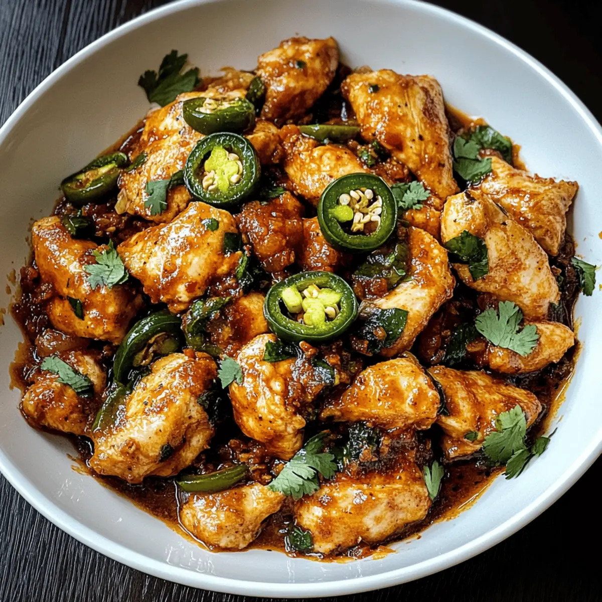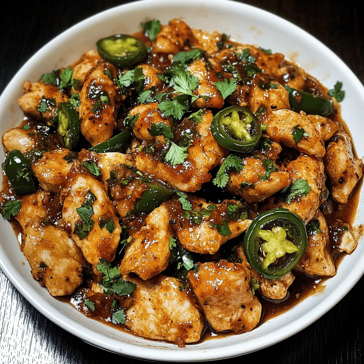 Die Vorstellung, an einem geschäftigen Abend ein schnelles und schmackhaftes Gericht zuzubereiten, fühlt sich oft wie ein kleines Wunder an. Heute teile ich mit euch mein Rezept für das Easy Spicy Jalapeño Chicken – eine moderne Variante, die Vollgeschmack und Schnelligkeit vereint. In nur 25 Minuten verwandelt ihr saftige Hähnchenbrust in ein würziges Festmahl, das perfekt für alle ist, die eine Prise Extra-Würze in ihr Leben bringen möchten. Dieses Gericht lässt sich wunderbar an verschiedene Vorlieben anpassen, sei es für eure Freunde, die sich vegetarisch ernähren, oder diejenigen, die es gern etwas schärfer mögen. Stellt euch vor, wie schnell ihr mit dieser unkomplizierten Zubereitung ein köstliches Abendessen für eure Lieben auf den Tisch zaubert. Welches Beilagen-Duo werdet ihr wählen – Reis oder vielleicht Tortillas? Warum werden Sie dieses Rezept lieben? Einfachheit: Die Zubereitung ist kinderleicht und erfordert nur wenige Schritte – perfekt für stressige Abende. Würzige Aromen: Mit frischen Jalapeños und einer Auswahl an Gewürzen entfaltet sich ein köstliches Geschmacksprofil, das jedem Gaumen Freude bereitet. Anpassungsfähigkeit: Ob mit Hähnchen oder Tofu, dieses Rezept lässt sich ganz nach euren Vorlieben variieren. Wenn ihr auf der Suche nach weiteren köstlichen Optionen seid, werfen Sie einen Blick auf unser Pistazien Schokoladenkekse Rezept oder die Pistazien Traum Kekse. Schnelligkeit: In nur 25 Minuten steht das Gericht auf dem Tisch – ideal für einen hektischen Alltag. Beliebtheit: Dieses Gericht überzeugt nicht nur euch, sondern auch eure Freunde und Familie mit einem Gericht, das alle begeistert! Einfache Würzige Jalapeño Hähnchen Zutaten Für das Hähnchen Hähnchenbrust – Boneless, skinless Hähnchenbrust sorgt für Saftigkeit und gart schnell.Substitution: Hähnchenschenkel können mehr Geschmack bringen; Tofu ist eine vegetarische Option. Für die Sauce Jalapeños – Frische Jalapeños geben eine angenehme Schärfe.Substitution: Für einen milderen Geschmack können Paprika verwendet oder die Samen entfernt werden. Knoblauch – Frischer Knoblauch sorgt für ein aromatisches Erlebnis.Substitution: Knoblauchpulver ist im Notfall möglich; 1 Teelöffel entspricht 1 Knoblauchzehe. Hühnerbrühe – Fügt der Sauce Reichhaltigkeit hinzu.Substitution: Gemüsebrühe kann verwendet werden; Wasser kann verwendet werden, hat jedoch weniger Geschmack. Für den Extra Geschmack Koriander – Frischer Koriander bringt einen zusätzlichen Geschmacksakzent.Substitution: Wer Koriander nicht mag, kann ihn weglassen oder durch Petersilie ersetzen. Gewürze (Salz, Pfeffer, Kreuzkümmel, geräucherter Paprika, Chilipulver) – Verbessern das Geschmacksprofil des Hähnchens. Diese einfachen Zutaten für das Spicy Chicken sorgen dafür, dass das Gericht schnell zubereitet werden kann und allen gut schmeckt! Schritt-für-Schritt-Anleitung für Einfaches Würziges Jalapeño Hähnchen Schritt 1: Hähnchen würzen Die Hähnchenbrust gut abtrocknen und auf beiden Seiten mit Salz, Pfeffer, Kreuzkümmel, geräuchertem Paprika und Chilipulver würzen. Stelle sicher, dass die Gewürze gleichmäßig verteilt sind. Dadurch wird das Hähnchen beim Braten geschmackvoll und aromatisch. Schritt 2: Hähnchen anbraten Olivenöl in einer großen Pfanne bei mittlerer bis hoher Hitze erhitzen. Das gewürzte Hähnchen für etwa 5-6 Minuten pro Seite braten, bis es goldbraun und gar ist. Die Innentemperatur sollte 74°C (165°F) erreichen. Sobald das Hähnchen fertig ist, aus der Pfanne nehmen und beiseitelegen. Schritt 3: Jalapeños und Knoblauch anbraten Im gleichen Bratfett die geschnittenen Jalapeños und den gehackten Knoblauch für etwa 2-3 Minuten anbraten, bis die Mischung duftet. Achte darauf, dass der Knoblauch nicht anbrennt, da er schnell bitter werden kann. Diese Aromen bilden die Grundlage für die Sauce des Einfachen Würzigen Jalapeño Hähnchens. Schritt 4: Sauce zubereiten Die Hühnerbrühe und den Limettensaft in die Pfanne gießen. Die angebratenen Stücke am Boden der Pfanne mit einem Holzlöffel lösen und die Mischung zum Köcheln bringen. Für 2-3 Minuten leise köcheln lassen, bis die Sauce leicht eingedickt ist und die Aromen sich verbunden haben. Schritt 5: Hähnchen zurückgeben Das Hähnchen in die Pfanne zurücklegen und die Sauce großzügig über das Hähnchen löffeln. Einige Minuten bei niedriger Hitze garen, damit die Aromen gut einziehen. Dies ist der Moment, in dem das Hähnchen seine letzten Würze erhält und in der köstlichen Jalapeño-Sauce schwelgt. Schritt 6: Servieren Das fertige Würzige Jalapeño Hähnchen mit frisch gehacktem Koriander garnieren und heiß servieren. Es passt hervorragend zu Reis, Tortillas oder einem frischen Salat. Dieses Gericht ist ein echter Genuss, der eure Geschmacksknospen erfreuen wird! Variationen für Würziges Hähnchen Entdecke kreative und köstliche Varianten, um dein Rezept nach deinem Geschmack zu gestalten. Vegetarisch: Tausche Hähnchen gegen Tofu aus, um eine pflanzliche Option zu genießen. Tofu nimmt die Aromen der Sauce wunderbar auf und wird herrlich saftig. Milder: Verwende anstelle von Jalapeños milde Paprika oder entferne die Samen, um die Schärfe zu reduzieren. So können auch die weniger schärfeempfindlichen Esser mit Freude genießen. Knoblaucharoma: Ersetze frischen Knoblauch durch Röstknoblauch für einen intensiveren Geschmack. Die Süße des Röstknoblauchs harmoniert perfekt mit der Schärfe der Jalapeños. Gemüse hinzufügen: Ergänze das Rezept mit Gemüse wie Zucchini oder Paprika, um mehr Textur und Nährstoffe zu integrieren. Eine bunte Mischung sorgt für ein frisches Geschmackserlebnis. Exotische Würze: Füge einen Teelöffel Garam Masala zu den Gewürzen hinzu, um dem Gericht eine unerwartete indische Note zu verleihen. Eine köstliche Entdeckung für alle, die neue Geschmäcker erkunden möchten. Süße Note: Mische einen Teelöffel Honig oder Agavendic