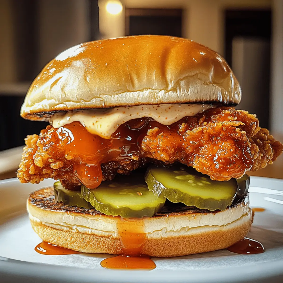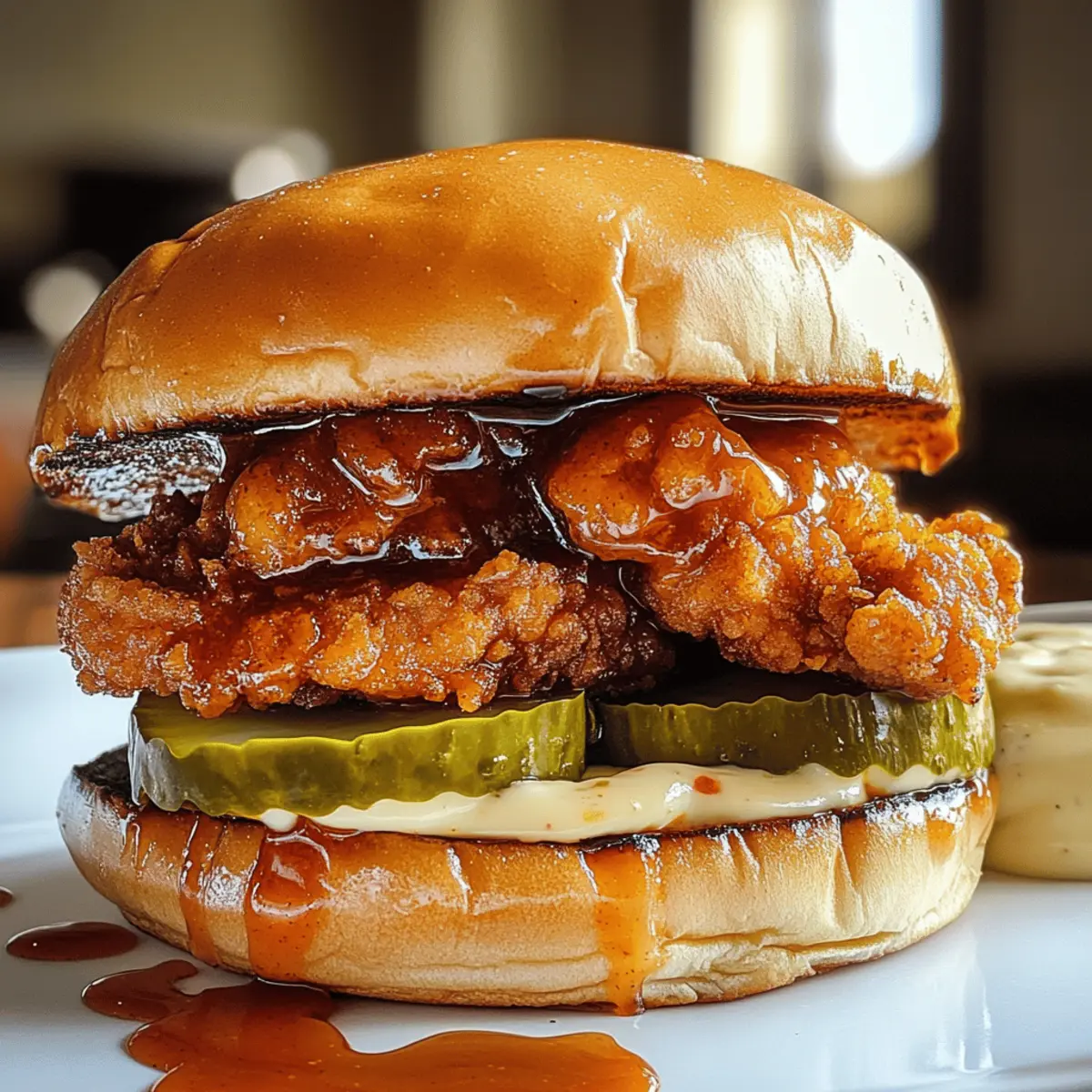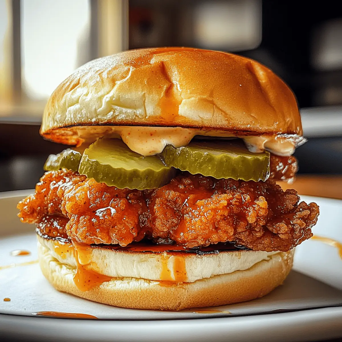 In einem kleinen Café, umgeben von köstlichen Düften, hörte ich das Lachen der Gäste, während sie ihre Lieblingsgerichte genossen. Dieses Gefühl von Gemeinschaft und Genuss möchte ich mit dir teilen, und zwar mit meinem Rezept für das Spicy Hot Honey Crispy Chicken Sandwich. Es vereint die Knusprigkeit von saftigem Hähnchen mit einer süß-scharfen Honigsauce – ein Geschmackserlebnis, das einfach unvergleichlich ist. Dieses Sandwich ist nicht nur schnell zubereitet, sondern lässt sich auch clever anpassen, sei es glutenfrei oder laktosefrei. Bereit, deinen Gaumen zu überraschen? Lass uns gemeinsam in die Welt der Aromen eintauchen! Warum wirst du dieses Rezept lieben? Einfachheit: Die Zubereitung ist unkompliziert und erfordert nur grundlegende Kochkenntnisse. Jeder kann dieses köstliche Sandwich nachmachen! Vielfalt: Du kannst das Rezept ganz nach deinen Vorlieben anpassen, z.B. glutenfrei oder laktosefrei, und auch verschiedene Brötchen oder Toppings ausprobieren. Knuspriges Erlebnis: Die Kombination aus würzigem Hähnchen und der süßen scharfen Honigsauce sorgt für einen unwiderstehlichen Geschmack, der alle begeistert. Schnell gemacht: Perfekt für ein schnelles Abendessen oder ein aufregendes Wochenende mit Freunden. Du kannst sogar das Hähnchen bereits am Vorabend zubereiten! Unvergesslicher Geschmack: Jeder Biss bietet ein geschmackliches Abenteuer, das dich immer wieder zum Nachkochen einladen wird – perfekt kombiniert mit One Pan Honig oder einem frischen Salat. Spicy Hot Honey Crispy Chicken Sandwich Zutaten Für das Hähnchen • Einfache Hähnchenbrust – Diese wird die Hauptproteinquelle in deinem Sandwich sein; wähle Bio für besseren Geschmack. • Meersalz – Hebt die natürlichen Aromen des Hähnchens; du kannst auch koscheres Salz verwenden. • Schwarzer Pfeffer – Fügt Wärme und Tiefe hinzu; passe die Menge nach deinem Geschmack an. • Geräuchertes Paprika – Sorgt für eine subtile Rauchnote und lebendige Farbe; reguläres Paprika ist ebenfalls geeignet. • Knoblauchpulver – Verleiht starken Geschmack; frischer, gehackter Knoblauch kann für mehr Frische verwendet werden. • Zwiebelpulver – Bietet ein süßes, zwiebelartiges Aroma ohne die Textur; frische Zwiebeln können auch angebraten werden. • Getrocknete Kräuter (Petersilie, Thymian, Oregano, Basilikum) – Fügt Komplexität und Aromen hinzu; frische Kräuter sind ebenfalls eine hervorragende Wahl. • Große Bio-Eier – Binden die Panade zusammen; für eine vegane Option verwende Flax Eggs. • Mandeldrink (oder pflanzliche Milch) – Befeuchtet die Panade; normale Milch kann auch verwendet werden. • Allzweckmehl – Hilft beim Panieren; ersetze es durch glutenfreies Mehl für die GF-Option. • Maisstärke – Trägt zu einer knusprigen Panade bei; Pfeilwurzstärke ist ein passender glutenfreier Ersatz. • Zerdrückte Cornflakes – Sorgt für Knusprigkeit in der Panade; glutenfreie Cornflakes sind ebenfalls geeignet. • Semmelbrösel – Fügt Textur hinzu; selbstgemachte sind am besten; nutze glutenfreie Semmelbrösel für die GF-Option. Für die Honigsauce • Ungesalzene Butter – Wird in der Hot Honey Sauce verwendet; ersetze sie durch laktosefreie Butter für die DF-Option. • Hot Honey – Fügt die süße und würzige Note hinzu; Mike’s Hot Honey ist empfehlenswert; passe die Menge nach deinem Schärfewunsch an. • Hot Sauce (optional) – Erhöht die Schärfe der Sauce; weglassen für mildere Aromen. Für das Sandwich • Burgerbrötchen (geröstet) – Die Basis des Sandwiches; brioche, kartoffel- oder hamburgerbrötchen passen gut; nutze glutenfreie Brötchen für die GF-Option. • Essiggurken (optional) – Fügt Säure und Knusprigkeit hinzu; wähle zwischen Dillpickles oder süßer Relish. • Veganer Ranch-Dressing/Sauce – Sorgt für Cremigkeit und einen geschmacklichen Kontrast zur Schärfe. Step-by-Step Instructions for Spicy Hot Honey Crispy Chicken Sandwich Step 1: Hähnchen vorbereiten Heize den Ofen auf 200 °C vor. Schneide die Hähnchenbrüste auf die Größe der Brötchen und mariniere sie mit Meersalz, schwarzem Pfeffer, geräuchertem Paprika, Knoblauch- und Zwiebelpulver für etwa 5 bis 10 Minuten. Für ein intensiveres Aroma mariniere das Hähnchen über Nacht im Kühlschrank. Step 2: Panade vorbereiten Schlage in einer Schüssel die Mandeldrink und Eier zusammen. Mische in einer zweiten Schüssel die zerdrückten Cornflakes, Semmelbrösel und die getrockneten Kräuter. In einer dritten Schüssel kombinierst du das Allzweckmehl mit der Maisstärke. Achte darauf, ausreichend Platz zu lassen, um das Hähnchen gut zu panieren. Step 3: Hähnchen panieren Nimm jedes mariniert Hähnchenstück und wende es zuerst in der Mehl-Maisstärke-Mischung, tauche es dann in die Milch-Ei-Mischung und schließlich in die Bröselmischung. Stelle sicher, dass jedes Stück gleichmäßig bedeckt ist, bevor du die panierten Hähnchenstücke auf ein mit Backpapier belegtes Blech legst. Step 4: Hähnchen backen Sprühe die Oberseite der panierten Hähnchenstücke leicht mit Öl ein, um eine goldene Farbe zu erzielen. Backe das Hähnchen für 25 bis 30 Minuten im vorgeheizten Ofen, bis es goldbraun und durchgegart ist. Der perfekte Indikator ist eine Innentemperatur von 75 °C. Step 5: Hot Honey Sauce zubereiten Schmelze in einer Pfanne die ungesalzene Butter bei mittlerer Hitze. Füge den Hot Honey und falls gewünscht etwas Hot Sauce hinzu, und rühre, bis die Mischung dickflüssig und glatt ist. Löffle die Sauce während der letzten 10 Minuten des Backvorgangs großzügig über das Hähnchen. Step 6: Sandwiches zusammenstellen Nehme ein geröstetes Burgerbrötchen und lege ein Stück crispy Hähnchen darauf. Füge nach Belieben Essiggurken und veganen Ranch-Dressing hinzu, bevor du das zweite Brötchen aufsetzt. Wiederhole diesen Vorgang, bis alle Sandwiches fertig sind. Variationen & Alternativen für Spicy Hot Honey Crispy Chicken Sandwich Lass deine
