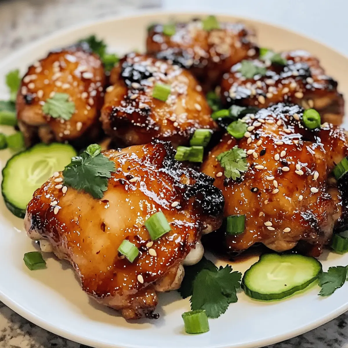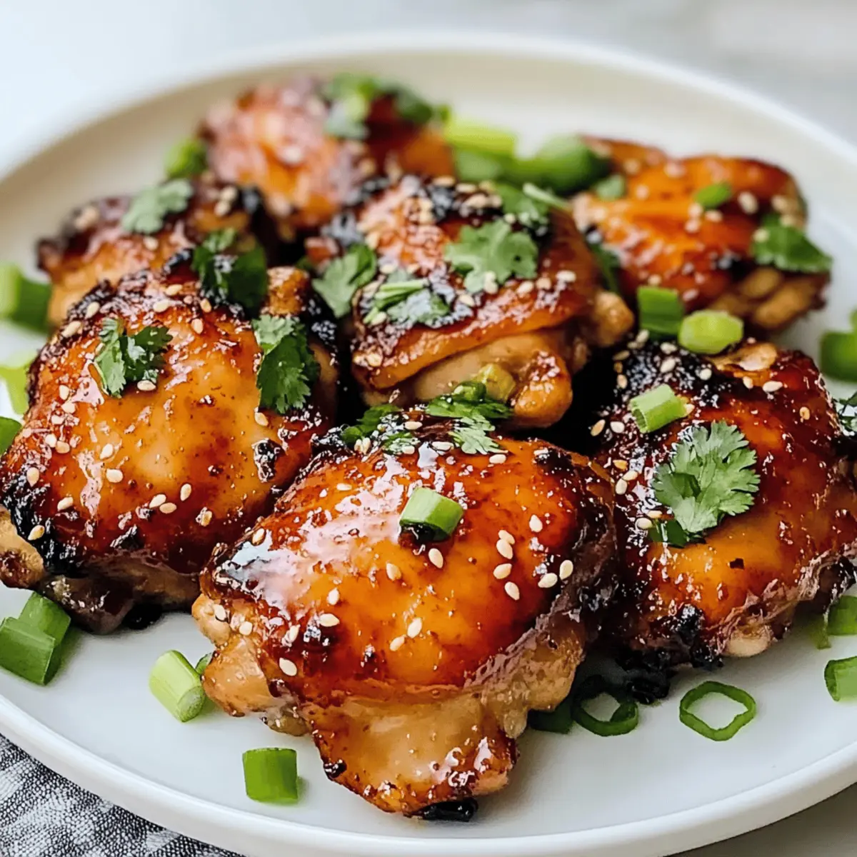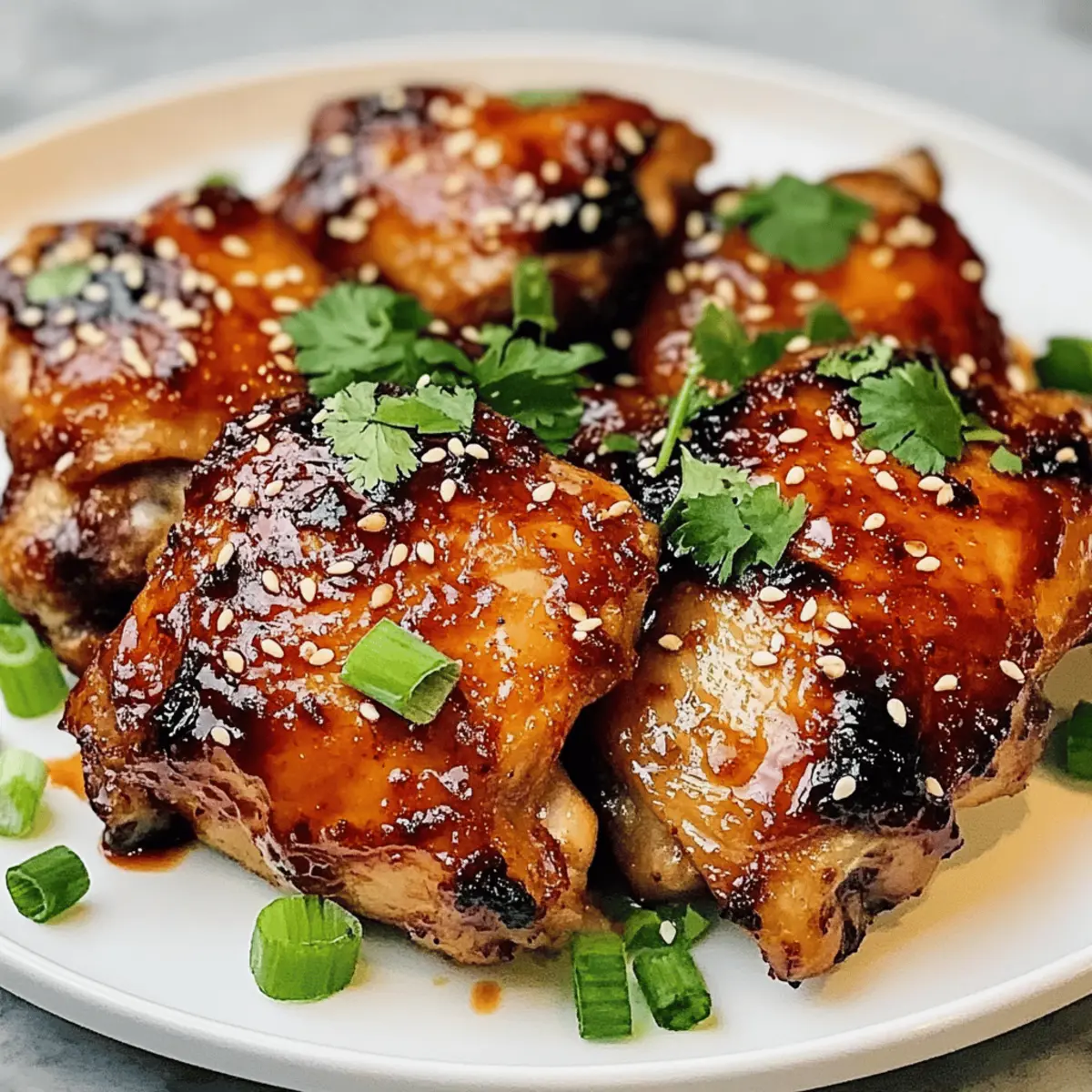 Hast du schon einmal die Magie des Air Fryers entdeckt? Heute lade ich dich ein, mit mir die köstlichen Aromen von Sweet Chili Air Fryer Chicken Thighs zu genießen. Juicy, zarte Hähnchenkeulen bekommen durch eine glitzernde, süß-würzige Marinade einen unwiderstehlichen Kick, der sowohl Gaumen als auch Augen erfreut. Dieses Rezept ist nicht nur ein schnelles Abendessen für hektische Wochentage, sondern auch ein echter Publikumsliebling, der sowohl bei Freunden als auch in der Familie Eindruck hinterlässt. Und das Beste daran? Du brauchst weniger Öl, um diese knusprigen Leckerbissen zu zaubern. Bereit, dein nächstes Gericht mit einer geschmacklichen Explosion zu bereichern? Lass uns gleich starten! Warum wirst du dieses Rezept lieben? Einfachheit: Die Zubereitung ist schnell und unkompliziert, sodass du im Handumdrehen ein köstliches Gericht auf den Tisch zaubern kannst. Vielseitigkeit: Du kannst die Marinade ganz einfach abändern oder mit verschiedenen Beilagen wie einem asiatischen Gurkensalat Chili kombinieren. Gesunder Genuss: Weniger Öl bedeutet mehr Genuss ohne schlechtes Gewissen. Hier wird knuspriger Genuss mit gesunden Zutaten kombiniert. Aromenvielfalt: Durch die Kombination aus süßer Chili-Sauce und Limettensaft erhältst du eine harmonische Mischung aus süß und würzig. Familienfreundlich: Ideal für alle Altersgruppen, wird dieses Gericht deine Familie begeistern und jeden Gaumen erfreuen! Süße Chili Air Fryer Hähnchenschenkel Zutaten Für die Marinade: Thai Süße Chili Sauce – Hauptgeschmacksträger, bringt eine perfekte Balance aus Süße und einer leichten Schärfe. Sojasauce – Fügt umami Geschmack hinzu; nutze eine natriumarme Variante, um den Salzgehalt zu reduzieren. Honig – Natürliches Süßungsmittel, das die Aromen harmonisiert; Ersetze es durch Ahornsirup für ein neues Geschmackserlebnis. Limettensaft – Fügt eine spritzige Note hinzu, die die Süße ausgleicht; frischer Limettensaft ist am besten! Sriracha (optional) – Bringt zusätzliche Schärfe; passe die Menge je nach Schärfetoleranz an. Für das Hähnchen: Hähnchenschenkel – Saftige Proteinquelle; wähle knochenhaltige, hautbesetzte für mehr Geschmack und Feuchtigkeit. Für die Würze: Olivenöl – Sorgt für Reichhaltigkeit und hilft beim Knusprigwerden. Salz & Pfeffer – Grundwürze für einen ausgewogenen Geschmack; nach Belieben mehr hinzufügen. Knoblauchpulver & Ingwerpulver – Fügen aromatische Tiefe und Wärme hinzu. Für die Garnitur: Koriander, Frühlingszwiebeln, Sesamsamen, Limettenviertel – Verleihen dem Gericht eine frische Note und verbessern die Präsentation. Bereite dich darauf vor, diese köstlichen süßen Chili Air Fryer Hähnchenschenkel zu genießen! Step-by-Step Instructions for Süße Chili Air Fryer Hähnchenschenkel Step 1: Hähnchen vorbereiten Die Hähnchenschenkel gründlich abtrocknen und mit Salz, Pfeffer, Knoblauchpulver und Ingwerpulver würzen. Achte darauf, dass die Gewürze gleichmäßig verteilt sind, um den Geschmack zu intensivieren. Lass die Hähnchenkeulen für etwa 10 Minuten ruhen, damit die Gewürze gut einziehen können, während du die Air Fryer vorbereitest. Step 2: Hähnchen anbraten Erhitze eine Pfanne bei mittlerer bis hoher Hitze und füge einen Esslöffel Olivenöl hinzu. Sobald das Öl heiß ist, die Hähnchenschenkel mit der Hautseite nach unten hineingeben und für 5-6 Minuten anbraten, bis sie goldbraun sind. Wende die Hähnchenkeulen vorsichtig und brate die andere Seite ebenfalls für weitere 5-6 Minuten, bis sie schön knusprig sind. Step 3: Glasur zubereiten In derselben Pfanne die Thai süße Chili Sauce, Sojasauce, Honig, Limettensaft und optional Sriracha hinzufügen. Rühre alles gut um und lasse die Mischung bei mittlerer Hitze für 2-3 Minuten köcheln, bis sie leicht eingedickt ist und deinen Küchenraum mit einem wunderbaren Aroma füllt. Step 4: Hähnchen glasieren Die angebratenen Hähnchenschenkel zurück in die Pfanne geben und sie gründlich mit der süßen Chili-Glasur überziehen. Lass sie weitere 2 Minuten köcheln, damit die Aromen gut in das Hähnchen eindringen. Achte darauf, dass die gesamte Oberfläche der Hähnchenschenkel gleichmäßig beschichtet ist. Step 5: Servieren Die süßen Chili Air Fryer Hähnchenschenkel auf einer schönen Servierplatte anrichten und nach Belieben mit frischem Koriander, geschnittenen Frühlingszwiebeln und Sesamsamen garnieren. Ergänze das Gericht mit Limettenvierteln und serviere es als köstliche Kombination mit Reis, Nudeln oder frischem Gemüse für ein ganzheitliches Geschmackserlebnis. Was passt gut zu süßen Chili Air Fryer Hähnchenschenkeln? Erlebe eine geschmackliche Entfaltung, die deine Mahlzeit zu einem unvergesslichen Erlebnis macht. Jasminreis: Dieser duftende Reis ist perfekt, um die süße und würzige Soße aufzusaugen. Frischer Thai Gurkensalat: Knackige Frische ergänzt die Aromen und bietet einen köstlichen Kontrast. Gebratene Brokkoli: Die erdige Note von Brokkoli harmoniert hervorragend mit der süßen Chili-Glasur. Süßkartoffelpüree: Cremige Textur und feine Süße geben dem Gericht einen extra Schub an Genuss. Nudelsalat: Ein kalter, frischer Nudelsalat bringt das perfekte Gleichgewicht zu den warmen Hähnchenschenkeln. Kokosnussmilch-Smoothie: Ein erfrischendes Getränk, das die Aromen der süßen Chili unterstreicht. Eisgekühlter grüner Tee: Dieser Tee sorgt für eine erfrischende und belebende Ergänzung zu deinem Menü. Fruchtige Nachspeise: Obstsalat stellt den perfekten süßen Abschluss zu einem herzhaften Hauptgericht dar. Meal Prep für Süße Chili Air Fryer Hähnchenschenkel Süße Chili Air Fryer Hähnchenschenkel sind perfekt für die Meal Prep, um dir in der hektischen Woche Zeit zu sparen! Du kannst die Hähnchenschenkel bis zu 24 Stunden im Voraus marinieren, indem du sie mit der Mischung aus Thai süßer Chili Sauce, Sojasauce, Honig und Limettensaft würzt und abdeckst. Das sorgt dafür, dass die Aromen ti