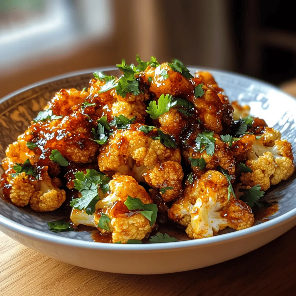 In der Welt der Gemüsegerichte gibt es einen geheimen Superstar, der häufig übersehen wird: Blumenkohl! Meine neueste Entdeckung ist der Sweet and Spicy Baked Cauliflower, ein Gericht, das diesen unscheinbaren Gemüsehelden in ein geschmackvolles Meisterwerk verwandelt. Diese einfache und schnelle Rezeptur bringt nicht nur eine perfekte Balance aus süßer Honignote und feuriger Sriracha, sondern ist auch eine genussvolle Option für alle, die pflanzliche Küche lieben und ihre Gemüseaufnahme steigern möchten. Egal, ob als Beilage, Snack oder Hauptgericht, dieses Gericht wird sowohl Veganer als auch alle anderen Geschmäcker begeistern. Neugierig, wie du diesen Blumenkohl zum Strahlen bringst? Lass uns gemeinsam in die Zubereitung eintauchen! Warum solltest du Blumenkohl lieben? Einzigartiger Genuss: Dieses Gericht verwandelt einfachen Blumenkohl in ein geschmackliches Erlebnis, das du lieben wirst. Vielseitig anpassbar: Du kannst die Süße und Schärfe nach deinem Geschmack variieren, sodass jeder Esser glücklich wird. Gesunde Wahl: Mit einem low-calorie und glutenfreien Profil ist es ideal für bewusste Genießer. Einfach und schnell: Die Schritte sind unkompliziert, perfekt für eilige Kochabende. Beeindruckt Gäste: Serviere es als Beilage oder Snack – es wird sicher zum Gesprächsthema auf deinem nächsten Dinner. Für weitere kreative Rezepte, schau dir auch Cremige Scharfe Knoblauchbutter an, um deinem Menü zusätzliche Würze zu verleihen! Zutaten für den Süß-scharfen gebackenen Blumenkohl Für den Blumenkohl • Blumenkohl – etwa 2 Pfund, in Röschen geschnitten, bildet die Hauptbasis dieses Gerichts. • Olivenöl – sorgt für Reichhaltigkeit und hilft beim Rösten; kann durch Avocadoöl ersetzt werden. Für die Marinade • Honig – verleiht eine süße Note; kann für vegane Ernährung durch Agavensirup ersetzt werden. • Sriracha-Sauce – sorgt für Schärfe und Geschmack; die Menge je nach gewünschtem Schärfegrad anpassen. • Sojasauce – hebt den umami Geschmack hervor; benutze Tamari für eine glutenfreie Option. • Knoblauch – bietet aromatische Tiefe; frischen, gehackten Knoblauch für den besten Geschmack verwenden. • Geräuchertes Paprikapulver – fügt eine subtile Rauchnote hinzu; kann durch normales Paprikapulver ersetzt werden. • Salz und schwarzer Pfeffer – essentielle Gewürze zur Ausbalancierung der Aromen. Für die Garnitur • Frischer Koriander oder Frühlingszwiebeln – optional, für zusätzliche Frische und Farbe. Die Kombination dieser Zutaten macht den Süß-scharfen gebackenen Blumenkohl zu einer köstlichen veganen Option für jedes Gericht! Schritt-für-Schritt-Anleitung für den Süß-scharfen gebackenen Blumenkohl Schritt 1: Ofen vorheizen Heize den Ofen auf 220°C (425°F) vor und lege ein Backblech mit Backpapier aus. Diese Vorbereitung sorgt dafür, dass der Süß-scharfe gebackene Blumenkohl gleichmäßig röstet und nicht kleben bleibt. Während der Ofen aufheizt, kannst du die frischen Aromen der Marinade vorbereiten, die den Blumenkohl verzaubern wird. Schritt 2: Blumenkohl vorbereiten Wasche den Blumenkohl gründlich, entferne die Blätter sowie den Stiel und schneide ihn in gleichmäßige Röschen. Achte darauf, dass die Stücke nicht zu groß sind, damit sie gleichmäßig garen. Diese Vorbereitungen sind entscheidend, um die perfekte Konsistenz und den köstlichen Geschmack beim Rösten zu erreichen. Schritt 3: Marinade zubereiten Vermische in einer Schüssel das Olivenöl, den Honig, die Sriracha-Sauce, die Sojasauce, den gehackten Knoblauch, das geräucherte Paprikapulver, das Salz und den schwarzen Pfeffer. Rühre die Mischung gut um, bis sie eine homogene Konsistenz erreicht. Diese Marinade wird dem Blumenkohl den besonderen süß-scharfen Geschmack verleihen. Schritt 4: Blumenkohl marinieren Gib die vorbereiteten Blumenkohlröschen in die Schüssel mit der Marinade und vermische sie gründlich, bis sie gleichmäßig mit der Sauce überzogen sind. Achte darauf, dass keine Röschen unberührt bleiben, um den besten Geschmack zu erzielen. Der Blumenkohl sollte jetzt bereit sein, im Ofen zu glänzen. Schritt 5: Auf das Backblech legen Verteile die marinierten Blumenkohlröschen gleichmäßig auf dem vorbereiteten Backblech in einer einzigen Schicht. Achte darauf, dass sie genügend Platz haben, damit sie gleichmäßig rösten und knusprig werden. Dieses Schritt sorgt nicht nur für gleichmäßiges Garen, sondern auch für eine schöne Röstung, die den süß-scharfen gebackenen Blumenkohl perfekt macht. Schritt 6: Rösten im Ofen Schiebe das Backblech in den vorgeheizten Ofen und röste den Blumenkohl für 20-25 Minuten. Drehe die Röschen während der Hälfte der Zeit um, damit sie von allen Seiten schön goldbraun und karamellisiert sind. Achte darauf, dass die Röschen zart und knusprig sind, bevor du sie aus dem Ofen nimmst. Schritt 7: Garnieren und Servieren Lass den gebackenen Blumenkohl kurz abkühlen und garniere ihn dann nach Belieben mit frischem Koriander oder gehackten Frühlingszwiebeln. Diese frischen Kräuter verleihen dem Gericht nicht nur Farbe, sondern auch eine aromatische Frische. Der Süß-scharfe gebackene Blumenkohl ist jetzt bereit, serviert zu werden und wird deine Gäste mit Sicherheit begeistern. Lagerungstipps für den süß-scharfen gebackenen Blumenkohl Raumtemperatur: Vermeide es, den gebackenen Blumenkohl bei Raumtemperatur stehen zu lassen; lagere ihn stattdessen im Kühlschrank. Kühlschrank: Bewahre die Reste in einem luftdichten Behälter im Kühlschrank auf; so bleibt der süß-scharfe gebackene Blumenkohl bis zu 3 Tage frisch. Einfrieren: Du kannst die Reste einfrieren, indem du sie in einem geeigneten Behälter für die Gefriertruhe aufbewahrst; sie bleiben bis zu 2 Monate haltbar. Wiederaufwärmen: Zum Wiederaufwärmen den Blumenkohl bei 180°C (350°F) im Ofen aufbacken, bis er warm und knusprig ist, oder in der Mikrowelle erhitzen. Meal Prep für den Süß-schar