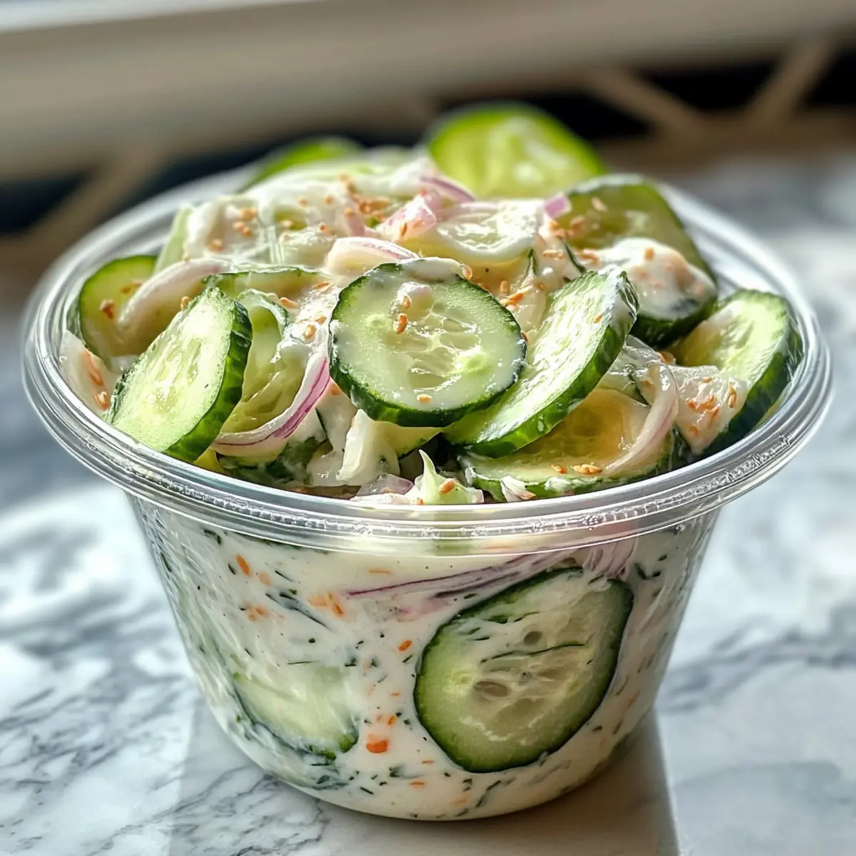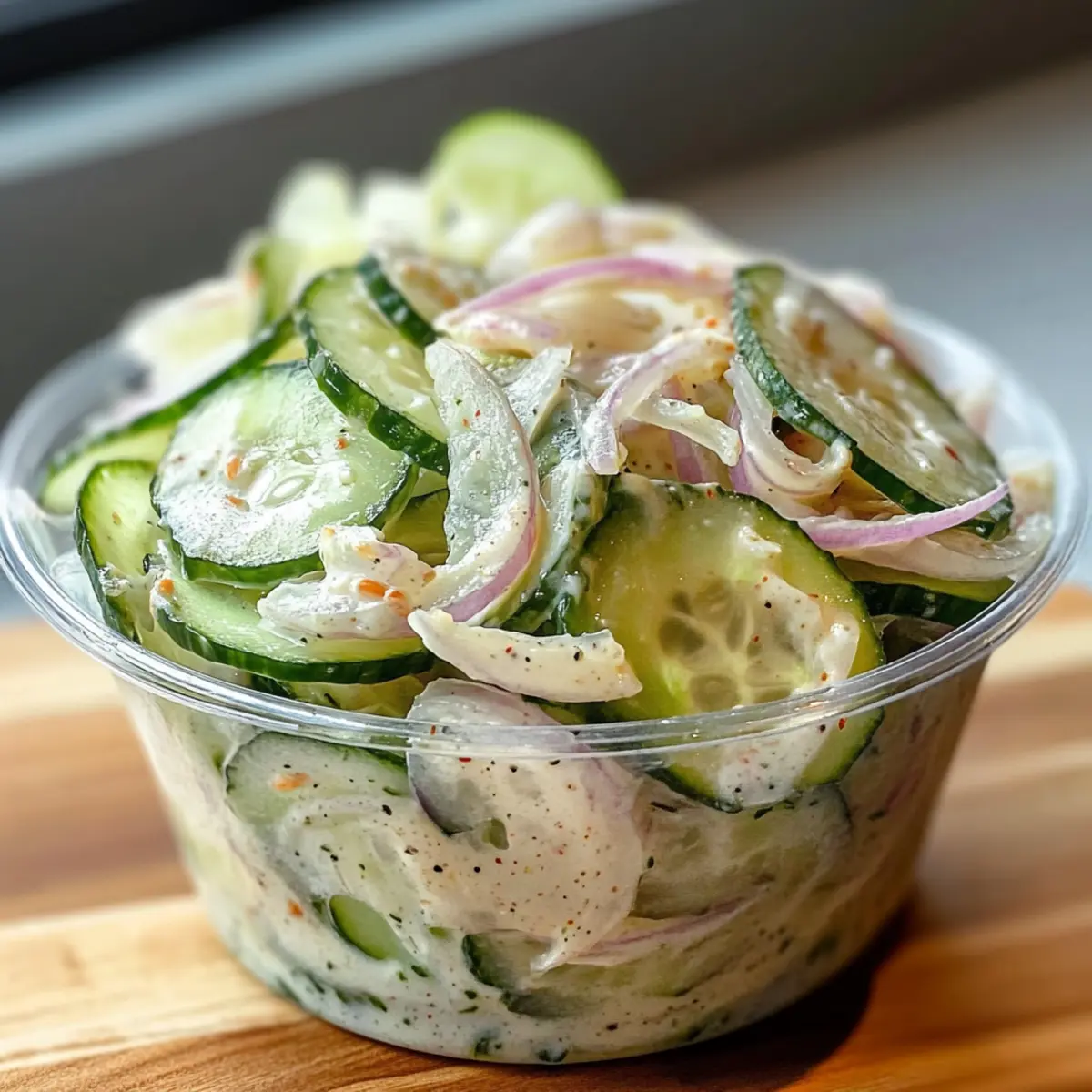 Eines sonntäglichen Nachmittags, als der Duft von frisch geschnittenem Gemüse in der Luft lag, hatte ich die Idee, etwas Leckeres und zugleich Erfrischendes zu zaubern. Mein Sushi Gurkensalat ist genau das – eine wahre Geschmacksexplosion, die auch ohne die aufwendige Rollerei auskommt. Mit knackigen, dünn geschnittenen Gurken und Zwiebeln in einer cremigen, würzigen Soße berührt er alle Sinne und eignet sich perfekt als schneller Lunch oder als köstliche Beilage. Was ich an diesem Rezept besonders liebe, ist, dass es nicht nur blitzschnell zubereitet ist, sondern auch unendlich viele Variationen zulässt – von vegan bis herzhaft, ganz nach deinem Geschmack. Bist du bereit, mit mir in die Welt der Aromen einzutauchen? Warum wirst du diesen Gurkensalat lieben? Frische Aromen: Der Sushi Gurkensalat bringt eine leichte, erfrischende Note in deine Küche, die ideal für die heißen Tage ist. Einfachheit: Mit nur wenigen Zutaten und einer unkomplizierten Zubereitung eignet sich dieses Rezept perfekt für Kochanfänger und Schnellkocher. Vielfältig: Ob du ihn mit Avocado, Meeresfrüchten oder veganen Alternativen verfeinerst, du hast die volle Kontrolle über die Zutaten. Gesund: Glutenfrei und wenig kohlenhydratreich – dieser Salat lässt sich problemlos in jede gesunde Ernährung integrieren. Köstliche Komplementäre: Er passt hervorragend als Beilage zu gegrilltem Hühnchen oder Lachs, vielleicht mit einem Crunchy Gnocchi Salat, um einen vollendeten Genuss zu erleben. Sushi Gurkensalat Zutaten Hinweis: Bereite dich auf eine Geschmacksexplosion mit diesen frischen Zutaten vor! Für den Salat: Englische Gurke – bietet eine knackige, erfrischende Basis. Hinweis: Du kannst sie durch persische Gurken ersetzen, um eine ähnliche Textur zu erhalten. Zwiebel – fügt einen milden Geschmack und Knackigkeit hinzu. Hinweis: Rote Zwiebel eignet sich für eine süßere und farbenfrohere Option. Für das Dressing: Frischkäse – sorgt für Cremigkeit und Reichhaltigkeit. Hinweis: Veganer können ihn durch veganen Frischkäse oder extra Mayonnaise ersetzen. Mayonnaise – verstärkt die Cremigkeit und bindet den Salat. Hinweis: Für eine leichtere Option verwende griechischen Joghurt. Sojasauce – fügt Umami und Salzigkeit hinzu. Hinweis: Für glutenfreie Varianten verwende glutenfreies Tamari. Reisessig – bringt Säure zur Geschmacksbalance. Hinweis: Apfelessig ist ein guter Ersatz, wenn du keinen Reisessig hast. Sesamöl – fügt Tiefe und Nussigkeit zum Dressing hinzu. Hinweis: Optional, verbessert aber das gesamte Geschmacksprofil. Optionale Mix-Ins: Imitationskrabben, Garnelen, geräucherter Lachs, Avocado – für zusätzliche Fülle und geschmackliche Variationen. Hinweis: Wähle je nach diätetischen Vorlieben. Mit diesen Zutaten bist du bereit, einen köstlichen Sushi Gurkensalat zuzubereiten, der nicht nur lecker, sondern auch anpassbar ist! Schritt-für-Schritt-Anleitung für Sushi Gurkensalat Step 1: Gurken und Zwiebeln vorbereiten Schneide die englische Gurke und die Zwiebel in dünne, gleichmäßige Scheiben. Lege die Gurkenscheiben in ein Sieb und bestreue sie leicht mit Salz, um überschüssige Feuchtigkeit zu entziehen. Lass sie etwa 10 Minuten stehen, bis sie etwas weicher sind. Anschließend tupfe die Gurken mit einem Küchentuch trocken, um den Salat knusprig zu halten. Step 2: Dressing zubereiten In einer großen Rührschüssel vermenge den Frischkäse und die Mayonnaise. Benutze einen Handmixer oder einen Schneebesen, um die Mischung gut zu vermengen, bis sie glatt und cremig ist. Dies sollte etwa 2-3 Minuten dauern. Achte darauf, dass keine Klumpen zurückbleiben, um ein gleichmäßiges Dressing für deinen Sushi Gurkensalat zu erhalten. Step 3: weitere Zutaten hinzufügen Füge nun nach und nach die Sojasauce, den Reisessig und das Sesamöl zur Dressing-Mischung hinzu. Rühre mit dem Schneebesen weiter, bis alle Zutaten vollständig emulgiert sind. Die Mischung sollte eine gleichmäßige Konsistenz haben und angenehm aromatisch riechen, während sich die Aromen entfalten. Step 4: Gurken und Zwiebeln marinieren Gib die vorbereiteten Gurken- und Zwiebelscheiben in die Schüssel mit der Hälfte des Dressings. Mische alles vorsichtig, sodass die Gurken und Zwiebeln gleichmäßig mit dem Dressing überzogen sind. Lass den Salat für etwa 5 Minuten marinieren, damit er die Aromen aufnehmen kann. Step 5: Restliches Dressing und Mix-Ins hinzufügen Füge das restliche Dressing sowie deine gewünschten Optionalen Mix-Ins, wie Imitationskrabben oder Avocado, hinzu. Vorsichtig alles vermengen, sodass die Zutaten zusammengefügt, aber nicht zerdrückt werden. Achte darauf, dass der Sushi Gurkensalat eine schöne Textur behält und die verschiedenen Aromen zur Geltung kommen. Step 6: Servieren oder kühlen Serviere den Sushi Gurkensalat sofort in kleinen Schalen, um die Frische zu genießen. Alternativ kannst du ihn in den Kühlschrank stellen und ihn bis zur Servierzeit kaltstellen. Für das perfekte Finish garnierst du deinen Salat mit gerösteten Sesamsamen oder knusprigen Zwiebelstreifen. Aufbewahrungstipps für Sushi Gurkensalat Zimmertemperatur: Lass den Sushi Gurkensalat nicht länger als 2 Stunden bei Raumtemperatur stehen, um die Frische zu erhalten und das Wachstum von Bakterien zu verhindern. Kühlschrank: Bewahre die Reste in einem luftdichten Behälter im Kühlschrank auf, wo sie bis zu 24 Stunden frisch bleiben können. Trenne sensitive Zutaten wie Avocado, um ihre Frische zu bewahren. Tiefkühler: Es wird nicht empfohlen, den Sushi Gurkensalat einzufrieren, da die Textur der Gurken nach dem Auftauen matschig werden könnte. Wiedererwärmen: Der Salat sollte frisch serviert werden; falls du ihn kühlst, genieße ihn direkt nach dem Herausnehmen aus dem Kühlschrank, ohne ihn aufzuwärmen. Vorbereitung für deinen Sushi Gurkensalat Du willst es einfach und zeitsparend haben? Der Sushi Gurkensalat eignet sich hervorragend zur Vorbereitung! Du kannst die Gurke
