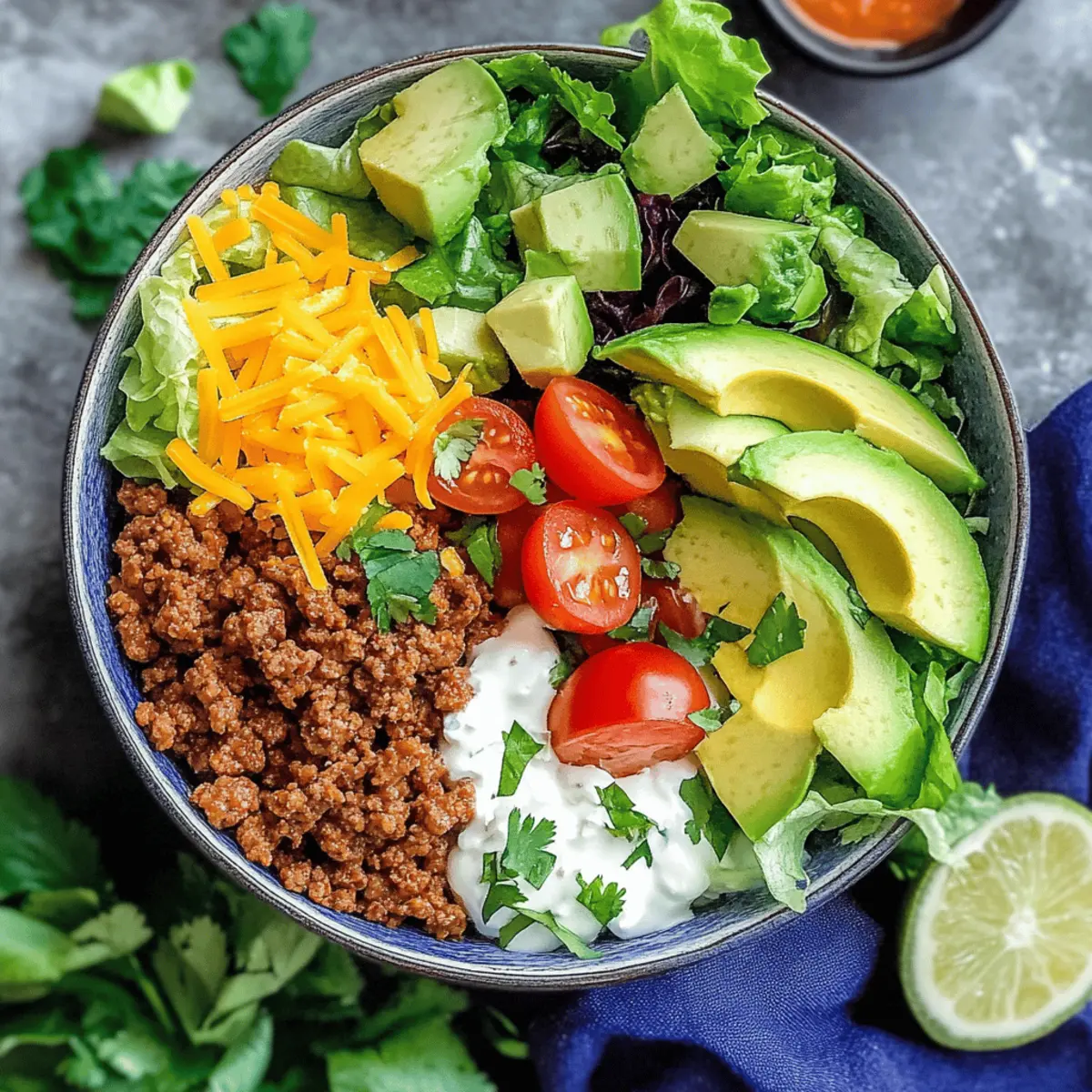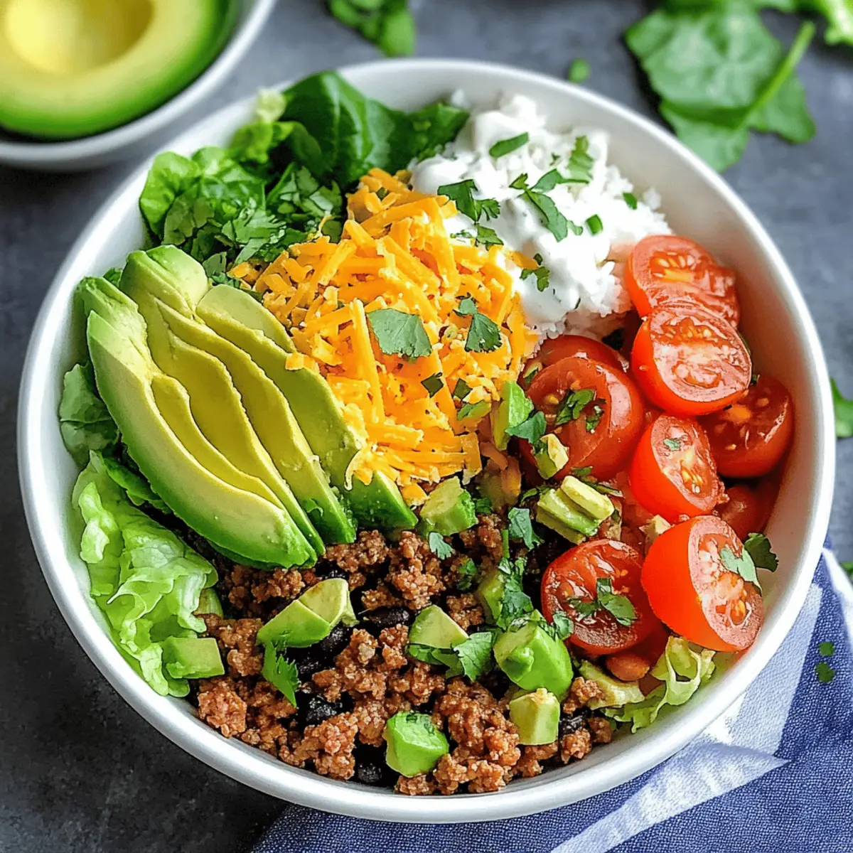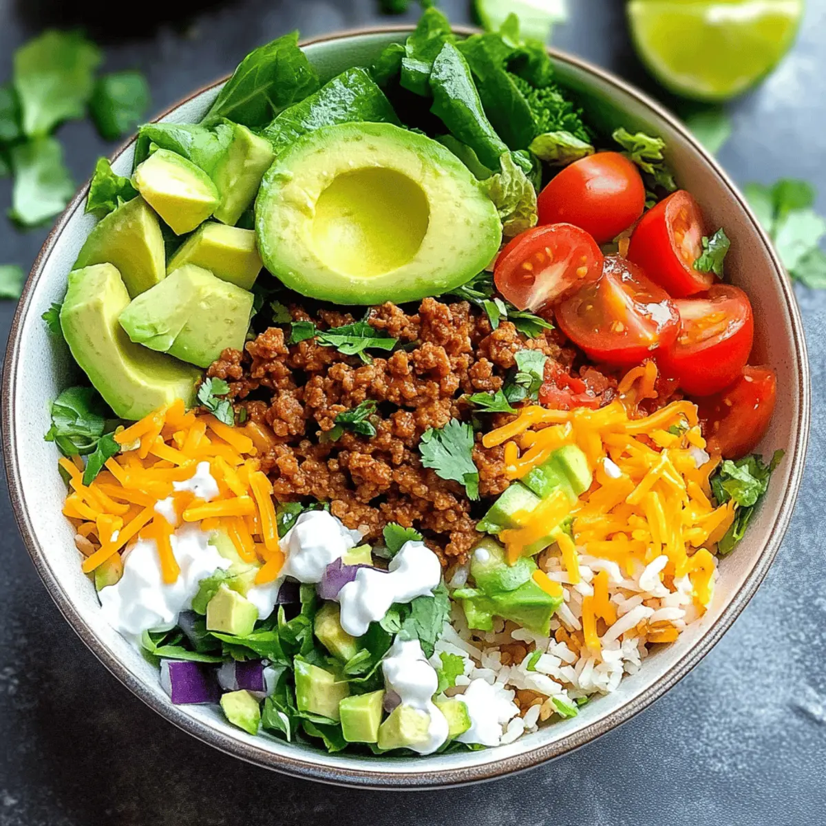 Vorbereitung: Bereite alle Zutaten im Voraus vor, um schnelle Mahlzeiten zu ermöglichen; die Taco Bowls bieten so eine gesunde, anpassbare Option für jede Woche.