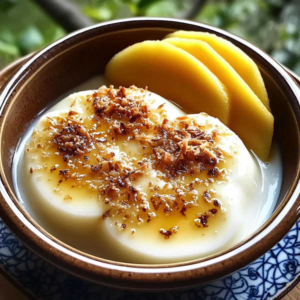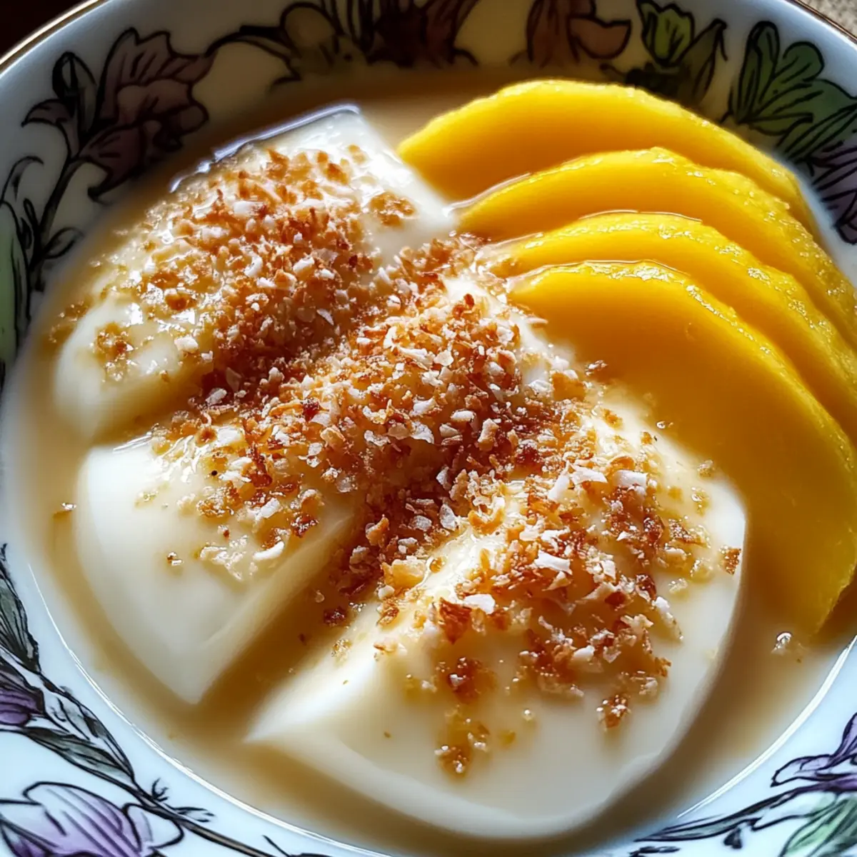 Als ich neulich in einem kleinen thailändischen Café saß, wurde mir der köstlichste Duft von frisch gebackenem Thai-Kokosnusspudding um die Nase geweht. Diese unwiderstehliche Leckerei ist nicht nur ein Fest für die Sinne, sondern auch eine einfache Möglichkeit, den Geschmack von Südostasien in Ihre eigenen vier Wände zu holen. Die cremige Textur, die durch reichhaltige Kokosmilch und Palmzucker entsteht, macht dieses Dessert zu einem absoluten Highlight und ist zusätzlich glutenfrei! Wenn Sie sich kreativ austoben möchten, können Sie mit Optionen wie duftenden Pandanblättern oder herzhaftem Klebreis neue Akzente setzen. Egal, ob warm serviert oder gut gekühlt, diese köstliche Nachspeise wird Ihre Gäste verzaubern und zum neuen Liebling in Ihrer Küche werden. Wer kann da widerstehen? Warum ist dieser Pudding so besonders? Einfachheit: Die Zubereitung des Thai-Kokosnusspuddings ist kinderleicht und erfordert nur grundlegende Kochfähigkeiten. Tropischer Geschmack: Dank der Kokosmilch und des Palmzuckers erleben Sie ein authentisches Stück Thailand in jedem Bissen. Vielseitigkeit: Sie können mit verschiedenen Zutaten wie Pandanblättern oder Klebreis experimentieren, um Ihr Dessert zu individualisieren. Geselligkeit: Ob bei einer Feier oder einem gemütlichen Abendessen – dieser Pudding wird sicherlich für Gesprächsstoff sorgen! Guilt-Free Genuss: Mit weniger als 150 Kalorien pro Portion ist es eine köstliche und zugleich gesunde Wahl. Probieren Sie auch, ihn mit frischen Früchten oder Thai-Eistee zu kombinieren, um das Geschmackserlebnis zu vervollständigen! Thai-Kokosnusspudding Zutaten Für den Pudding Eier – Stellen die Struktur sicher und sorgen dafür, dass der Pudding perfekt fest wird. Optional: Flachseier für eine vegane Variante verwenden. Kokosmilch – Das Hauptzutat, die eine reichhaltige, tropische Cremigkeit bietet; ersetzen Sie sie durch Vollmilch für eine leichtere Option. Palmzucker – Ein natürlicher Süßstoff mit karamellartigem Geschmack; brauner Zucker kann als Ersatz verwendet werden. Salz – Verstärkt die Süße und balanciert die Aromen; dies nicht weglassen! Vanilleextrakt – Fügt Wärme und Tiefe zum Geschmack hinzu; verwenden Sie reinen Extrakt für die besten Ergebnisse. Pandanblätter (optional) – Verleihen dem Pudding ein einzigartiges, kräuterliches Aroma, das den Kokosgeschmack ergänzt. Klebreis (optional) – Das Schichten dieses Reises sorgt für eine zähe Textur, die das Dessert herzhaft macht. Schritt-für-Schritt-Anleitung für Thai-Kokosnusspudding Schritt 1: Ofen vorheizen Heizen Sie den Ofen auf 175 °C (350 °F) vor. Wenn Sie Pandanblätter verwenden, legen Sie diese am Boden einer Auflaufform aus, um dem Pudding einen zusätzlichen aromatischen Kick zu verleihen. Stellen Sie sicher, dass Ihre Backform gut eingefettet ist, damit der Pudding später leicht herausgenommen werden kann. Schritt 2: Eier vorbereiten Schlagen Sie die Eier in einer Rührschüssel sanft auf, bis sie glatt sind. Achten Sie darauf, zu viel Luft einzuschlagen, da dies die Textur Ihres Thai-Kokosnusspuddings beeinträchtigen könnte. Diese Eier bilden die Grundlage für die Struktur des Puddings und helfen ihm, perfekt fest zu werden. Schritt 3: Zutaten kombinieren Mischen Sie in der Schüssel mit den Eiern die Kokosmilch, den Palmzucker, das Salz und den Vanilleextrakt. Rühren Sie die Mischung gut um, bis sich der Zucker vollständig aufgelöst hat. Der süße, tropische Duft wird die Vorfreude auf Ihren köstlichen Pudding steigern! Schritt 4: Mischung sieben Gießen Sie die gesamte Mischung durch ein feines Sieb in eine separate Schüssel. Dieses Sieben sorgt dafür, dass Ihr Thai-Kokosnusspudding eine wunderbar glatte und cremige Textur erhält. Achten Sie darauf, eventuelle Klümpchen zu entfernen, die sich gebildet haben könnten. Schritt 5: Klebreis schichten Falls gewünscht, können Sie jetzt eingeweichten Klebreis gleichmäßig am Boden Ihrer Backform verteilen. Durch das Schichten des Klebreises erhält Ihr Pudding eine herzhaftere Textur und macht das Dessert noch aufregender. Achten Sie darauf, den Reis gleichmäßig zu verteilen. Schritt 6: Wasserbad vorbereiten Erstellen Sie ein Wasserbad, indem Sie die Backform in eine größere, mit heißem Wasser gefüllte Auflaufform stellen. Diese Technik sorgt dafür, dass der Pudding gleichmäßig und sanft gegart wird, wodurch Risse vermieden werden. Achten Sie darauf, dass das Wasser die Puddingform mindestens zur Hälfte umgibt. Schritt 7: Pudding backen Backen Sie den Thai-Kokosnusspudding für etwa 45 Minuten bis eine Stunde. Der Pudding ist fertig, wenn die Ränder fest sind, das Innere jedoch leicht wackelt. Diese Konsistenz ist entscheidend für die cremige Textur, die Sie erreichen möchten. Schritt 8: Abkühlen und kühlen Lassen Sie den Pudding zunächst bei Raumtemperatur abkühlen. Anschließend stellen Sie ihn in den Kühlschrank, um ihn vor dem Servieren gut durchzukühlen. Diese Kühlzeit hilft, die Aromen zu intensivieren und lässt die Textur fester werden, was den Genuss Ihres Thai-Kokosnusspuddings perfektioniert. Vorbereitung für den Thai-Kokosnusspudding Der Thai-Kokosnusspudding eignet sich hervorragend für die Zubereitung im Voraus, perfekt für vielbeschäftigte Köche! Sie können die gesamte Mischung bis zu 24 Stunden im Voraus vorbereiten und im Kühlschrank aufbewahren, sodass die Aromen sich entfalten können. Eine wichtige Vorbereitung ist das Sieben der Mischung, um eine samtige Textur zu garantieren. Wenn Sie Klebreis hinzufügen möchten, können Sie diesen auch bis zu 3 Tage vorher einweichen, um die Zubereitung zu erleichtern. Beim Backen einfach das Wasserbad in Ihre Form gießen und für ca. 45 Minuten bei 175 °C im Ofen garen, bis die Ränder fest sind. Lassen Sie den Pudding nach dem Backen zunächst abkühlen und stellen Sie ihn dann in den Kühlschrank, um ihn optimal durchzukühlen, damit er genau so köstlich bleibt wie frisch zubereit