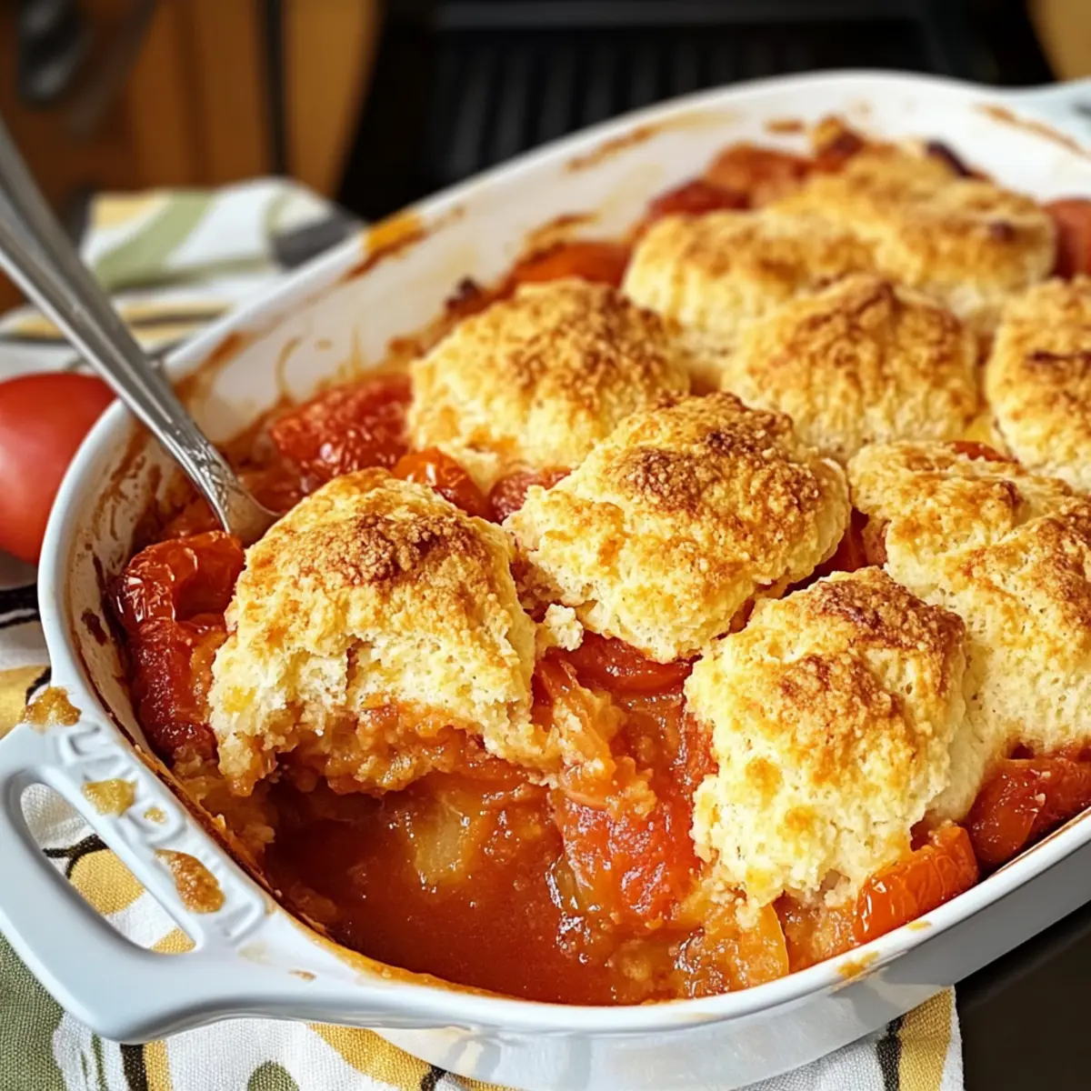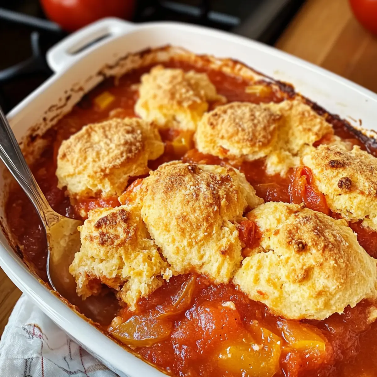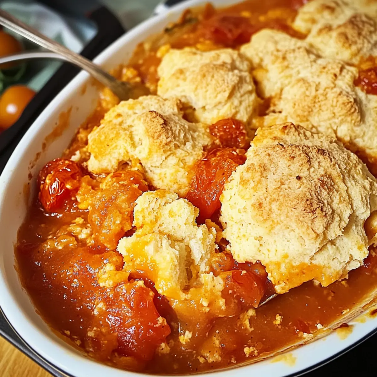 Der Duft von frisch gebackenem Brot in der Luft, während ich an meinem Küchentisch stehe, erinnert mich an Sommerspaziergänge auf dem Bauernmarkt. In diesen bunten Läden finde ich die saftigsten, reifesten Tomaten, die nur darauf warten, in ein kreatives Gericht verwandelt zu werden. Heute möchte ich mit dir mein Rezept für einen köstlichen Tomaten Cobbler mit Pimento Käse Keksen teilen. Dieses Gericht ist nicht nur ein wahres Highlight der Südstaatenküche, sondern auch eine perfekte Mischung aus herzhaftem Komfort und einfacher Zubereitung. Die Kombination aus der herzhaften Tomatensauce und den nach Pimento Käse schmeckenden Keksen ist ein echter Publikumsmagnet – ideal, um Familie und Freunde zu begeistern. Ob zum Sommerfest oder einfach zum Genießen zuhause, dieser Cobbler wird dich und deine Gäste begeistern! Bist du bereit, deine Küche in einen Ort des Genusses zu verwandeln? Warum wird dir dieses Rezept gefallen? Einfachheit: Die Zubereitung ist kinderleicht und erfordert keine speziellen Fähigkeiten in der Küche. Jeder kann diesen Tomaten Cobbler zaubern! Herzhafter Genuss: Die perfekte Kombination aus saftigen Tomaten und pimento Käse Keksen sorgt für ein geschmackliches Erlebnis, das alle begeistert. Vielseitigkeit: Du kannst Zutaten nach deinem Geschmack anpassen, sei es die Wahl der Käsesorte oder die Art der Tomaten. Zeitersparnis: In kürzester Zeit zauberst du ein köstliches Essen, das ideal für spontane Gäste ist. Klassiker der Südstaatenküche: Dieses Gericht verkörpert die Traditionen der Südstaatenküche und bringt den Geschmack des Südens direkt in deine Küche. Tauche ein in die Aromen von zuhause und entdecke dabei auch unsere anderen köstlichen Rezepte. Tomaten Cobbler Zutaten • Hier ist, was du brauchst, um diesen köstlichen Tomaten Cobbler mit Pimento Käse Keksen zuzubereiten. Für die Sauce Ungesalzene Butter – sorgt für Reichtum und Feuchtigkeit in der Tomatensauce. Kann durch Margarine oder Kokosöl ersetzt werden. Süße Zwiebel – gibt eine angenehme Süße und Tiefe. Gelbe oder weiße Zwiebeln sind ebenfalls ideal. Knoblauch – intensiviert das Aroma; wird beim Anbraten aromatisch. Frisch gehackter Knoblauch ist am besten; in Notfällen kann auch Knoblauchpulver verwendet werden. Reife Tomaten – die Hauptdarstellerin des Gerichts, sorgen für eine fruchtige Basis. Frische Tomaten sind optimal; im Notfall können auch Dosen-Tomaten verwendet werden. Salz und schwarzer Pfeffer – unverzichtbare Gewürze, die alle Aromen hervorheben. Nach Geschmack anpassen. Weißweinessig – bringt Säure ins Spiel und balanciert das Gericht. Apfelessig kann als Ersatz verwendet werden. Maisstärke – verdickt die Tomatensauce. Bei Verwendung von Dosentomaten ist dies nicht erforderlich, nach Bedarf anpassen. Für die Kekse Selbstaufgehendes Mehl – sorgt für Struktur ohne zusätzliche Triebmittel. Kann durch Allzweckmehl + Backpulver (1 ½ Teelöffel pro Tasse) ersetzt werden. Buttermilch – wichtig für die Textur und den Geschmack der Kekse. Eine Mischung aus Milch mit Essig oder Zitronensaft kann als Ersatz dienen. Scharfer Cheddar-Käse – verleiht den Keksen Geschmack und Cremigkeit. Andere Käsesorten können verwendet werden, aber Cheddar ist am empfehlenswertesten. Würfelige Pimientos – bringen einen leicht süßen, pikanten Geschmack in die Kekse. Können weggelassen werden, sind aber eine geschmackliche Bereicherung. Diese Zutaten werden dir helfen, einen unwiderstehlichen Tomaten Cobbler mit Pimento Käse Keksen zuzubereiten, der all deine Gäste erfreuen wird! Schritt-für-Schritt-Anleitung für Tomaten Cobbler mit Pimento Käse Keksen Step 1: Ofen vorheizen und Auflaufform vorbereiten Heize den Ofen auf 175 °C vor und fette eine 2-Quart (ca. 2-Liter) große Auflaufform mit etwas Butter ein. Dies sorgt dafür, dass der Tomaten Cobbler nicht anhaftet. Während der Ofen vorheizt, kannst du dich auf die Zubereitung der Tomatensauce konzentrieren, die die Hauptrolle in diesem Gericht spielt. Step 2: Butter und Zwiebel anbraten Schmelze in einer großen, schweren Pfanne bei mittlerer bis niedriger Hitze etwa 2 Esslöffel ungesalzene Butter. Füge die gewürfelte süße Zwiebel hinzu und brate sie für etwa 8-10 Minuten an, bis sie leicht karamellisiert und weich ist. Rühre gelegentlich um, damit die Zwiebel gleichmäßig bräunt und nicht anbrennt. Step 3: Knoblauch hinzufügen und anbraten Nachdem die Zwiebeln weich und goldbraun sind, füge 2-3 zerdrückte Knoblauchzehen hinzu und brate sie für 1 Minute an, bis ein wunderbarer Duft durch die Küche zieht. Achte darauf, dass der Knoblauch nicht zu lange anbrät, da er schnell bitter werden kann. Step 4: Tomaten und Gewürze hinzufügen Rühre die gewürfelten, reifen Tomaten zusammen mit 1 Teelöffel Salz und frisch gemahlenem schwarzem Pfeffer in die Pfanne. Bring die Mischung zum Köcheln und lasse sie etwa 5 Minuten köcheln, bis die Tomaten weich sind und ihren Saft freigeben. Diese aromatische Füllung ist das Herzstück des Tomaten Cobblers. Step 5: Sauce eindicken Mische in einer kleinen Schüssel 1 Esslöffel Maisstärke mit 2 Esslöffeln Weißweinessig und rühre dies in die Tomatenmischung ein. Koche die Mischung unter ständigem Rühren für weitere 2-3 Minuten, bis sie leicht eingedickt ist. Dies sorgt für eine herzhaft cremige Füllung in deinem Tomaten Cobbler. Step 6: Füllung in die Auflaufform geben Übertrage die eingedickte Tomatenmischung sorgfältig in die vorbereitete Auflaufform. Verteile sie gleichmäßig, damit jede Portion deines Tomaten Cobblers reich an den herrlichen Aromen der frischen Tomaten ist. Step 7: Teig für die Pimento Käse Kekse zubereiten In einer separaten Schüssel kombiniere 2 Tassen selbstaufgehendes Mehl, 60 g geschmolzene Butter, 1 Tasse Buttermilch, 1 Tasse scharfen Cheddar-Käse, 1/2 Tasse gewürfelte Pimientos, 1 Teelöffel Salz und 1 Teelöffel Knoblauchpulver. Mische alle Zutaten vorsichtig, bis sie gerade so zu