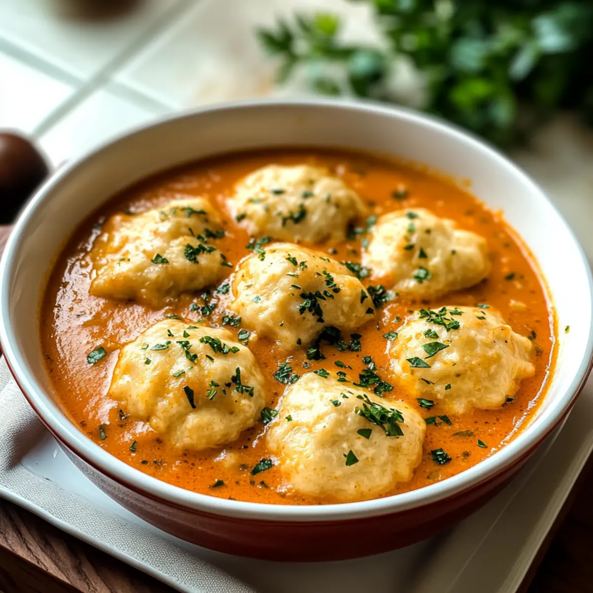 Während ich in der Küche stehe und die ersten Vorräte für die kalte Jahreszeit auspacke, überkommt mich der unwiderstehliche Duft von frisch zubereiteter Tomatensuppe. Das ist kein gewöhnliches Rezept; es ist eine Tomatensuppe mit Cheddar Bay Knödeln, die alles bietet, was das Herz begehrt. Diese cremige, reichhaltige Suppe ist weit mehr als nur eine warme Umarmung an einem kalten Tag – sie ist schnell zubereitet und bringt die ganze Familie zusammen. Die fluffigen, herzhaften Knödel verleihen dem Klassiker eine leckere Wendung und machen dieses Gericht zu einem echten Highlight in deiner Sammlung. Stell dir vor, du schöpfst dir eine Portion und genießt jeden Löffel in vollen Zügen. Bist du bereit für dieses köstliche Abenteuer?