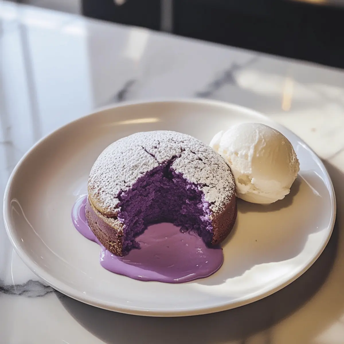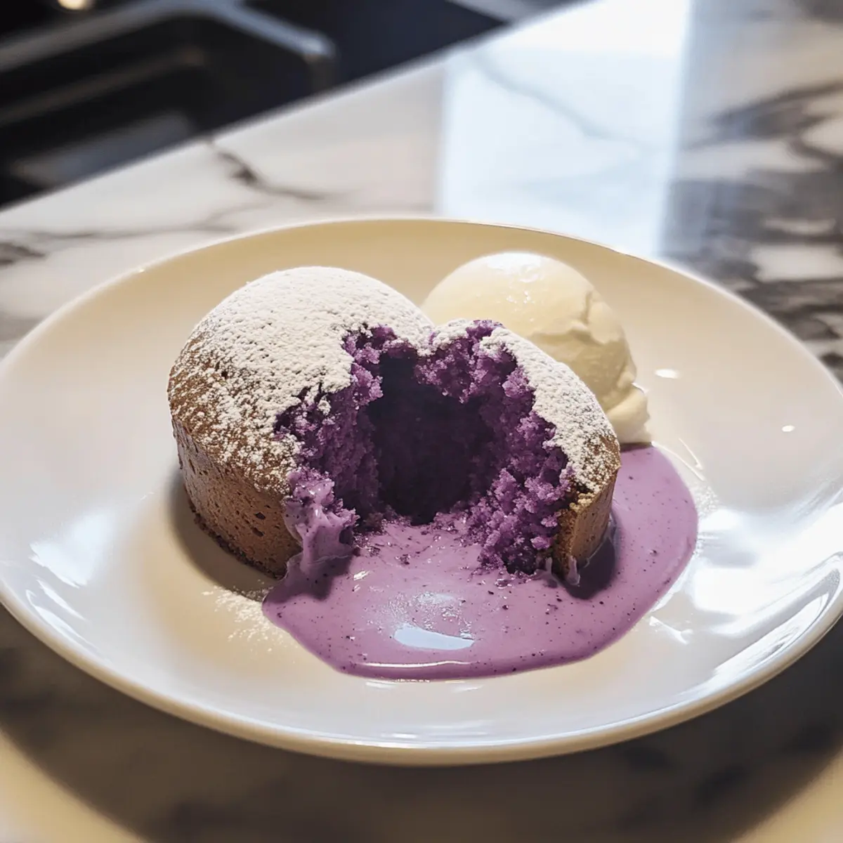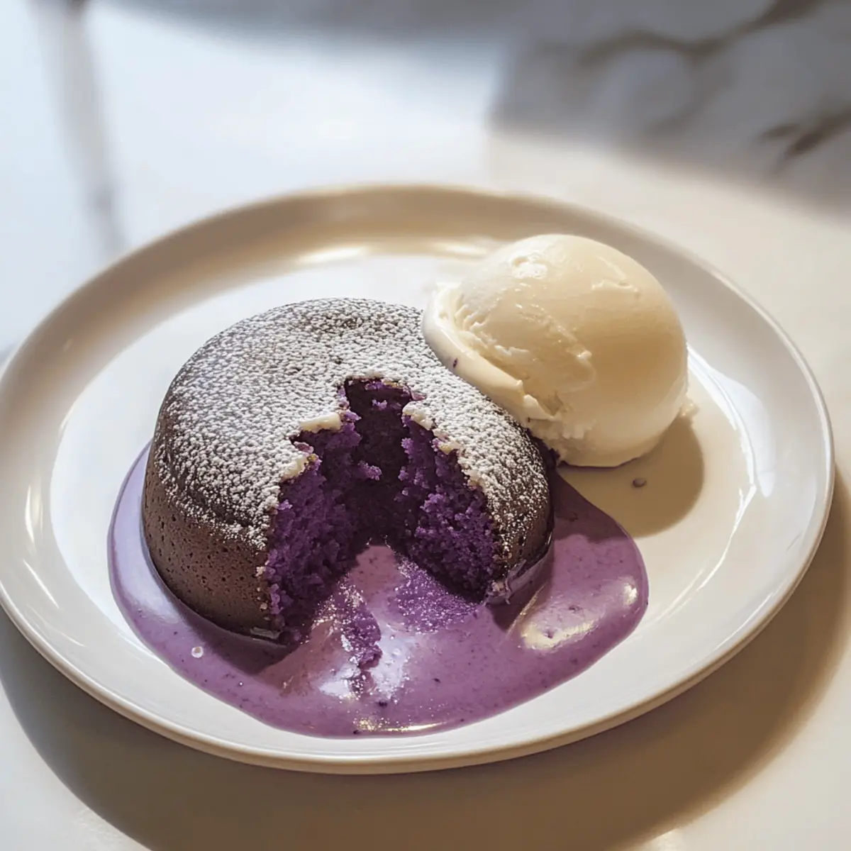 Ube Lava Kuchen mit Vanilleeis