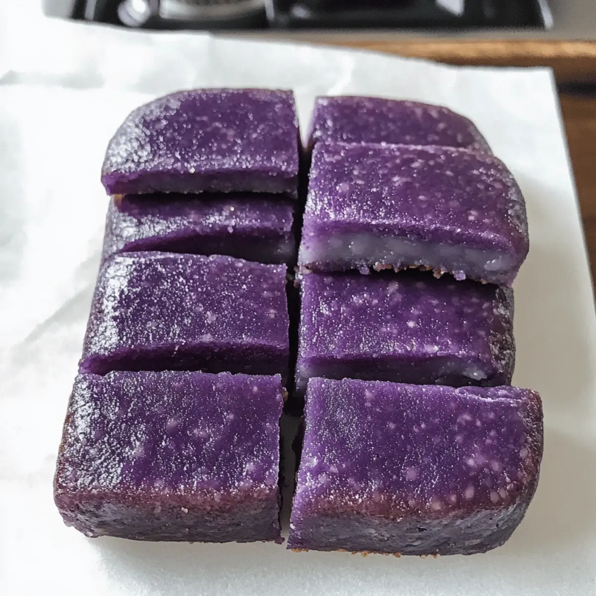 • Saubere Schnitte: Lasse die Ube Mochi vollständig abkühlen, bevor du sie in Stücke schneidest. Das sorgt für saubere, ansprechend aussehende Bars.