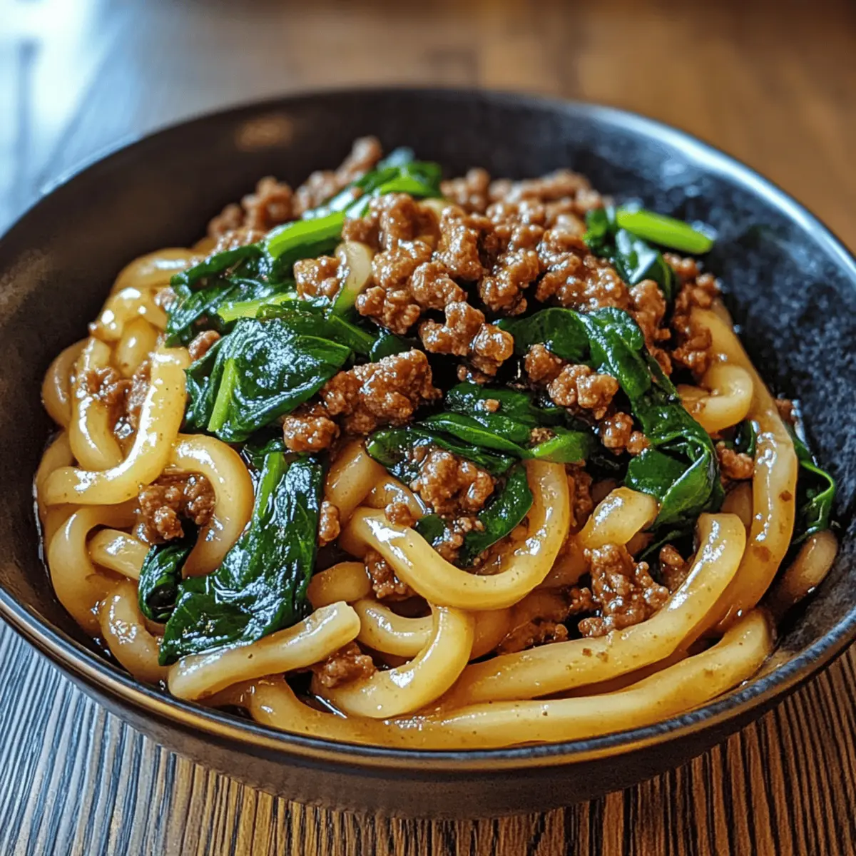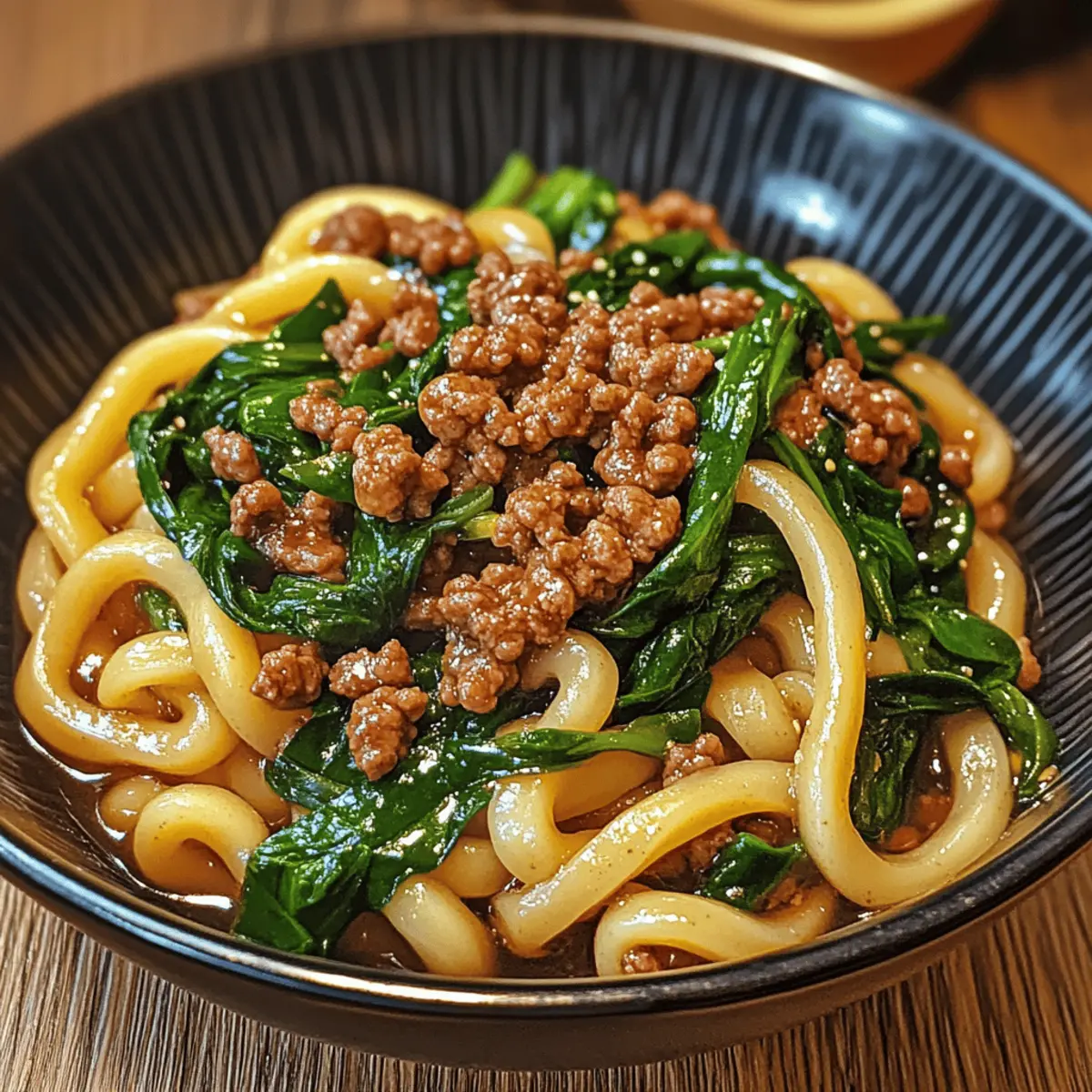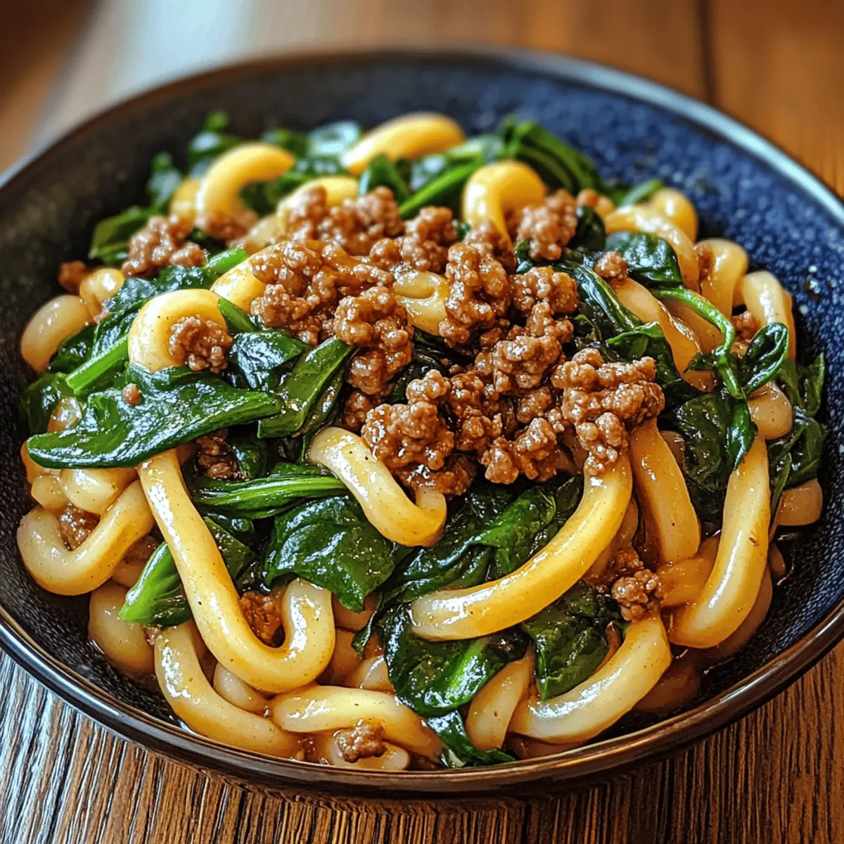 Kürzlich habe ich in einem kleinen, gemütlichen Restaurant eine Schüssel Udon-Nudeln entdeckt, die sofort mein Herz erobert hat. Die Kombination aus chewy Nudeln, herzhaftem Rinderhack und frischem Spinat hat mich an kühlen Tagen wärmend umhüllt. Was mir besonders gefällt, ist, dass dieses Rezept für Udon-Nudeln mit Rinderhack und Spinat nicht nur schnell zubereitet ist, sondern auch durch seinen umami-reichen Geschmack begeistert. Ideal für alle, die nach einer herzhaften, komfortierenden Mahlzeit suchen, ist es optimal für ein schnelles Abendessen unter der Woche. Egal, ob du ein passionierter Hobbykoch oder einfach nur müde von Fertiggerichten bist – dieses Gericht wird dein neuer Favorit! Bist du bereit, in die Welt der japanischen Küche einzutauchen und deine Familie mit einem köstlichen, selbstgemachten Essen zu überraschen? Warum wirst du dieses Rezept lieben? Einfachheit: Das Zubereiten dieser Udon-Nudeln ist kinderleicht und erfordert nur wenige Kochschritte, perfekt für vielbeschäftigte Abende. Herzhafter Geschmack: Die Kombination aus Rinderhack und frischem Spinat bewahrt nicht nur den umami-reichen Geschmack, sondern sorgt auch für eine optimale Nährstoffaufnahme. Nahrhaft und Sammelbecken: Diese Mahlzeit ist herzhaft und sättigend, ideal, um Familie oder Freunde zu beeindrucken—perfekt für gesellige Abende! Vielseitigkeit: Du kannst Rinderhack ganz leicht durch alternatives Fleisch oder sogar Tofu ersetzen. Probiere auch, verschiedene Gemüsesorten hinzuzufügen, um das Gericht nach deinem Geschmack anzupassen! Schnelle Zubereitung: In weniger als 30 Minuten genießt du ein köstliches Abendessen, perfekt für alle, die auf der Suche nach einer schmackhaften Alternative zu Fertiggerichten sind. Udon-Nudeln Zutaten • Für das Rezept der Udon-Nudeln mit Rinderhack und Spinat benötigst du folgende Zutaten: Für die Udon-Nudeln Udon-Nudeln – Die Basis des Gerichts, die eine tolle, chewy Textur bietet. Soba-Nudeln sind eine glutenfreie Alternative. Für die Füllung Rinderhack – Sorgt für reichhaltigen Geschmack und Protein. Du kannst es durch mageres Hühnchen oder Pute ersetzen. Frischer Spinat – Bringt Farbe und Nährstoffe ins Essen. Auch Grünkohl kann hier verwendet werden. Für die Würze Sojasauce – Fügt dem Gericht Tiefe und Geschmack hinzu. Tamari ist eine glutenfreie Option, die du nutzen kannst. Ingwer – Je nach Vorliebe kommt er frisch oder als getrocknete Variante zum Einsatz und hebt das Aroma. Die Zutatenliste ist simpel, und du kannst kreativ werden! Lass die Udon-Nudeln dein neuer Komfortbereich werden. Schritt-für-Schritt-Anleitungen für Udon-Nudeln mit Rinderhack und Spinat Step 1: Zutaten vorbereiten Koche die Udon-Nudeln gemäß den Anweisungen auf der Verpackung in einem großen Topf mit kochendem Wasser für etwa 8-10 Minuten, bis sie zart sind. Danach die Nudeln abgießen und in einer Schüssel beiseite stellen. Achte darauf, einen Schuss Öl hinzuzufügen, damit sie nicht zusammenkleben. Step 2: Rinderhack anbraten Erhitze in einer großen Pfanne bei mittlerer Hitze etwas Öl und füge das Rinderhackfleisch hinzu. Brate es für etwa 5–7 Minuten, bis es gleichmäßig braun ist und eine leicht knusprige Textur aufweist. Rühre regelmäßig um, damit das Fleisch nicht anbrennt und gleichmäßig gart. Step 3: Würzen hinzufügen Sobald das Rinderhack perfekt gebräunt ist, füge den frisch geriebenen Ingwer sowie die Sojasauce in die Pfanne hinzu. Rühre alles gut um, sodass die Aromen des Ingwers in das Fleisch integriert werden. Koche die Mischung für weitere 2–3 Minuten, bis alles gut vermischt und die Sojasauce leicht eingekocht ist. Step 4: Spinat hinzufügen Füge nun den frischen Spinat in die Pfanne hinzu und lasse ihn unter Rühren für etwa 1–2 Minuten zusammenfallen. Achte darauf, dass du den Spinat nicht überkochst; er sollte seine leuchtende grüne Farbe behalten und gerade so weich werden. Step 5: Udon-Nudeln untermischen Gib die gekochten Udon-Nudeln in die Pfanne zu der Rinderhack-Spinat-Mischung. Mische alles gründlich für 2–3 Minuten, bis die Nudeln gleichmäßig mit der köstlichen Kraft der Sojasauce, dem Rinderhack und dem Spinat ummantelt sind. Achte darauf, dass die Nudeln gut warm werden. Step 6: Servieren und genießen Serviere die Udon-Nudeln mit Rinderhack und Spinat sofort in tiefen Schalen. Du kannst das Gericht nach Belieben mit gerösteten Sesamsamen oder gehackten Frühlingszwiebeln garnieren, um dem Ganzen etwas zusätzlichen Crunch und Farbe zu verleihen. Guten Appetit! Lagerung und Einfrieren von Udon-Nudeln mit Rinderhack und Spinat Raumtemperatur: Dieses Gericht sollte nicht bei Raumtemperatur gelagert werden, da es schnell verderben kann. Kühlschrank: Udon-Nudeln mit Rinderhack und Spinat können bis zu 2 Tage in einem luftdichten Behälter im Kühlschrank aufbewahrt werden. Einfrieren: Für bis zu 2 Monate einfrierbar; stelle sicher, dass das Gericht vollständig abgekühlt ist, bevor du es in einem geeigneten Behälter einfrierst. Aufwärmen: Zum Aufwärmen die Nudeln in einer Pfanne bei mittlerer Hitze vorsichtig erhitzen, eventuell mit ein wenig Wasser oder Brühe, um die Textur wiederherzustellen. Variationen & Alternativen für Udon-Nudeln Lass deiner Kreativität freien Lauf und passe dieses Rezept ganz nach deinem Geschmack an! Glutenfrei: Ersetze die Udon-Nudeln durch Soba-Nudeln oder Reisspaghetti für eine glutenfreie Option. Mageres Fleisch: Tausche das Rinderhack gegen mageres Hähnchen oder Pute aus, um die Kalorien zu reduzieren. Vegetarisch: Verwende Tofu oder Tempeh anstelle des Rinderhacks und brate diese knusprig für eine herzhafte, fleischfreie Variante. Gemüse-Boost: Füge zusätzlich Paprika oder Champignons hinzu, um das Gericht noch nährstoffreicher zu gestalten. Diese Gemüse bringen nicht nur Farbnuancen, sondern auch köstliche Aromen mit sich. Schärfe: Für einen zusätzlichen Kick, streue etwas Chili oder Sriracha über das fertige Ge