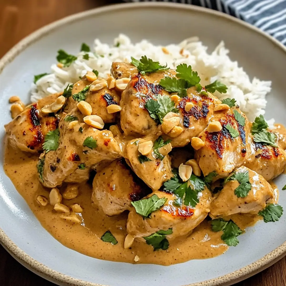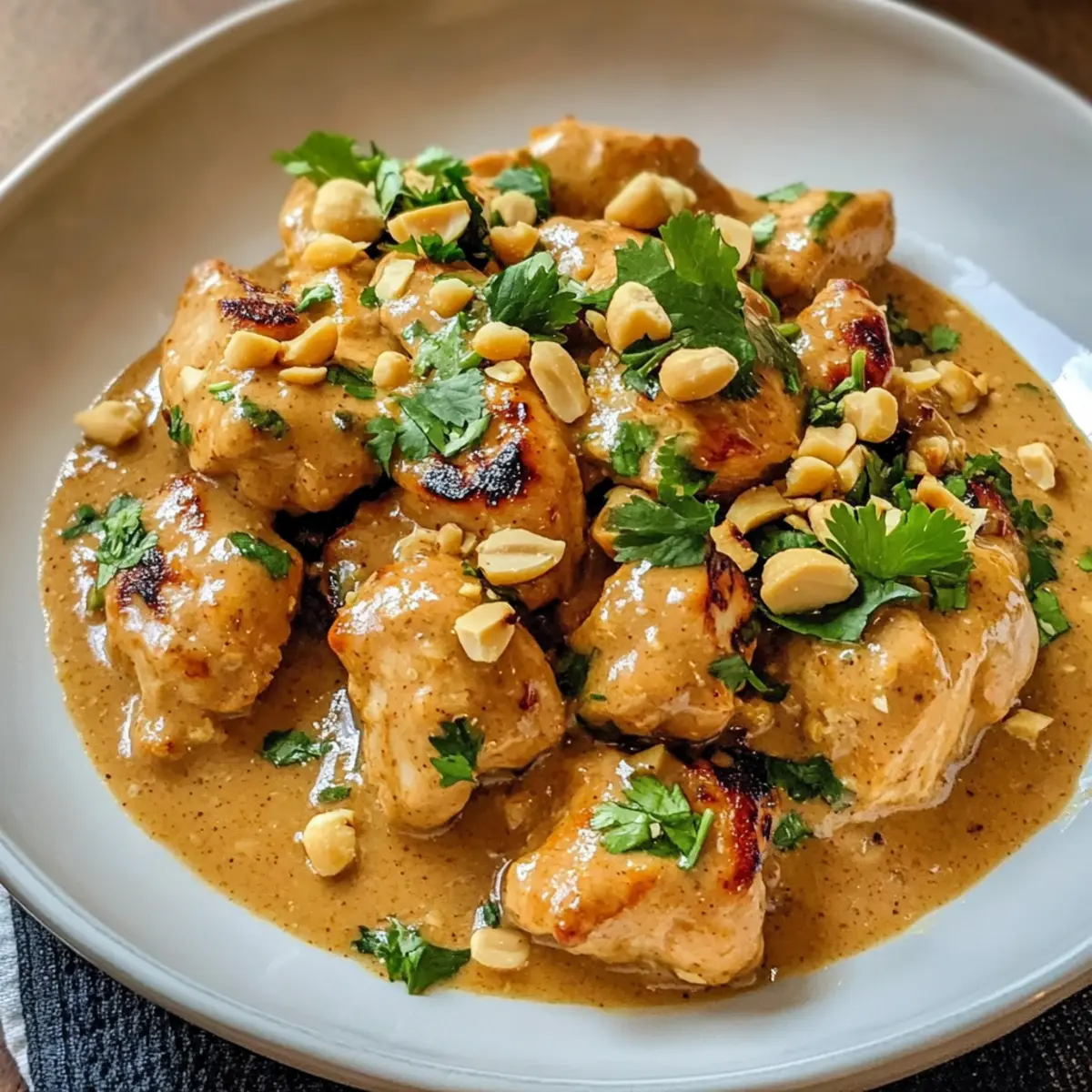 Ein schnelles und köstliches Gericht mit Erdnüssen, Hühnchen und einer cremigen Sauce, perfekt für hektische Wochentage.