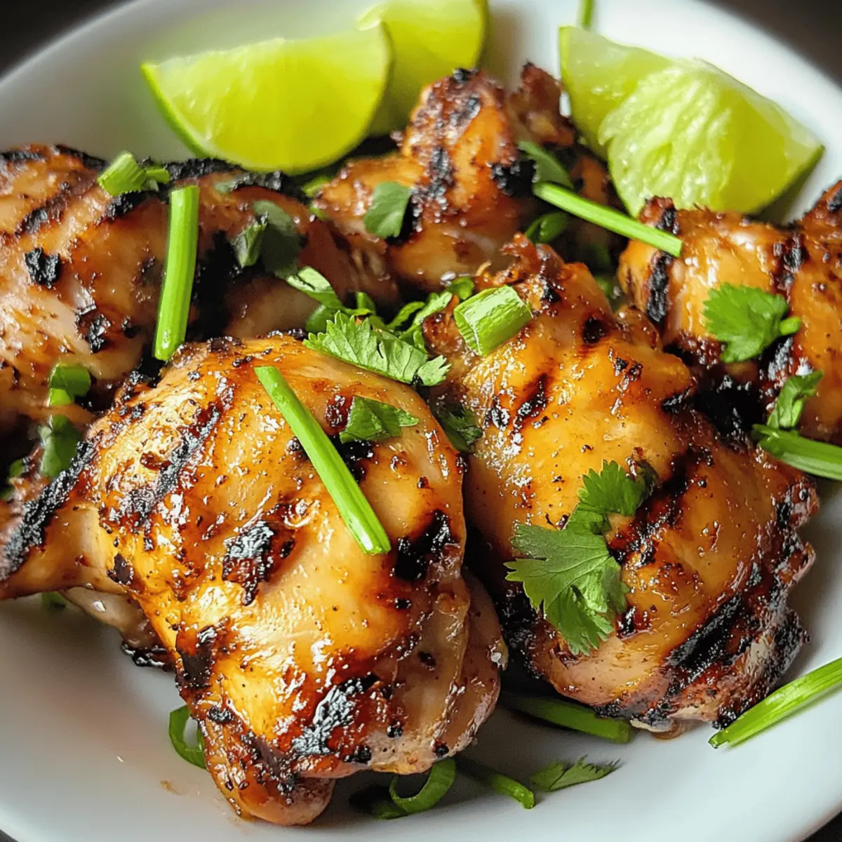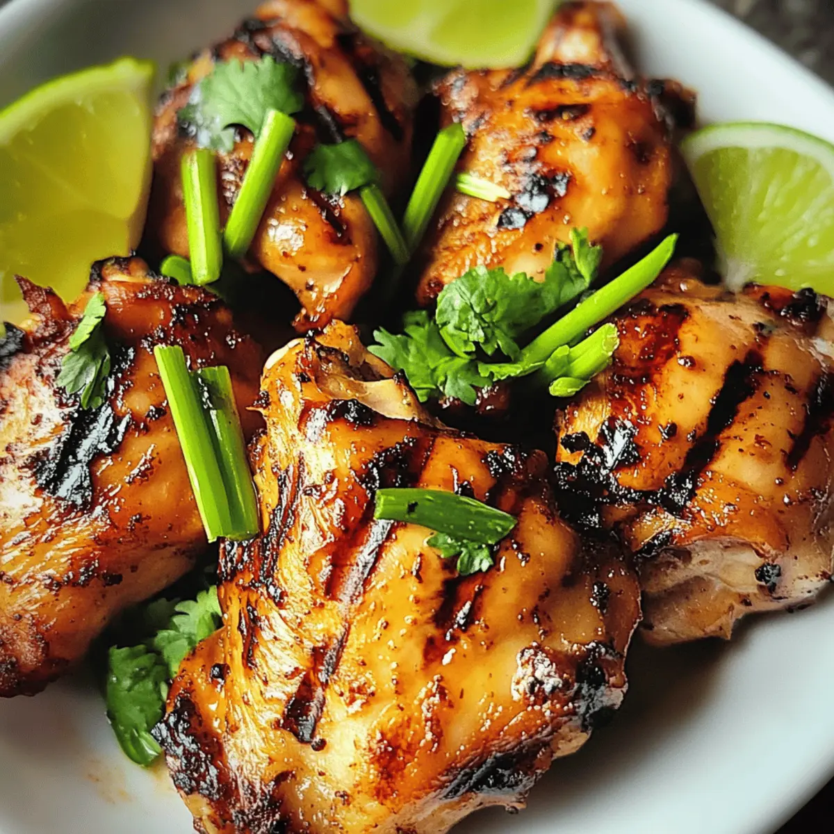 Ein angenehm würziger Duft wehte durch die Küche, während der Grill aufheizte und die Vorfreude auf mein neues Lieblingsgericht wuchs. Heute teile ich das Rezept für vietnamesisches gegrilltes Hühnchen, das nicht nur mit seinen köstlichen asiatischen Aromen begeistert, sondern auch im Handumdrehen zubereitet ist. Saftige Hähnchenschenkel werden in einer köstlichen Marinade aus Fisch- und Sojasauce, Knoblauch und Gewürzen eingelegt und erhalten auf dem Grill ihre perfekte Grillzeichnung. Dies macht es zur idealen Wahl für ein schnelles Abendessen unter der Woche oder ein geselliges Grillwochenende mit Freunden. Der zusätzliche Kick von frischen Kräutern und spritzigen Limetten sorgt zudem für ein geschmackliches Erlebnis, das sowohl sättigend als auch erfrischend ist. Neugierig, wie du dieses einfache, glutenfreie Rezept zubereiten kannst? Lass uns gleich loslegen! Warum wirst du dieses Rezept lieben? Einfachheit: Die gesamte Zubereitung ist unkompliziert und erfordert keine besonderen Kochkünste – perfekt für alle, die sich schnell eine köstliche Mahlzeit zaubern möchten. Toller Geschmack: Durch die Kombination von Fisch- und Sojasauce mit frischem Knoblauch und Gewürzen entsteht ein reichhaltiges Aroma, das deine Geschmacksknospen verzaubern wird. Vielseitigkeit: Du kannst dieses Gericht nach Belieben variieren, indem du zusätzlich frische Kräuter oder Rauchpaprika hinzufügst, um deinen eigenen Twist zu kreieren. Gesunde Wahl: Glutenfrei und proteinreich ist dieses Gericht ideal für verschiedene Ernährungsweisen und sorgt dennoch für ein volles Geschmackserlebnis. Schnelle Zubereitung: Mit einer Marinierzeit von nur einer Stunde kannst du im Handumdrehen ein unvergessliches Abendessen zubereiten. Wenn du mehr über einfache und leckere Rezepte erfahren möchtest, schau dir auch unser Mango Sago Rezept an! Vietnamesische gegrillte Hähnchen-Zutaten Hinweis: Diese Vietnamesische gegrillte Hähnchen-Rezeptur benötigt einige köstliche Zutaten, um das beste Geschmackserlebnis zu sichern. Für die Marinade Hähnchenschenkel – Die Hauptquelle für Protein, die Tiefe und Geschmack liefert; am besten mit Knochen und ohne Haut für weniger Fett. Fischsauce – Verleiht Umami und Salzigkeit; kann durch Tamari für eine glutenfreie Option ersetzt werden. Sojasauce – Sorgt für herzhaften Geschmack; verwende natriumarme Sojasauce, um den Salzgehalt zu kontrollieren. Brauner Zucker – Balanciert die herzhaften Elemente mit Süße; Kokosnusszucker kann verwendet werden als Ersatz. Knoblauch – Fügt aromatischen Geschmack hinzu; frisch ist bevorzugt für beste Ergebnisse. Ingwer – Verleiht Wärme und Gewürz; gerieben für einfache Integration. Pflanzenöl – Hilft, die Marinade zu halten und verhindert das Ankleben am Grill; kann durch Sesamöl für nussigen Geschmack ersetzt werden. Honig – Bietet natürliche Süße und fördert die Karamellisierung beim Grillen; Ahornsirup kann als Alternative dienen. Schwarzer Pfeffer – Sorgt für milde Schärfe; je nach Vorliebe anpassen. Chilipulver – Anpassung des Schärfegrads; Cayennepfeffer oder Paprika können nach Geschmack ersetzt werden. Für die Garnitur Frische Kräuter (Koriander) – Zum Garnieren, verbessert die Präsentation und fügt Frische hinzu. Limettenviertel – Zum Servieren, erhöhen die Säure und erfrischen das Gericht. Schritt-für-Schritt-Anleitung für Vietnamesisches Gegrilltes Hähnchen Step 1: Marinade vorbereiten In einer Rührschüssel Fischsauce, Sojasauce, braunen Zucker, gehackten Knoblauch, geriebenen Ingwer, Pflanzenöl, Honig, schwarzen Pfeffer und Chilipulver gut vermischen. Stelle sicher, dass der Zucker vollständig aufgelöst ist und die Marinade eine glatte Konsistenz hat. Dieser Schritt ist entscheidend für das Austauschen der köstlichen Aromen, die das vietnamesische gegrillte Hähnchen prägen. Step 2: Hähnchen marinieren Lege die Hähnchenschenkel in die vorbereitete Marinade und achte darauf, dass sie gleichmäßig bedeckt sind. Decke die Schüssel ab oder verwende einen Gefrierbeutel, um das Marinieren zu erleichtern. Lasse das Hähnchen mindestens eine Stunde im Kühlschrank ziehen, besser noch über Nacht, sodass es all die aromatischen Geschmäcker der Marinade aufnehmen kann. Step 3: Grill vorheizen Heize deinen Grill auf mittelhohe Temperatur vor, etwa 200 °C (400 °F). Ein gut vorgeheizter Grill sorgt dafür, dass das Hähnchen eine schöne Grillmarkierung und eine leckere Kruste erhält. Verwende ein Grillthermometer, um sicherzustellen, dass die Temperatur am Grillrost ideal ist. Step 4: Hähnchen grillen Nehme die marinierten Hähnchenschenkel aus der Marinade und lasse überschüssige Marinade abtropfen. Platziere die Hähnchenschenkel auf den heißen Grill und grille sie für etwa 5-7 Minuten auf jeder Seite. Achte darauf, dass das Hähnchen eine goldbraune Kruste erhält und die Innentemperatur mindestens 75 °C (165 °F) erreicht, um sicherzustellen, dass es durchgegart ist. Step 5: Ruhen lassen Nachdem du das Hähnchen vom Grill genommen hast, lasse es für etwa 5 Minuten ruhen. Dies ermöglicht den Säften, sich gleichmäßig im Fleisch zu verteilen, wodurch das gegrillte Hähnchen besonders saftig bleibt und voller Geschmack ist. Ein kurzer Moment Geduld lohnt sich hier wirklich! Step 6: Garnieren und Servieren Serviere das vietnamesische gegrillte Hähnchen, garniert mit frischem Koriander und Limettenvierteln. Der frische Koriander bringt eine lebendige Farbe und einen aromatischen Kick, während die Limetten das Gericht mit ihrer spritzigen Säure aufwerten. Diese Kombination macht das Essen besonders ansprechend und geschmacklich ausgewogen. Expertentipps für Vietnamesisches Gegrilltes Hähnchen Marinieren für mehr Geschmack: Lasse das Hähnchen idealerweise über Nacht marinieren, um die Aromen intensiv in das Fleisch einziehen zu lassen. Grilltemperatur beachten: Achte darauf, dass der Grill gut vorgeheizt ist, um eine schöne Grillmarkierung