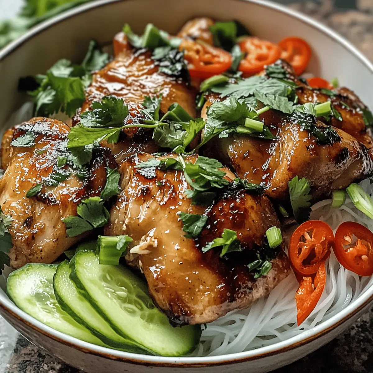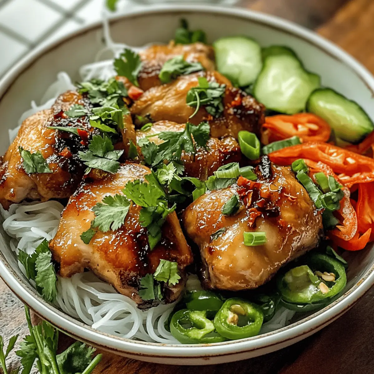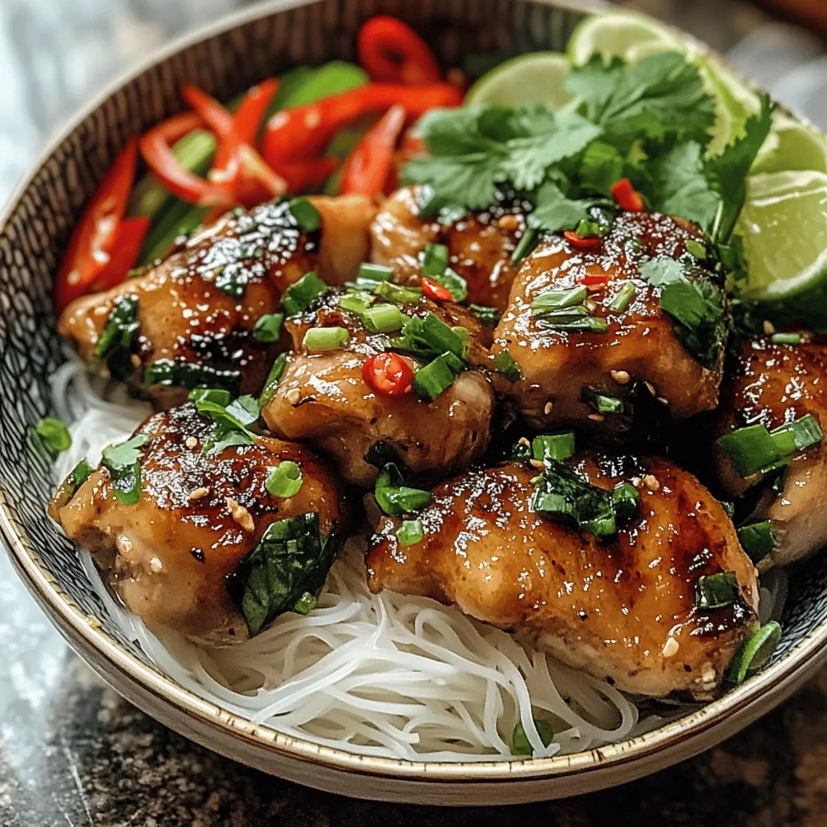 Während ich kürzlich durch die Straßen eines lebhaften vietnamesischen Marktes schlenderte, konnte ich die verlockenden Aromen von frisch gegrilltem Hähnchen und aromatischem Lemongrass wahrnehmen. Inspiriert von dieser Erfahrung, möchte ich euch heute ein unvergessliches Rezept für vietnamesisches Lemongrass-Hähnchen mit Nuoc Cham-Dipsauce vorstellen. Dieses Gericht ist nicht nur einfach zuzubereiten, sondern auch unglaublich geschmackvoll und steckt voller umami-reicher Aromen. Innerhalb von nur 30 Minuten verwandelt ihr zarte, mariniert Hähnchenschenkel in ein köstliches Mahl, das sowohl Familie als auch Freunde begeistern wird. Ideal für alle, die frische, hausgemachte Gerichte lieben und eine kurze Auszeit vom schnellen Essen wünschen. Seid ihr bereit, die Aromen Vietnams in eurer Küche zu entdecken? Warum lieben alle dieses Rezept? Einfachheit: Die Zubereitung ist unkompliziert und erfordert nur wenige Schritte – perfekt für Kochanfänger und Profis gleichermaßen. Volles Aroma: Die Kombination aus Zitronengras, Fischsauce und Knoblauch sorgt für einen tiefen, umami-reichen Geschmack, der jeden Gaumen begeistert. Schnell zubereitet: In nur 30 Minuten steht dieses köstliche Gericht auf dem Tisch – ideal für ein schnelles Abendessen unter der Woche. Vielseitig: Ob mit Hähnchen, Tofu oder Garnelen – dieses Rezept passt sich euren Vorlieben an! Für mehr Abwechslung entdeckt auch mein Sago Rezept Erfrischendes Dessert oder die leckeren Spinat Feta Einfach Quesadillas. Crowd-Pleaser: Dieses Gericht wird nicht nur eurem Gaumen schmeicheln, sondern auch eure Gäste beeindrucken und für Begeisterung sorgen. Zutaten für das Vietnamesische Zitronengras-Hähnchen • Um die Aromen dieses köstlichen Gerichts zu entfalten, benötigt ihr folgende Zutaten. Für das Hähnchen Hähnchenschenkel – Bieten das Hauptprotein und einen reichen Geschmack; nehmt ohne Knochen und Haut für einfacheres Kochen. Knoblauch – Fügt aromatische Tiefe hinzu; frischer Knoblauch ist vorzuziehen, kann aber auch durch Pulver ersetzt werden. Zitronengras – Essentiell für das charakteristische Aroma; verwendet gehacktes Zitronengras aus einer Tube, wenn frisches nicht verfügbar ist. Fischsauce – Trägt zu umami und Salzigkeit bei; kann durch Sojasauce ersetzt werden, aber der Geschmack wird anders sein. Sojasauce – Verstärkt die herzhaften Noten; Tamari ist eine glutenfreie Alternative. Dunkle Sojasauce – Sorgt für Farbe und Reichtum; reguläre Sojasauce kann verwendet werden, verändert jedoch leicht die Farbe. Brauner Zucker – Balanciert die Aromen mit subtiler Süße; Honig kann als Alternative verwendet werden. Limettensaft – Fügt Säure und Frische hinzu; Zitronensaft ist eine gangbare Alternative. Für die Nuoc Cham Sauce Fischsauce – Bildet die Grundlage der Dipsauce. Wasser – Verdünnt die Sauce für ein ausgewogenes Geschmackserlebnis. Zucker – Süßt die Sauce; Kokoszucker kann für eine andere Süße genutzt werden. Limettensaft – Sorgt für Frische und Helligkeit. Reiswein-Essig – Fügt einen Hauch von Säure hinzu; Apfelessig kann als Ersatz dienen. Thai Chili – Bringt Schärfe ins Spiel; passt die Menge je nach Vorliebe an oder lasst sie für einen milderen Geschmack weg. Zusätzliches Knoblauch – Hebt den Geschmack an. Verwendet diese Zutaten für ein unvergessliches vietnamesisches Geschmackserlebnis! Schritt-für-Schritt-Anleitung für Vietnamesisches Zitronengras-Huhn mit Nuoc Cham Schritt 1: Hähnchen marinieren In einer großen Schüssel die Hähnchenschenkel mit dem gehackten Knoblauch, Zitronengras, Fischsauce, Sojasaucen, braunem Zucker und Limettensaft vermengen. Gut umrühren, bis das Hähnchen gleichmäßig bedeckt ist. Deckt die Schüssel ab und marinieren für mindestens 15 Minuten, idealerweise über Nacht, um die Aromen zu intensivieren. Schritt 2: Hähnchen im Airfryer zubereiten Heize den Airfryer auf 220°C (425°F) vor. Lege die marinierten Hähnchenschenkel in einer einzigen Schicht in den Korb des Airfryers und koche sie für 11–13 Minuten. Achte darauf, dass sie goldbraun sind und die Innentemperatur 74°C (165°F) erreicht, um sicherzustellen, dass das Hähnchen durchgegart ist. Schritt 3: Nuoc Cham-Sauce vorbereiten In einer Schüssel Fischsauce, Wasser, Zucker, Limettensaft, Reisweinessig, gehackte Thai-Chilis und zusätzlichen Knoblauch vermischen. Rühre die Mischung gut um, bis sich der Zucker vollständig aufgelöst hat. Lasse die Sauce beiseite, damit sich die Aromen verbinden können, während das Hähnchen gart. Schritt 4: Hähnchen schneiden und servieren Lasse das Hähnchen nach dem Garen kurz ruhen, damit sich die Säfte setzen können. Schneide die Hähnchenschenkel in Streifen und serviere sie zusammen mit Reisnudeln, frischem Gemüse und der vorbereiteten Nuoc Cham-Sauce. Dieser wunderschöne Teller vereint alle Aromen des Vietnamesischen Zitronengras-Huhns und bietet ein köstliches Erlebnis. Aufbewahrungstipps für vietnamesisches Zitronengras-Huhn Raumtemperatur:: Serviere das Hähnchen sofort nach dem Kochen für den besten Geschmack und die beste Textur. Bei Raumtemperatur nicht länger als 2 Stunden stehen lassen. Kühlschrank:: Bewahre übrig gebliebenes vietnamesisches Zitronengras-Huhn in einem luftdichten Behälter auf, um die Frische zu bewahren. Es bleibt bis zu 3 Tage lecker. Gefrierschrank:: Das Hähnchen kann auch eingefroren werden. Wickele es gut in Frischhaltefolie ein und lege es in einen gefrierfesten Behälter, um es bis zu 3 Monate frisch zu halten. Wiederv Erwärmen:: Zum Auftauen das gefrorene Hähnchen über Nacht im Kühlschrank auftauen. Erhitze es im Airfryer oder in der Mikrowelle, bis es gut durchgewärmt ist. Was passt zum Vietnamesischen Zitronengras-Huhn? Die perfekte Ergänzung zu einem aromatischen Gericht verwandelt jedes Essen in ein Fest für die Sinne. Jasminreis: Aromatisch und zart, dieser Reis nimmt die Aromen der Sauce wunderbar auf. Für zusätzlichen Geschmack k