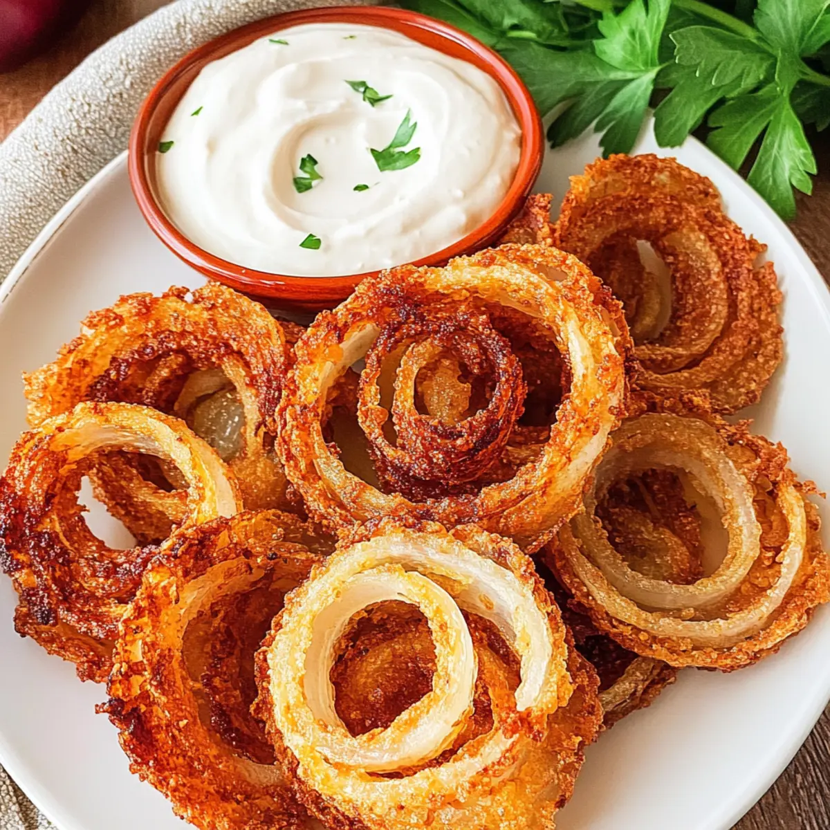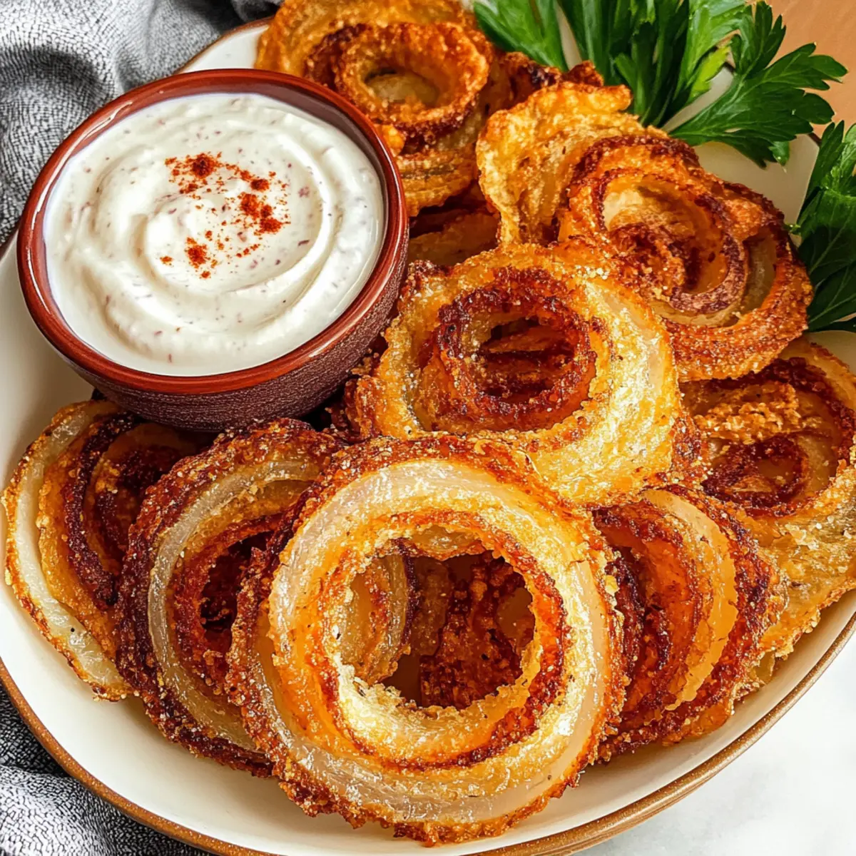 Die Vorfreude auf knusprige Snacks kann kaum übertroffen werden! Wenn ich an köstliche Knabbereien denke, kommen mir sofort die Viral Onion Ring Chips in den Sinn – ein perfekter Mix aus intensivem Zwiebelgeschmack und dem reichen Aroma von Parmesan. Diese leckeren, low-carb Snacks sind nicht nur ideal für den kleinen Hunger zwischendurch, sondern sie sind auch eine großartige Möglichkeit, um das Verlangen nach „ungesunden“ Snacks zu stillen, ohne ein schlechtes Gewissen zu bekommen. Das Beste daran? Sie sind super einfach zuzubereiten und schmecken frisch aus dem Ofen direkt am besten! Welche Dips und Variationen würdet ihr zu diesen köstlichen Chips ausprobieren? Warum sind diese Chips so besonders? Knusprig, Die Viral Onion Ring Chips bieten einen unvergleichlichen Crunch, der jeden Snackliebhaber begeistert. Gesund, Mit nur wenigen Zutaten sind sie nicht nur lecker, sondern auch low-carb und perfekt für eine ketogene Ernährung. Vielseitig, Diese Chips können mit verschiedenen Dips wie Tzatziki oder einem cremigen Burger-Dressing serviert werden, um das Geschmackserlebnis zu steigern. Einfach, Die Zubereitung ist kinderleicht und erfordert keine speziellen Kochkünste, sodass sie auch für Küchenneulinge geeignet sind. Perfekt für Partys, Ob auf dem Spieltag oder bei einer geselligen Runde, diese Chips werden garantiert zu einem Hit! Zutaten für die Viral Onion Ring Chips • Ein köstlicher Snack, der Ihre Geschmacksknospen verwöhnt! Für die Chips Parmesan Käse – sorgt für einen reichen, würzigen Geschmack und bildet die Basis der Chips. Substitution: Verwenden Sie eine laktosefreie Käsealternative für eine milchfreie Version. Gelbe Zwiebeln – verleihen den Chips ihren charakteristischen Geschmack und Knusprigkeit. Hinweis: Dünn schneiden für das beste Ergebnis; ein Mandoline ist dafür ideal. Avocadoöl – wird verwendet, um die Zwiebeln zu bestreichen und den Geschmack zu intensivieren. Substitution: Olivenöl kann ebenfalls verwendet werden, wenn gewünscht. Paprika – fügt Farbe und eine subtile Wärme hinzu. Nach Geschmack anpassen für die Schärfe. Grobes Meersalz – verstärkt den Gesamtgeschmack der Chips. Menge reduzieren, wenn Sie auf die Natriumaufnahme achten. Knoblauchpulver – bringt eine herzhafte Tiefe. Optional für diejenigen, die empfindlich auf Knoblauch reagieren. Gewürzsalz – fügt eine zusätzliche Geschmacksdimension hinzu. Verwenden Sie normalen Salz als Alternative. Schwarzer Pfeffer – bringt eine leichte Schärfe. Anpassen je nach persönlichen Vorlieben. Schritt-für-Schritt-Anleitungen für die Viral Onion Ring Chips Step 1: Ofen vorheizen Heizen Sie den Ofen auf 200 °C vor und bereiten Sie ein großes Backblech mit Backpapier vor, um ein Ankleben der Chips zu verhindern und eine gleichmäßige Bräunung zu gewährleisten. Step 2: Käse vorbereiten Reiben Sie 225 Gramm Parmesan Käse fein und verteilen Sie ihn gleichmäßig auf dem mit Backpapier ausgelegten Blech, sodass eine gleichmäßige Schicht entsteht, die als Basis für die chips dient. Step 3: Zwiebeln schneiden Schneiden Sie 3 mittelgroße gelbe Zwiebeln sehr dünn (ca. 4 mm dick) und legen Sie die Zwiebelringe in einer einzigen Schicht über den Parmesan Käse, um sicherzustellen, dass sie gleichmäßig garen. Step 4: Öl und Gewürze hinzufügen Bestreichen Sie die Zwiebeln großzügig mit 2 Esslöffeln Avocadoöl und bestreuen Sie sie anschließend mit Paprika, grobem Meersalz, Knoblauchpulver, Gewürzsalz und schwarzem Pfeffer, um den Geschmack der Viral Onion Ring Chips zu intensivieren. Step 5: Backen Schieben Sie das Backblech in den vorgeheizten Ofen und backen Sie die Chips für 25-30 Minuten, bis sie goldbraun und knusprig sind. Achten Sie darauf, dass sie nicht zu dunkel werden, um ein Überbräunen zu vermeiden. Step 6: Abkühlen lassen Lassen Sie die Chips nach dem Backen für 10 Minuten auf dem Blech abkühlen, bevor Sie sie servieren. Dies hilft, die Knusprigkeit zu bewahren und sorgt für ein besseres Geschmackserlebnis. Expertentipps für die besten Viral Onion Ring Chips Dünn schneiden: Die Zwiebeln sollten sehr dünn geschnitten werden, idealerweise mit einer Mandoline, um gleichmäßige Garung und perfekte Knusprigkeit zu gewährleisten. Frisch genießen: Für den besten Geschmack und die optimale Knusprigkeit sollten die Chips am Tag der Zubereitung verzehrt werden. Lagerung: Bewahren Sie übrig gebliebene Chips in einem luftdichten Behälter im Kühlschrank auf. Sie bleiben bis zu 3 Tage haltbar, aber die Knusprigkeit nimmt ab. Reheating-Tipps: Wenn Sie die Chips aufwärmen möchten, verwenden Sie den Ofen oder die Heißluftfritteuse für das beste Ergebnis und um die Knusprigkeit zurückzubringen. Käseaktivierung: Stellen Sie sicher, dass der Parmesan gleichmäßig auf dem Backblech verteilt ist, um ein Ankleben und ungleichmäßiges Backen zu vermeiden. Würze anpassen: Experimentieren Sie mit verschiedenen Gewürzen, um persönliche Vorlieben zu berücksichtigen und die flavors der Viral Onion Ring Chips nach Ihrem Geschmack zu verbessern. Variationen und Substitutionen Lassen Sie Ihrer Kreativität freien Lauf und entdecken Sie, wie Sie diese köstlichen Chips nach Ihrem Geschmack anpassen können! Dairy-Free: Verwenden Sie laktosefreien Käse, um eine milchfreie Version der Chips zu kreieren. Ideal für alle, die auf Milchprodukte verzichten möchten. Spicy Upgrade: Fügen Sie eine Prise Cayennepfeffer hinzu, um den Chips eine angenehme Schärfe zu verleihen. Experimentieren Sie mit verschiedenen Gewürzen für das perfekte Aroma. Kräuter-Infusion: Mischen Sie getrocknete Kräuter wie Oregano oder Thymian in die Gewürzmischung, um eine aromatische Note zu erzielen. Diese Kräuter verleihen den Chips eine mediterrane Wendung. Knoblauch-Boost: Für einen intensiven Knoblauchgeschmack können Sie zusätzlich frischen Knoblauch oder Knoblauchpulver verwenden. Perfekt für Liebhaber des herzhaften Geschmacks! Zwiebel-Variation