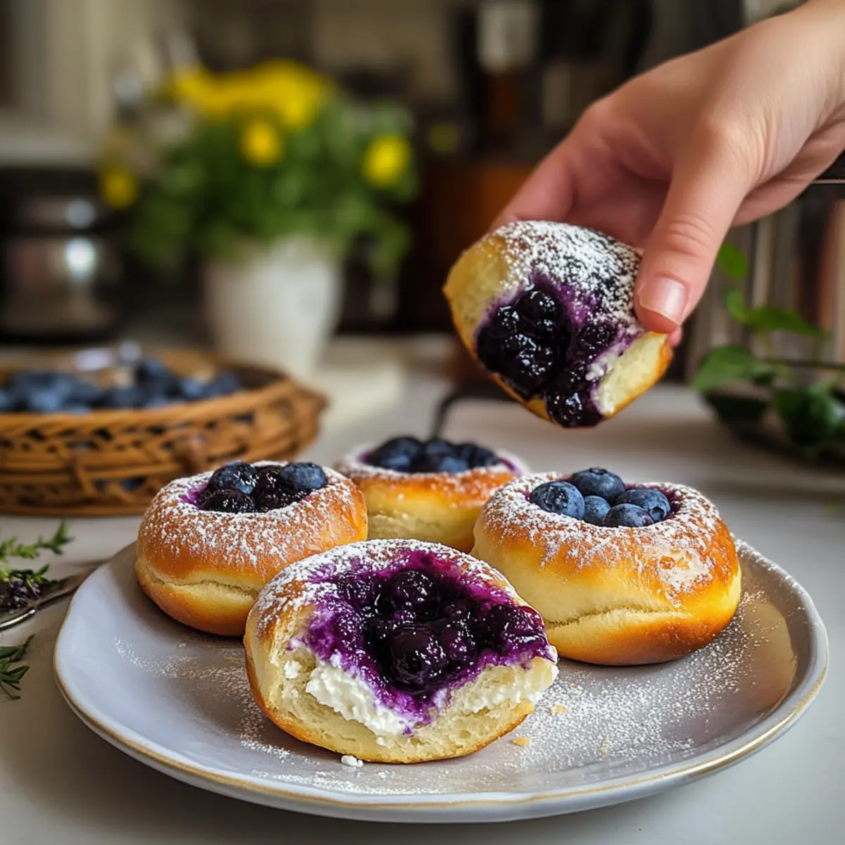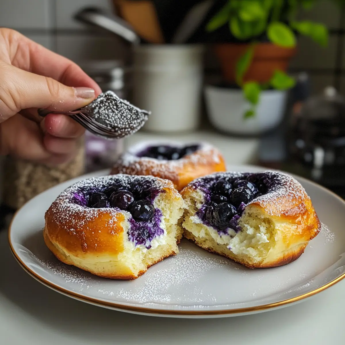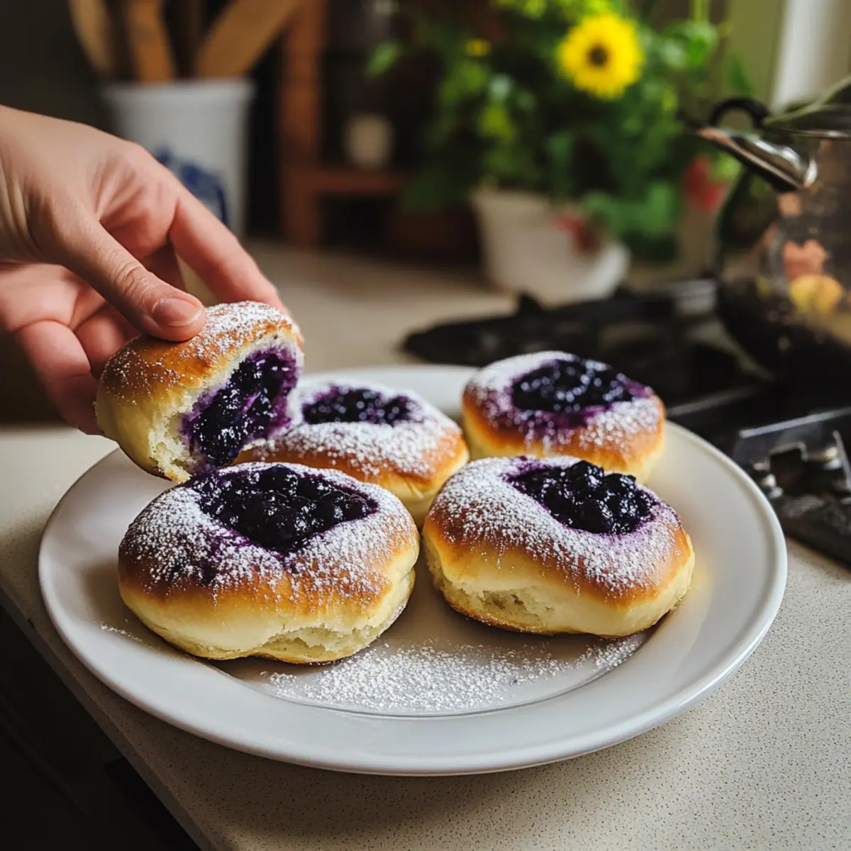 Hast du jemals den süßen Duft frisch gebackener Brötchen in der Luft gespürt und dir gewünscht, du könntest das Gefühl einer gemütlichen Küchenecke in deinem eigenen Zuhause nachstellen? Mit diesen wilden Blaubeer Ricotta Süße Brötchen wirst du genau das erreichen! Diese köstlichen Vatrushka-Brötchen sind nicht nur ein feiner Gaumenschmaus, sie punkten auch mit einer unkomplizierten Zubereitung – ideal für ein schnelles Frühstück oder einen entspannten Brunch mit Freunden. Die Kombination aus cremiger Ricotta und saftigen, wilden Blaubeeren sorgt für ein unvergessliches Geschmackserlebnis, das dich sofort in eine frühlingshafte Genusswelt entführt. Bereit, deine Liebsten mit diesen unwiderstehlichen Brötchen zu verwöhnen? Lass uns zusammen die Teigkneterei beginnen! Warum wirst du diese Brötchen lieben? Unwiderstehlicher Duft: Beim Backen der wilden Blaubeer Ricotta Süße Brötchen wird deine Küche in einen verführerischen Ort verwandelt, der alle Sinne anspricht. Einfache Zubereitung: Diese Brötchen erfordern nur grundlegende Backkenntnisse und sind perfekt für Kücheneinsteiger! Vielseitige Füllungen: Experimentiere mit anderen Füllungen, wie frischen Früchten oder herzhaften Käsemischungen, um deinen Gästen immer wieder neue Geschmackserlebnisse zu bieten. Gemütlicher Genuss: Ob zum Frühstück oder beim Familienbrunch, diese Brötchen sind ideal, um mit Freunden und Familie zu teilen. Cremige Köstlichkeit: Die Kombination aus Ricotta und wilden Blaubeeren sorgt für einen unvergesslichen Geschmack, der dich und deine Lieben verzaubern wird. Bereit, mehr über diese Rezepte zu erfahren? Schau dir auch unsere Asiatische Thunfischfrikadellen Scharfe oder den Koreanischer Scharfer Thunfischsalat an! Wilde Blaubeer Ricotta Süße Brötchen Zutaten • Hier sind die Zutaten für deine köstlichen Brötchen! Für den Teig: Allzweckmehl – sorgt für die Struktur und kann durch Brotmehl ersetzt werden, um die Brötchen knuspriger zu machen. Trockenhefe – ist der Treibmittel und sollte frisch sein, damit der Teig gut aufgeht. Milch – sorgt für die nötige Feuchtigkeit; Kokosmilch ist eine tolle, milchfreie Alternative. Eigelb – verbessert den Geschmack und die Textur; Du kannst die Eiweiße weglassen, wenn du möchtest. Butter – verleiht den Brötchen Zartheit und Geschmack; verwende ungesalzene Butter, um die Salzigkeit zu kontrollieren. Für die Füllung: Blaubeeren – sorgen für Geschmack und Farbe; frische oder gefrorene Blaubeeren sind geeignet, jedoch bringen wilde Blaubeeren den authentischsten Geschmack. Ricotta – ist die Basis für die Füllung und kann durch Quark oder Tvorog ersetzt werden für ein traditionelleres Ergebnis; Hüttenkäse ist ebenfalls eine Option. Schlagsahne – sorgt für zusätzlichen Reichtum; wichtig zum Bestreichen der Brötchen für eine goldene Oberfläche. Zucker – für die Süße; Passe die Menge je nach persönlichem Geschmack für die Füllung und den Teig an. Für das Backen: Maizena (Speisestärke) – hilft die Füllung zu binden und sorgt dafür, dass sie nicht ausläuft. Vanille – für einen Hauch von Extra-Geschmack in der Füllung; vanilleschote oder Extrakt sind beide gut geeignet. Genieße das Backen dieser Wilde Blaubeer Ricotta Süße Brötchen und überrasche deine Liebsten mit diesem unwiderstehlichen Rezept! Schritt-für-Schritt-Anleitung für Wilde Blaubeer Ricotta Süße Brötchen Step 1: Teig vorbereiten Mische in einer großen Schüssel das Allzweckmehl, die Trockenhefe und den Zucker. Erwärme die Milch, bis sie lauwarm ist, und füge sie zu den trockenen Zutaten hinzu, zusammen mit den Eigelb und der geschmolzenen Butter. Knete den Teig etwa 8-10 Minuten lang, bis er glatt und elastisch ist. Der Teig sollte leicht klebrig sein, wenn er gründlich durchgeknetet ist. Step 2: Erste Gehzeit Decke die Schüssel mit einem sauberen Tuch ab und stelle sie an einen warmen Ort, damit der Teig aufgehen kann. Lasse ihn etwa 1 Stunde ruhen, bis er sich in der Größe verdoppelt hat. Achte darauf, dass der Teig weich und luftig aussieht, was bedeutet, dass die Hefe aktiv ist und der Teig bereit ist zum Formen. Step 3: Brötchen formen Teile den gegangenen Teig in 12 gleich große Portionen. Rolle jede Portion zu einer festen Kugel und drücke sie leicht flach. Verwende ein kleines Glas, um in die Mitte jeder Kugel eine Vertiefung zu drücken. Diese Vertiefung wird später mit der köstlichen Ricotta-Füllung gefüllt. Step 4: Füllung zubereiten In einer Schüssel vermische den Ricotta, Zucker, Schlagsahne, Speisestärke und Vanille zu einer glatten Masse. Die Mischung sollte cremig sein und keinen Klumpen mehr enthalten. Fülle die Vertiefungen in den Brötchen gleichmäßig mit dieser Ricotta-Mischung, wobei du die Füllung bis zum Rand füllst, um den vollen Genuss der wilden Blaubeer Ricotta Süße Brötchen zu sichern. Step 5: Zweite Gehzeit Lasse die gefüllten Brötchen abgedeckt an einem warmen Ort für etwa 20-30 Minuten ruhen, bis sie sichtbar aufgegangen sind und ein wenig aufgeplustert aussehen. Die Brötchen sollten locker und weich wirken, was bedeutet, dass sie bereit sind, gebacken zu werden. Step 6: Backen Heize den Ofen auf 190°C (375°F) vor. Bestreiche die Brötchen vorsichtig mit etwas Schlagsahne für eine goldene Kruste. Schiebe die Brötchen in den vorgeheizten Ofen und backe sie für etwa 20 Minuten oder bis sie goldbraun sind. Achte darauf, dass sie gleichmäßig gebacken werden, um die perfekte Textur zu erreichen. Step 7: Abkühlen Nehme die Brötchen aus dem Ofen und lasse sie einige Minuten auf einem Kuchengitter abkühlen. Die Wilde Blaubeer Ricotta Süße Brötchen sollten warm serviert werden, damit die Füllung schön cremig bleibt. Expertentipps für Wilde Blaubeer Ricotta Süße Brötchen Milchtemperatur beachten: Die Milch sollte lauwarm sein, aber nicht heiß, um die Hefe nicht abzutöten und eine gute Teigstruktur zu gewährleisten. Teig gut kneten: Eine