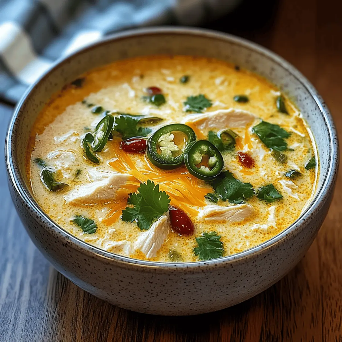 Wenn der erste kühle Wind des Herbstes weht, zieht es mich in die Küche, wo zauberhafte Düfte auf mich warten. So entstand die Idee für meine herzhafte Spicy Jalapeño Popper Chicken Soup, die nicht nur die Seele wärmt, sondern auch garantiert ein Hit bei Familie und Freunden ist. Mit zartem Hähnchen, würzigen Jalapeños und einer cremigen Käsemischung, die sich wunderbar um die Zutaten schmiegt, wird diese Suppe in jedem Löffel zum Erlebnis. Die beste Nachricht? Sie lässt sich ganz nach deinem Geschmack anpassen, damit du die perfekte Schärfe für jeden Anlass findest. Lass uns gemeinsam entdecken, wie du diese köstliche Komfortsuppe zubereiten kannst – bist du bereit für den ersten Löffel? Warum wirst du diese Suppe lieben? Wärme für die Seele: Diese Suppe ist der Inbegriff von gemütlicher Gemütlichkeit, ideal für kalte Tage. Anpassbare Schärfe: Du kannst die Jalapeños je nach Vorliebe variieren – milder oder feuriger! Cremiger Genuss: Die Mischung aus Sahne und Käse sorgt für eine unwiderstehliche, samtige Textur. Schnell in der Zubereitung: In nur wenigen Schritten bist du bereit, diese Köstlichkeit zu genießen. Vielseitig: Ob als Hauptgericht oder als Vorspeise, sie wird deine Gäste begeistern! Kombiniere sie mit Hähnchen Ramen Pfanne oder Butter Chicken Indische, um ein komplettes Menü zu kreieren. Zutaten für die würzige Jalapeño Popper Hühnersuppe Für die Suppe: Olivenöl – dient als Kochbasis zum Sautieren; kannst auch ein neutrales Öl verwenden. Zwiebel (1 mittelgroß, gewürfelt) – sorgt für eine geschmackliche Basis; auch Schalotten oder Lauch sind milder. Knoblauch (3 Zehen, gehackt) – bringt aromatische Fülle; du kannst auch 1 Teelöffel Knoblauchpulver verwenden. Jalapeños (2 große, gewürfelt) – bringt den scharfen Kick; menge nach Vorliebe anpassen oder eingelegte verwenden. Hähnchenbrustfilets (450g) – Hauptquelle für Protein; auch vorgeröstetes Hähnchen spart Zeit, Kichererbsen sind eine vegetarische Option. Hühnerbrühe (960ml) – die flüssige Basis; Gemüsebrühe sorgt für eine vegetarische Version. Sahne (240ml) – verleiht der Suppe Cremigkeit; für eine leichtere Variante halbierte Sahne verwenden. Gemahlener Kreuzkümmel (1 Teelöffel) – fügt warme, erdige Noten hinzu, die für Gemütlichkeit sorgen. Paprika (1 Teelöffel) – intensiviert den Geschmack und die Farbe. Salz und Pfeffer – essentielle Gewürze zur Geschmacksverstärkung. Frischkäse (240g, weich) – trägt zur unwiderstehlichen Cremigkeit bei. Geriebener Cheddar-Käse (100g) – sorgt für zusätzlichen Käsegenuss. Optionale Zusatzstoffe: Zerkleinerter Speck (80g) – bietet Knusprigkeit und Räuchergeschmack. Frischer Koriander – sorgt für einen frischen Farbtupfer als Garnitur. Diese würzige Jalapeño Popper Hühnersuppe ist nicht nur cremig und geschmackvoll, sondern lässt sich auch wunderbar anpassen – ideal für jeden Anlass! Schritt-für-Schritt-Anleitungen für würzige Jalapeño Popper Hühnersuppe Step 1: Öl erhitzen Erhitze in einem großen Topf zwei Esslöffel Olivenöl bei mittlerer Hitze. Füge die gewürfelte Zwiebel hinzu und sauté sie etwa 5 Minuten lang, bis sie weich und durchscheinend ist. Achte darauf, dass sie nicht anbrennt, damit die würzige Jalapeño Popper Hühnersuppe eine tolle Basis erhält. Step 2: Aromen hinzufügen Gib den gehackten Knoblauch und die gewürfelten Jalapeños in den Topf und rühre alles gut um. Lass alles für weitere 2 Minuten kochen, bis die Aromen gut durchzogen sind und sich eine wundervolle Duftnote entfaltet, die das Kochen zur Freude macht. Step 3: Hähnchen garen Füge die Hähnchenbrustfilets sowie die Hühnerbrühe in den Topf hinzu und bringe die Mischung zum Kochen. Reduziere die Hitze und lasse die Suppe für 15 Minuten köcheln, bis das Hähnchen vollständig durchgegart und zart ist. Achte darauf, dass die Brühe leicht blubbert. Step 4: Hähnchen zerkleinern Nimm die Hähnchenbrustfilets aus dem Topf und zerkleinere sie mit zwei Gabeln. Gib die zerkleinerten Stücke wieder in die Suppe. Rühre gut um, damit sich das Hähnchen gleichmäßig verteilt und die würzige Jalapeño Popper Hühnersuppe einen herzhaften Biss erhält. Step 5: Sahne einarbeiten Rühre die Sahne sowie den gemahlenen Kreuzkümmel und das Paprikapulver in die Suppe. Würze mit Salz und Pfeffer nach Geschmack und lass die Suppe sanft erhitzen, damit sie cremig und wärmend wird. Achte darauf, dass sie nicht kocht, um die schöne Konsistenz zu erhalten. Step 6: Käse hinzufügen Mische den weichen Frischkäse unter die Suppe, bis er sich vollständig aufgelöst hat. Anschließend füge den geriebenen Cheddar-Käse hinzu und rühre weiter, bis der Käse geschmolzen und die Suppe wunderbar cremig geworden ist. Dies ist das Geheimnis der würzigen Jalapeño Popper Hühnersuppe. Step 7: Speck (optional) hinzufügen Falls gewünscht, füge den zerbröselten Speck zur Suppe hinzu und lasse alles für weitere 5 Minuten köcheln. Dadurch erhält die Suppe eine zusätzliche knusprige Textur und einen rauchigen Geschmack, der die Geschmacksknospen verzaubert. Step 8: Warm servieren Löffle die würzige Jalapeño Popper Hühnersuppe in Schalen und garniere sie mit frischem Koriander für einen frischen Farbklecks. Serviere sie warm und genieße die köstliche Symphonie von Aromen, die an kalten Tagen ein wahres Komfortessen bieten! Vorbereitung im Voraus für die würzige Jalapeño Popper Hühnersuppe Die würzige Jalapeño Popper Hühnersuppe ist perfekt für die Wochenplanung! Du kannst die Basis der Suppe – das sautierte Gemüse und das gegarte Hähnchen – bis zu 24 Stunden im Voraus vorbereiten und im Kühlschrank aufbewahren. Achte darauf, die Suppe nach dem Kochen abzukühlen, bevor du sie in einem luftdichten Behälter lagerst, um die Frische zu bewahren. Wenn du bereit bist, die Suppe zu genießen, erhitze sie sanft und füge die Sahne sowie die Käse hinzu, um sie sofort cremig zu machen. F
