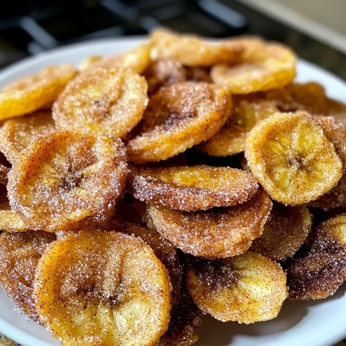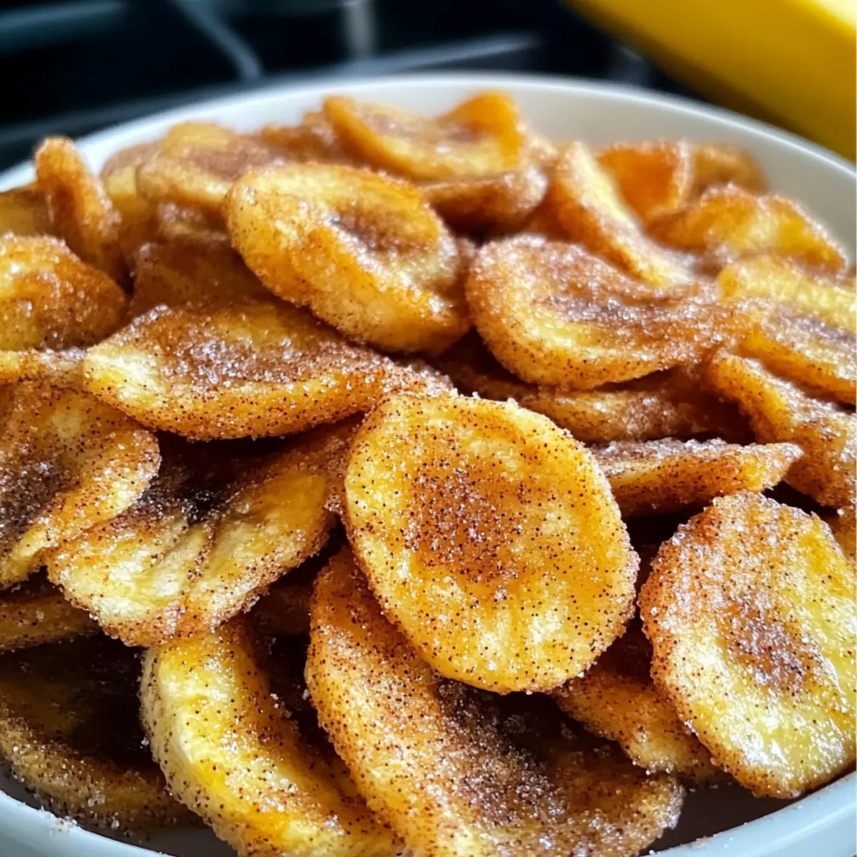 Hast du je den verführerischen Duft von frisch gebackenem Gebäck wahrgenommen und dich gefragt, wie du diesem Genuss auf einfachste Weise nachkommen kannst? Heute lade ich dich ein, die Welt der Zimt-Zucker Luftfritteuse Bananenchips zu entdecken. Dieser gesunde Snack ist nicht nur ein wahrer Genuss für die Sinne, sondern bietet auch eine großartige Möglichkeit, die Vorzüge einer luftgebratenen Zubereitung zu nutzen. Mit nur wenigen Zutaten kannst du knusprige, goldene Chips zaubern, die perfekt für zwischendurch geeignet sind – ganz ohne schlechtes Gewissen! Die Kombination aus der natürlichen Süße der Bananen und dem warmen Aroma von Zimt wird dich begeistern und dir helfen, eine schmackhafte Alternative zu herkömmlichen Snacks zu finden. Bist du bereit, deine Snackzeit auf ein neues Level zu heben? Warum wirst du diese Bananenchips lieben? Einfachheit: Die Zubereitung der Zimt-Zucker Luftfritteuse Bananenchips ist kinderleicht und benötigt nur wenige Zutaten. Gesunde Alternative: Mit ihrem natürlichen Zuckergehalt sind sie eine köstliche und gesunde Snackwahl! Vielseitigkeit: Experimentiere mit verschiedenen Gewürzen oder mache eine zuckerfreie Version, um ganz nach deinem Geschmack zu genießen. Schnelle Zubereitung: In weniger als 15 Minuten hast du einen crunchigen Snack! Klassischer Genuss: Diese Chips sind das perfekte gesund Snack für alle, die sich nach einer schmackhaften Alternative zu herkömmlichen Snacks sehnen. Genieße sie pur oder als Topping für Joghurt, und entdecke, wie vielseitig dieser Snack sein kann. Sie sind ein Hit für die ganze Familie und eine hervorragende Möglichkeit, Reste von Bananen zu verwerten! Zimt-Zucker Luftfritteuse Bananenchips Zutaten • Diese knusprigen Bananenchips sind nicht nur lecker, sondern auch einfach zuzubereiten. Für die Chips Bananen – Sorgfältig ausgewählte, feste Bananen sorgen für die beste Textur und natürlichen Geschmack. Zimt – Dieses aromatische Gewürz verleiht den Chips eine warmen Süße und verstärkt den Geschmack. Kokos- oder Brauner Zucker – Für eine süße, karamellisierte Note beim Luftfrittieren; alternativ kannst du auch einen kalorienfreien Süßstoff wählen. Optional Meersalz – Ein Hauch Salz verstärkt den süßen Geschmack und macht die Chips noch schmackhafter. Zitronensaft – Hilft, die Farbe der Bananen zu bewahren und verhindert ein Braunwerden. Mit diesen einfachen Zutaten hast du alle Elemente, um die besten Zimt-Zucker Luftfritteuse Bananenchips zuzubereiten! Schritt-für-Schritt-Anleitung für Zimt-Zucker Luftfritteuse Bananenchips Step 1: Bananen schneiden Die Bananen schälen und in gleichmäßige Scheiben von etwa 0,5 cm Dicke schneiden. Achte darauf, dass die Scheiben gleichmäßig sind, damit sie gleichmäßig garen. Lege die geschnittenen Bananen auf einen Teller, während du die restlichen Vorbereitungen triffst. Step 2: Luftfritteuse vorheizen Heize die Luftfritteuse auf 165°C (330°F) vor und sprühe das Frittierkorb mit etwas Kochspray ein oder lege es mit Backpapier aus, um ein Ankleben der Bananenscheiben zu verhindern. Die richtige Temperatur sorgt dafür, dass die Zimt-Zucker Luftfritteuse Bananenchips knusprig werden. Step 3: Zimt und Zucker mischen In einer kleinen Schüssel den Kokos- oder braunen Zucker mit Zimt vermengen. Diese Mischung verleiht den Bananenchips den köstlichen Zimt-Zucker-Geschmack. Rühre gut um, damit sich die Zutaten gleichmäßig vermischen, und stelle sie beiseite. Step 4: Bananenscheiben beschichten Nehme die Bananenscheiben und gib sie in die Schüssel mit der Zimt-Zucker-Mischung. Sanft umrühren, bis die Bananenscheiben gleichmäßig mit der Mischung überzogen sind. Dies verleiht den Zimt-Zucker Luftfritteuse Bananenchips ihre süße, aromatische Kruste. Step 5: In Portionen frittieren Platziere die überzogenen Bananenscheiben in einer einzigen Schicht im Frittierkorb der Luftfritteuse. Achte darauf, dass sie nicht überlappen, um eine gleichmäßige Luftzirkulation zu gewährleisten. Frittiere die Bananenscheiben für 10 bis 14 Minuten, bis sie goldbraun und knusprig sind, und wende sie in der Mitte der Garzeit. Step 6: Knusprigkeit überprüfen Nach 10 Minuten nachsehen, ob die Ränder der Bananenchips goldbraun sind. Je nach Dicke der Bananenscheiben und Modell der Luftfritteuse kann die Garzeit variieren, also pass gut auf, um ein Verbrennen zu vermeiden. Step 7: Abkühlen lassen und knusprig machen Die fertigen Bananenchips aus der Luftfritteuse nehmen und auf einem Kuchengitter abkühlen lassen. Lass sie für 5 bis 10 Minuten stehen, damit sie vollständig abkühlen und dabei ihre knusprige Textur entfalten können. Jetzt sind deine Zimt-Zucker Luftfritteuse Bananenchips bereit zum Genießen! Meal Prep für Zimt-Zucker Luftfritteuse Bananenchips Diese Zimt-Zucker Luftfritteuse Bananenchips sind ideal für die Vorbereitung im Voraus! Du kannst die Bananen bis zu 24 Stunden vor dem Frittieren schneiden und in einer luftdichten Box im Kühlschrank aufbewahren, um ein Braunwerden zu verhindern (ein Spritzer Zitronensaft hilft zudem). Auch die Zimt-Zucker-Mischung kannst du schon im Voraus zubereiten und bis zu 3 Tage in einem verschließbaren Behälter aufbewahren. Wenn du bereit bist, die Chips zu genießen, einfach die vorbereiteten Bananenscheiben in der Zimt-Zucker-Mischung wenden und in der luftfritteuse goldbraun frittieren. So hast du jederzeit einen gesunden Snack bereit, ohne viel Aufwand – perfekt für beschäftigte Abende! Was passt gut zu Zimt-Zucker Luftfritteuse Bananenchips? Genieße diese knusprigen Snacks als Teil eines köstlichen und gesundheitsbewussten Essens. Sie bringen Farbe und Geschmack auf deinen Tisch! Joghurt mit frischen Beeren: Die cremige Textur des Joghurts harmoniert perfekt mit dem knusprigen Bananenchip und sorgt für einen erfrischenden Snack. Chia-Pudding: Das nussige Aroma des Puddings ergänzt die süßen Chips, während die Texturen miteinander kontrastieren. Nüsse und getro