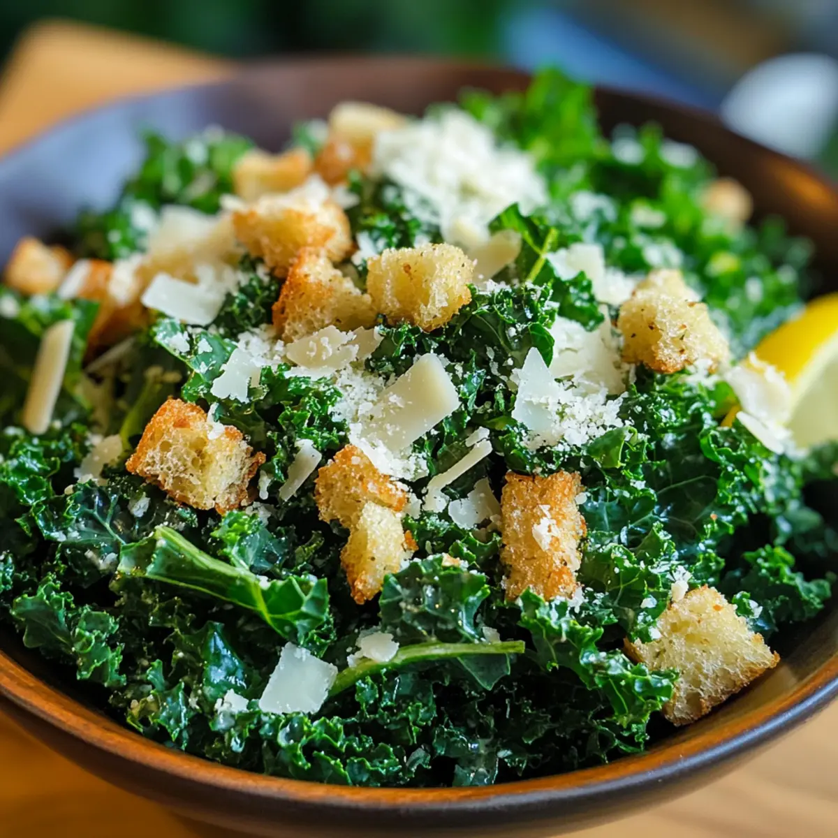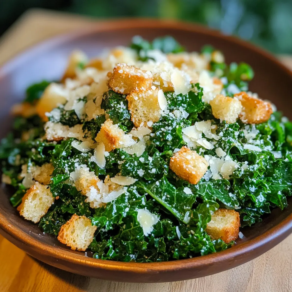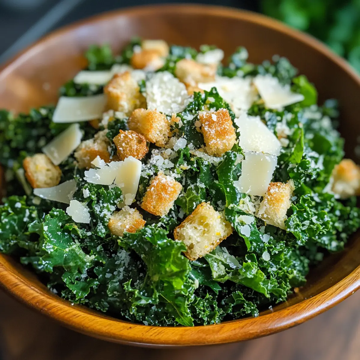 „Hast du jemals überlegt, wie einfach es sein kann, etwas Frisches und Gesundes auf den Tisch zu bringen? Für mich ist der Zitronen-Parmesan-Grünkohlsalat der perfekte Weg, um genau das zu tun. In weniger als 15 Minuten zauberst du ein Gericht, das nicht nur geschmacklich begeistert, sondern auch voller Nährstoffe steckt. Mit der spritzigen Frische der Zitrone und dem aromatischen Knoblauch kombiniert dieser Salat zarten, massierten Grünkohl, der mit dem cremigen Parmesan und knusprigen Croutons gekrönt wird. Er ist nicht nur ein wahrer Hingucker, sondern auch ein absolutes Highlight für deine nächste Mahlzeit – egal ob als Beilage oder als leichter Hauptgang. Wer könnte da widerstehen? Bist du bereit, die Zubereitung auszuprobieren?“ Warum wirst du diesen Salat lieben? Frische, gesunde Zutaten: Mit nur wenigen natürlichen Zutaten bringst du ein gesundes und köstliches Gericht auf den Tisch. Einfachheit: In weniger als 15 Minuten hast du einen schmackhaften Salat zubereitet, der auch Anfänger nicht überfordert. Vielseitigkeit: Perfekt als Beilage zu gegrilltem Fleisch oder einfach zu genießen, wann immer du Lust auf etwas Frisches hast. Nährstoffe pur: Vollgepackt mit Vitaminen A und C, ist dieser Salat eine hervorragende Wahl für deine Gesundheit. Für noch mehr Abwechslung kannst du ihn mit gerösteten Pinienkernen oder buntem Gemüse wie Paprika oder Cherrytomaten aufpeppen! Entdecke auch unsere anderen Rezepte wie Hähnchen Enchiladas Mit oder Buffalo Hähnchen Mit Ranch Dressing für Ideen, wie du dein Essen aufregend gestalten kannst. Zutaten für den Zitronen-Parmesan-Grünkohlsalat • Erlebe die Frische mit diesen gesunden Zutaten! Für den Salat Curly Kale – Bietet eine nahrhafte Basis und eine robuste Textur; kann durch Spinat oder Rucola ersetzt werden. Frischer Zitronensaft – Verleiht Helligkeit und Säure, die für den Geschmack essenziell sind; frisch ist am besten für maximalen Kick. Extra Natives Olivenöl – Reicht den Salat an und balanciert die Zitronensäure; wähle hochwertiges Öl für den besten Geschmack. Frischer, gehackter Knoblauch – Fügt aromatische Tiefe hinzu; bei Bedarf kann Knoblauchpulver als Ersatz verwendet werden. Salz – Verbessert den Gesamtgeschmack des Salats; nach Geschmack anpassen. Schwarzer Pfeffer – Sorgt für Wärme und Komplexität; nach Geschmack anpassen oder rote Pfefferflocken für mehr Schärfe verwenden. Croutons – Sorgen für einen angenehmen Crunch; am besten selbstgemacht; kaufe sie, wenn du in Eile bist. Frisch geriebener Parmesan – Fügt einen herzhaften Reichtum hinzu; kann durch zerbröckelten Feta oder Nährhefe für eine vegane Option ersetzt werden. Schritt-für-Schritt-Anleitung für den Zitronen-Parmesan-Grünkohlsalat Step 1: Grünkohl vorbereiten Wasche den Curly Kale gründlich unter kaltem Wasser, um Schmutz und Rückstände zu entfernen. Danach trockne die Blätter vorsichtig, indem du sie in ein Küchentuch wickelst. Entferne die Blätter von den dicken Stielen und schneide sie in feine Stücke. So erhältst du eine nahrhafte und zarte Basis für deinen Zitronen-Parmesan-Grünkohlsalat. Step 2: Dressing zubereiten In einer kleinen Schüssel vermischst du frisch gepressten Zitronensaft, hochwertiges, extra natives Olivenöl, gehackten Knoblauch, Salz und schwarzen Pfeffer. Verwende einen kleinen Schneebesen oder eine Gabel, um die Zutaten gut zu vermengen, bis sich eine homogene Mischung bildet. Das Dressing sorgt für Frische und Geschmacksintensität in deinem Salat. Step 3: Grünkohl massieren Gib etwa einen halben Teelöffel des Dressings auf die vorbereiteten Grünkohlblätter. Mit sauberen Händen massiere die Blätter gründlich für etwa 2 bis 3 Minuten. Du wirst sehen, wie der Grünkohl dunkler wird und an Volumen verliert – das ist ein Zeichen dafür, dass die Blätter zarter und geschmackvoller werden. Step 4: Zutaten kombinieren Füge den massierten Grünkohl in eine große Schüssel und gieße das restliche Dressing darüber. Mische alles gut durch, sodass sich das Dressing gleichmäßig verteilt. Während du das machst, siehst du, wie der Zitronen-Parmesan-Grünkohlsalat lebendig wird – die Farben und Aromen verschmelzen in einer köstlichen Mischung. Step 5: Servieren und genießen Zerkleinere die Croutons nach Belieben und streue sie kurz vor dem Servieren über den Salat. Dieser letzte Schritt sorgt für einen herrlich knusprigen Biss. Serviere den Zitronen-Parmesan-Grünkohlsalat sofort, um die Frische und den Crunch der Croutons zu genießen. Guten Appetit! Expertentipps für den Zitronen-Parmesan-Grünkohlsalat Grünkohl massieren: Achte darauf, den Grünkohl mindestens 2-3 Minuten zu massieren. So werden die Blätter zarter und geschmackvoller, was den Zitronen-Parmesan-Grünkohlsalat perfektioniert. Frischer Zitronensaft: Verwende immer frischen Zitronensaft für den besten Geschmack. Aus Konzentrat oder Flasche kann der Salat an Frische verlieren. Croutons vorbereiten: Bereite die Croutons kurz vor dem Servieren vor, um ihre Knusprigkeit zu bewahren. Das verhindert, dass sie in der Dressing-Feuchtigkeit aufweichen. Käse frisch reiben: Frisch geriebener Parmesan sorgt für ein intensiveres Aroma. Vorgeriebener Käse kann oft Trockenstoffe enthalten, die den Geschmack beeinträchtigen. Varianten ausprobieren: Experimentiere mit verschiedenen Nüssen oder Gemüse für eine interessante Note. So wird der Zitronen-Parmesan-Grünkohlsalat noch abwechslungsreicher! Was passt zum Zitronen-Parmesan-Grünkohlsalat? Lass uns eine unwiderstehliche Mahlzeit kreieren, die das Geschmackserlebnis dieses frischen, gesunden Salats ergänzt! Gegrilltes Hähnchen: Zartes, saftiges Hähnchen passt perfekt zur Frische des Salats und macht ihn zur sättigenden Hauptspeise. Quinoa: Dieser proteinreiche, leicht nussige Zusatz harmoniert toll mit dem Grünkohl und verleiht der Mahlzeit mehr Substanz. Geröstete Kichererbsen: Knusprige Kichererbsen bringen zusätzlichen Crunch un