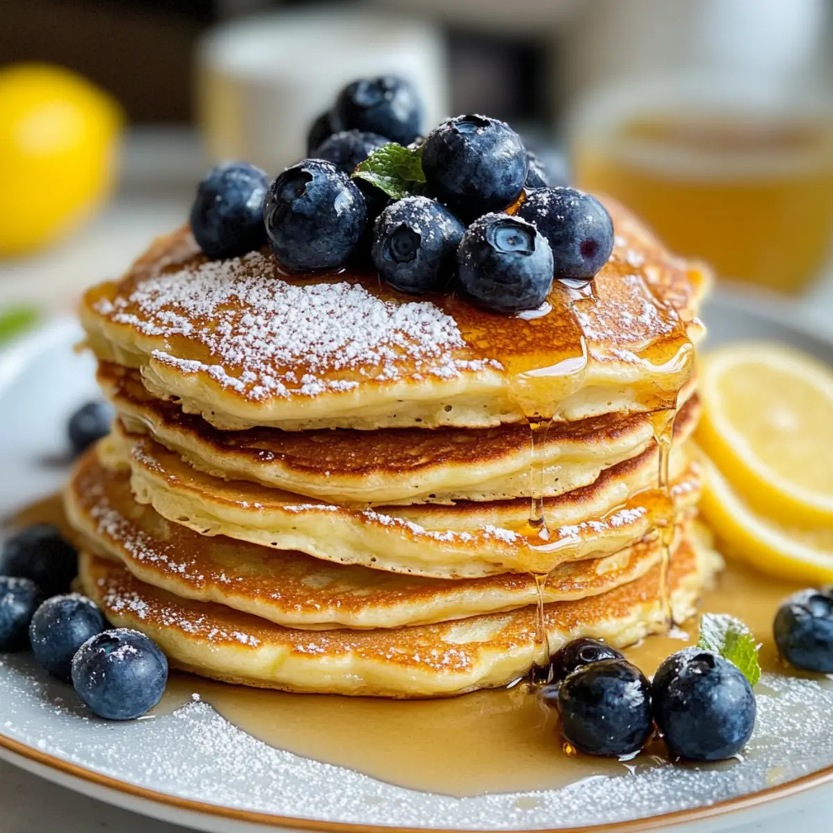 Es war ein sonniger Sonntagmorgen, als mich der unwiderstehliche Duft von frisch gebackenen Pfannkuchen in die Küche lockte. Heute teile ich mit euch mein Rezept für Zitronen-Ricotta-Pfannkuchen – eine köstliche Kombination aus zartem Ricotta und spritziger Zitrone, die perfekt für ein fröhliches Brunch-Erlebnis ist. Diese pfiffigen Pfannkuchen sind nicht nur schnell zubereitet, sondern auch ein wahrer Publikumsmagnet, der selbst die anspruchsvollsten Gaumen begeistert. Mit ihrer fluffigen Textur und dem erfrischenden Zitronenaroma sind sie der ideale Start in den Tag oder eine gelungene Überraschung für eure Gäste. Seid ihr bereit, euren Sonntag mit diesen himmlischen Pfannkuchen zu verzaubern? Lasst uns gemeinsam in die Zubereitung eintauchen! Warum sind diese Pfannkuchen so besonders? Leichtigkeit: Diese Zitronen-Ricotta-Pfannkuchen sind im Handumdrehen zubereitet und benötigen keinerlei spezielle Fähigkeiten, perfekt für jeden Kochliebhaber. Frischer Geschmack: Der spritzige Zitronengeschmack in Kombination mit dem cremigen Ricotta macht jeden Bissen zu einem Genusserlebnis. Vielseitigkeit: Ob mit frischen Früchten oder einem Hauch von Honig serviert – diese Pfannkuchen passen zu jedem Brunch-Thema. Publikumsfavorit: Egal, ob Familie oder Freunde, diese Pfannkuchen ziehen alle Blicke auf sich, ideal für gesellige Zusammenkünfte! Probiert auch unser schmackhaftes Kirschoertchen Riegel Rezept oder die Zimtige Snickerdoodle Riegel für eine süße Ergänzung! Zutaten für Zitronen-Ricotta-Pfannkuchen • Für den Teig: Ricotta – sorgt für Cremigkeit und Feuchtigkeit; kann durch Hüttenkäse für eine fettärmere Version ersetzt werden. Zitronenschale – verleiht einen hellen, zitrusfrischen Geschmack; frische Schale ist vorzuziehen, da abgepackter Zitronensaft nicht das gleiche Aroma bietet. Allzweckmehl – bildet die Basis der Pfannkuchen; kann durch eine glutenfreie Mehlmischung für eine glutenfreie Option ersetzt werden. Zucker – süßt den Teig; für eine gesündere Alternative kann Honig oder Agavendicksaft verwendet werden. Backpulver – sorgt für die Leichtigkeit; darauf achten, dass es frisch ist, damit die Pfannkuchen gut aufgehen. Eier – binden die Zutaten und sorgen für Reichhaltigkeit; können durch Leinsamen-Eier für eine vegane Variante ersetzt werden. Milch – sorgt für Feuchtigkeit im Teig; Mandel- oder Hafermilch sind gute Alternativen für eine milchfreie Option. Salz – hebt den Gesamtgeschmack; Meersalz ist aufgrund des Mineraliengehalts vorzuziehen. Genießt die Zubereitung dieser wohlschmeckenden Zitronen-Ricotta-Pfannkuchen! Schritt-für-Schritt-Anleitungen für Zitronen-Ricotta-Pfannkuchen Step 1: Ricotta und Eier vermengen In einer großen Schüssel Ricotta, Zitronenschale, Zucker und Eier gut vermengen, bis die Mischung schön glatt ist. Achte darauf, die Zutaten gründlich zu kombinieren, damit der cremige Ricotta gleichmäßig verteilt ist. Dies wird etwa 2-3 Minuten dauern. Step 2: Trockene Zutaten mischen In einer separaten Schüssel das Allzweckmehl, Backpulver und Salz vermischen. Gut umrühren, sodass sich die trockenen Zutaten gleichmäßig miteinander verbinden. Dies ist wichtig, um eine gleichmäßige Textur der Zitronen-Ricotta-Pfannkuchen zu gewährleisten. Step 3: Trockene Zutaten unterheben Sobald die trockenen Zutaten gut vermischt sind, diese nach und nach in die Ricottamischung falten. Arbeite vorsichtig, um die Luftigkeit der Pfannkuchen zu erhalten. Die Mischung sollte klumpig bleiben, um eine perfekte Textur zu erreichen. Dies sollte nur 1-2 Minuten in Anspruch nehmen. Step 4: Milch einrühren Langsam die Milch in den Teig einrühren, bis alles gerade so kombiniert ist. Sei vorsichtig, nicht zu viel zu rühren, da ein übermixter Teig die Pfannkuchen schwer macht. Der Teig sollte leicht und etwas klumpig sein. Dies dauert etwa 1 Minute. Step 5: Pfanne vorheizen Eine beschichtete Pfanne bei mittlerer Hitze vorheizen. Füge ein wenig Butter oder Öl hinzu, um ein Ankleben der Pfannkuchen zu verhindern. Achte darauf, dass die Pfanne heiß genug ist, damit die ersten Pfannkuchen gleichmäßig garen. Step 6: Pfannkuchen backen Gib etwa 1/4 Tasse des Teigs in die vorgeheizte Pfanne. Backe die Pfannkuchen 2-3 Minuten lang, bis sich Blasen an der Oberfläche bilden. Überprüfe die Unterseite; sie sollte goldbraun sein. Drehe die Pfannkuchen vorsichtig um und backe die andere Seite für weitere 2-3 Minuten. Step 7: Servieren Die Zitronen-Ricotta-Pfannkuchen warm servieren und nach Belieben mit Sirup, frischen Früchten oder Puderzucker garnieren. Diese Pfannkuchen sind perfekt für dein Brunch und werden deine Familie und Freunde begeistern! Aufbewahrung von Zitronen-Ricotta-Pfannkuchen Raumtemperatur: Lagere Pfannkuchen bei Raumtemperatur nicht länger als 1-2 Stunden, um ihre Frische zu bewahren. Kühlschrank: Bewahre übrig gebliebene Zitronen-Ricotta-Pfannkuchen in einem luftdichten Behälter im Kühlschrank für bis zu 3 Tage auf. Gefrierer: Friere die Pfannkuchen in einer Einzelpackung mit Backpapier dazwischen für bis zu 2 Monate ein, um ein Zusammenkleben zu verhindern. Wiedererwärmen: Erhitze die Pfannkuchen am besten im Toaster oder in einer Pfanne für ein paar Minuten, um sie wieder warm und fluffig zu machen. Tipps für die Vorbereitung der Zitronen-Ricotta-Pfannkuchen Diese Zitronen-Ricotta-Pfannkuchen eignen sich hervorragend für die Vorbereitung im Voraus! Du kannst die trockenen Zutaten (Mehl, Backpulver, Salz) bis zu 3 Tage im Voraus mischen und in einem luftdichten Behälter aufbewahren, um wertvolle Zeit zu sparen. Der Ricotta kann ebenfalls bereits vorab zubereitet werden; verpacke ihn in einem separaten Behälter und halte ihn im Kühlschrank, wobei du darauf achtest, ihn gut abzudecken, damit er frisch bleibt. Wenn du bereit bist, die Pfannkuchen zu genießen, musst du lediglich die feuchten Zutaten (Eier, Zucker, Milch, Zitronenschale) mit dem Ricotta verrühren und die trockenen Zutaten 