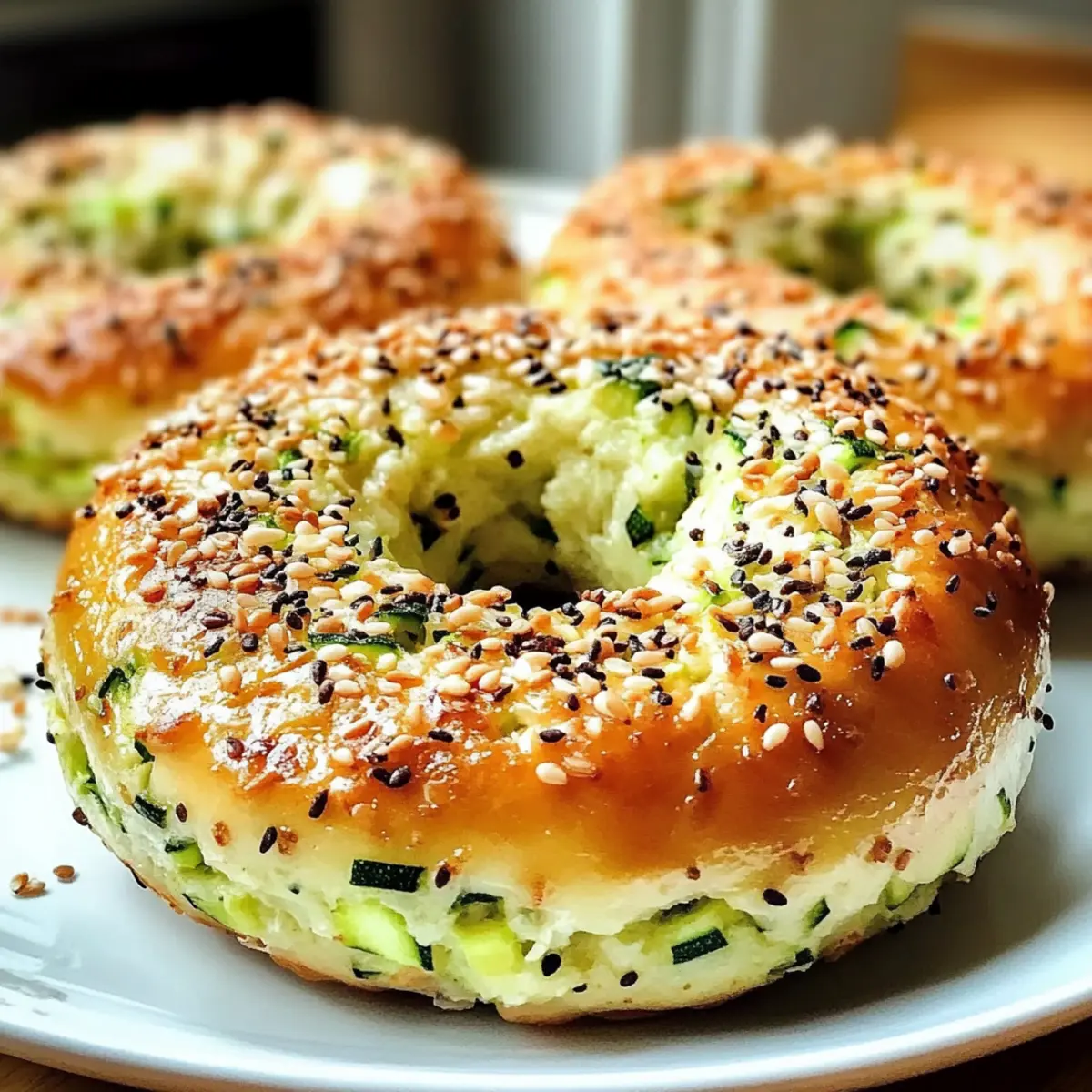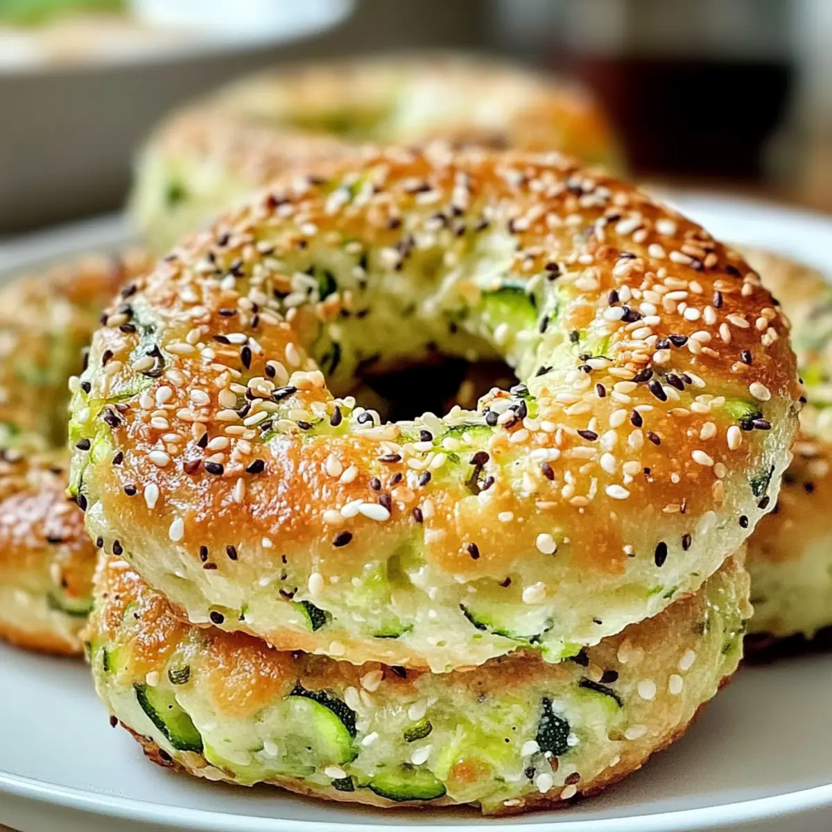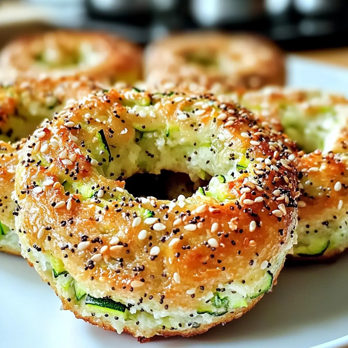 Es gibt Momente in der Küche, die einfach magisch sind und uns an die Kreativität des Kochens erinnern. Einer dieser Augenblicke entsteht, wenn ich beschließe, traditionellen Genuss auf eine gesunde Weise neu zu interpretieren—insbesondere mit meinen glutenfreien Zucchini Bagels. Diese Bagels sind nicht nur ein geschmacklicher Erfolg, sondern auch eine fantastische Möglichkeit, mehr Gemüse in unseren Alltag zu integrieren, während sie gleichzeitig die Anforderungen an eine kohlenhydratarme Ernährung erfüllen. In nur wenigen Schritten lassen sich diese leckeren Bagels zubereiten, perfekt für ein schnelles Frühstück oder einen gesunden Snack zwischendurch. Wer kann da schon widerstehen? Bist du bereit, die Zucchini Bagels auszuprobieren und deine Familie und Freunde mit dieser köstlichen Überraschung zu erfreuen? Warum sind Zucchini Bagels so besonders? Gesund und köstlich: Diese Zucchini Bagels vereinen die Vorteile einer glutenfreien und kohlenhydratarmen Ernährung mit einem unvergleichlichen Geschmack. Einfach zuzubereiten: Die Zubereitung ist unkompliziert und benötigt nur wenige Zutaten. Vielseitig einsetzbar: Ob zum Frühstück, als Snack oder als Beilage – sie passen zu jeder Gelegenheit. Gemüseverstecker: Perfekt, um deinen Gemüseanteil spielerisch zu erhöhen. Familienfreundlich: Deine Liebsten werden diese gesunden Leckereien lieben und sich nach mehr sehnen. Probier auch meine anderen Rezepte für veganes Frühstücksgebäck, um weitere tolle Ideen zu entdecken! Zucchini Bagels Zutaten Für den Teig • Zucchini, gerieben – Sorgt für Feuchtigkeit und Nährstoffe, verwende frische Zucchini für den besten Geschmack; du benötigst etwa 1 mittlere Zucchini. • Mandelmehl – Dient als glutenfreier und kohlenhydratarmer Grundstoff; kann durch Kokosmehl oder eine glutenfreie Mischung ersetzt werden (beachte die Texturunterschiede). • Eier – Sorgt für Bindung und Struktur; für eine vegane Variante, ersetze jedes Ei durch 1 Leinsamen-Ei (1 Esslöffel gemahlene Leinsamen + 2,5 Esslöffel Wasser). • Backpulver – Fügt das Treibmittel hinzu, damit die Bagels aufgehen. • Knoblauchpulver – Verleiht einen Hauch von Knoblauchgeschmack. • Zwiebelpulver – Fügt der Geschmacksvielfalt Tiefe hinzu. • Salz – Sorgt für einen ausgewogenen Geschmack. • Pfeffer – Bietet eine subtile Schärfe. Für die Optionale Zutaten • Geriebener Käse – Verleiht Geschmack und Reichhaltigkeit; verwende Mozzarella oder Cheddar. Kann für eine milchfreie Version weggelassen werden. • Sesam- oder Mohnsamen – Bieten ein knuspriges Topping und verbessern die visuelle Anziehungskraft. Diese Zucchini Bagels sind nicht nur gesund und lecker, sondern auch eine wunderbare Möglichkeit, Gemüse in deinen Speiseplan zu integrieren! Schritt-für-Schritt-Anleitung für Zucchini Bagels Step 1: Ofen vorheizen Heize deinen Ofen auf 190°C vor und lege ein Backblech mit Backpapier aus. Dies sorgt dafür, dass die Zucchini Bagels gleichmäßig garen und nicht ankleben. Eine gute Vorbereitung ist der Schlüssel für perfekte Ergebnisse, also lass den Ofen ausreichend Zeit, um die gewünschte Temperatur zu erreichen. Step 2: Zucchini vorbereiten Raspel die Zucchini mit einer Reibe und press das überschüssige Wasser in einem Küchentuch oder durch ein Sieb aus. Diese Maßnahme verhindert, dass der Teig zu feucht wird und die Bagels ihre Form verlieren. Verwende frische Zucchini, um den besten Geschmack und die optimale Konsistenz zu erzielen. Step 3: Zutaten mischen Gib die geriebene Zucchini in eine große Schüssel und füge das Mandelmehl, die Eier, das Backpulver, Knoblauchpulver, Zwiebelpulver, Salz und Pfeffer hinzu. Vermenge alles gut, bis ein homogener Teig entsteht. Achte darauf, alle Zutaten gleichmäßig zu verteilen, damit die Zucchini Bagels besonders lecker werden. Step 4: Bagels formen Teile den Teig in 4-6 gleich große Portionen. Rolle jede Portion zu einer Kugel, forme in der Mitte ein Loch und drücke sie leicht flach. Diese Form sorgt dafür, dass die Zucchini Bagels gleichmäßig backen und die typische Bagelform erhalten. Achte darauf, dass die Löcher nicht zu klein sind, damit sie beim Backen nicht verschwinden. Step 5: Toppings hinzufügen Wenn gewünscht, kannst du jetzt geriebenen Käse oder Sesam- bzw. Mohnsamen auf die Bagels streuen. Diese optionalen Toppings verleihen den Zucchini Bagels zusätzlichen Geschmack und eine ansprechende Optik. Stelle sicher, dass jedes Bagel gleichmäßig bedeckt ist. Step 6: Backen Lege die geformten Zucchini Bagels auf das vorbereitete Backblech und backe sie 25-30 Minuten lang im vorgeheizten Ofen. Achte darauf, dass sie goldbraun und fest sind. Ein gut gebackener Bagel hat eine schöne, knusprige Oberfläche und ein goldenes Aussehen, was auf ein gelungenes Ergebnis hindeutet. Step 7: Abkühlen lassen Nimm die Bagels nach dem Backen aus dem Ofen und lasse sie kurz auf einem Drahtgitter abkühlen. Dies verhindert, dass sie zu feucht werden, und sorgt für die perfekte Konsistenz. Warte einige Minuten, bevor du mit dem Servieren beginnst, damit sie nicht zu heiß sind. Step 8: Servieren Genieße die Zucchini Bagels warm, oder bewahre sie in einem luftdichten Behälter auf. Du kannst sie pur essen oder mit deinem Lieblingsaufstrich wie Frischkäse oder Avocado servieren. Diese gesunden Bagels sind perfekt für ein schnelles Frühstück oder einen nährstoffreichen Snack. Was passt zu Zucchini Bagels? Genieße die zarten und geschmackvollen Zucchini Bagels in Kombination mit köstlichen Beilagen, die deine Mahlzeit perfekt abrunden. Klassischer Frischkäse: Cremig und frisch, ergänzt er die Aromen der Bagels wunderbar. Ein Hauch von frischen Kräutern kann das Ganze noch verfeinern. Avocado-Dip: Die cremige Textur der Avocado harmoniert hervorragend mit der Struktur der Bagels. Überrasche deine Gäste mit einer Prise Limettensaft für zusätzlichen Geschmack! Geräucherter Lachs: Salzig und herzhaft, er bringt ein